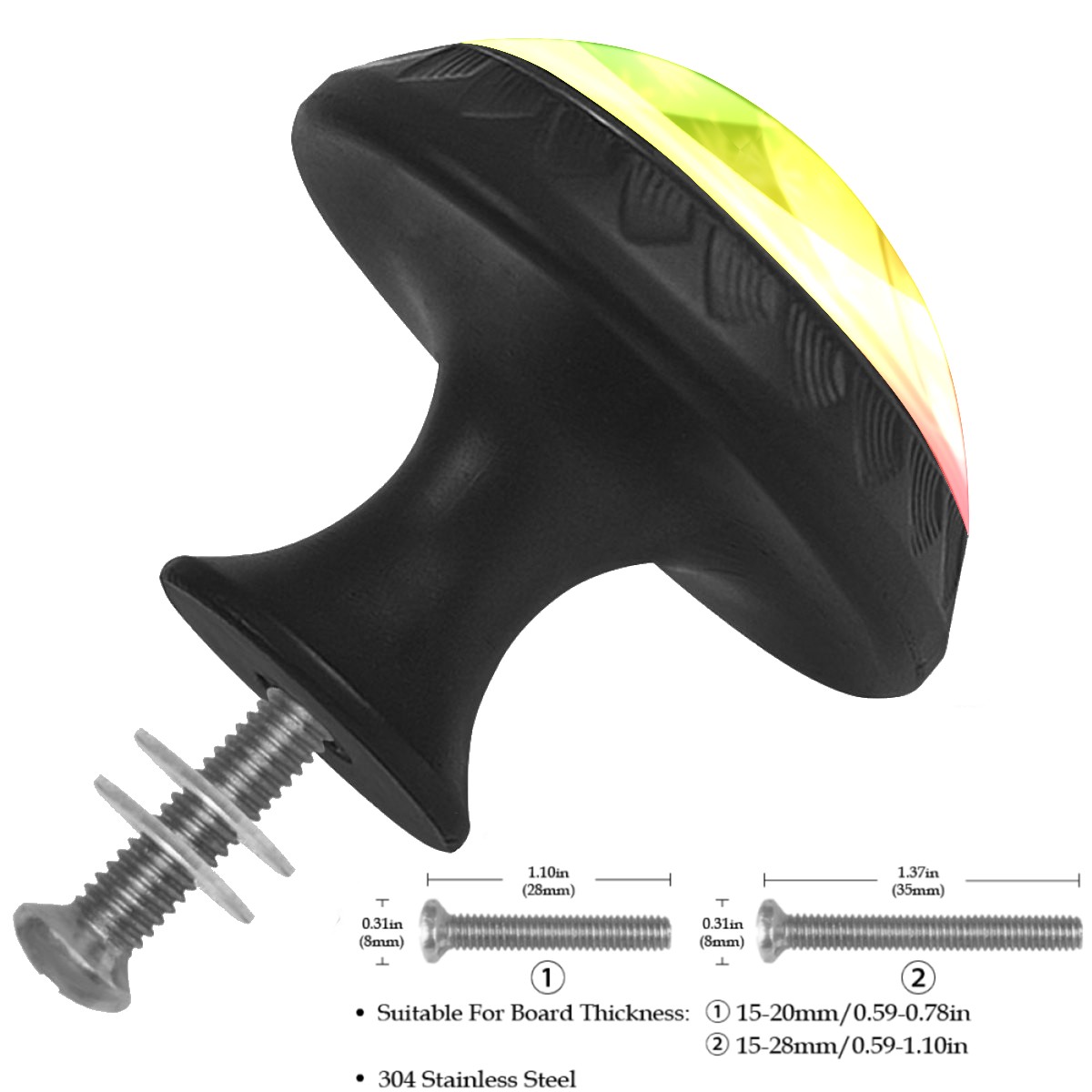 • <p><b>Product Specification</b></p><p>Crystal Diameter: 30mm(1.18 inch)</p><p>Knob Height: 28mm(1.10 inch)</p><p>Base Diameter: 17mm(0.66 inch)</p><p>&nbsp;</p><p><b>Package Includes</b></p><p>4 Piece Drawer Pull Knob</p><p>4 Piece Screw</p><p>&nbsp;</p><p><b>Installation Steps</b></p><p>Find the position where you want to install on the board and drill a hole.Then pass through the screw from the back of board anf thread tight to the knob.</p>