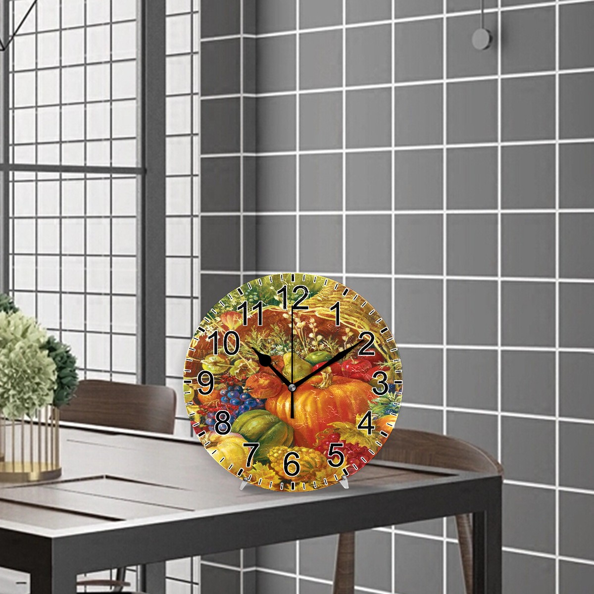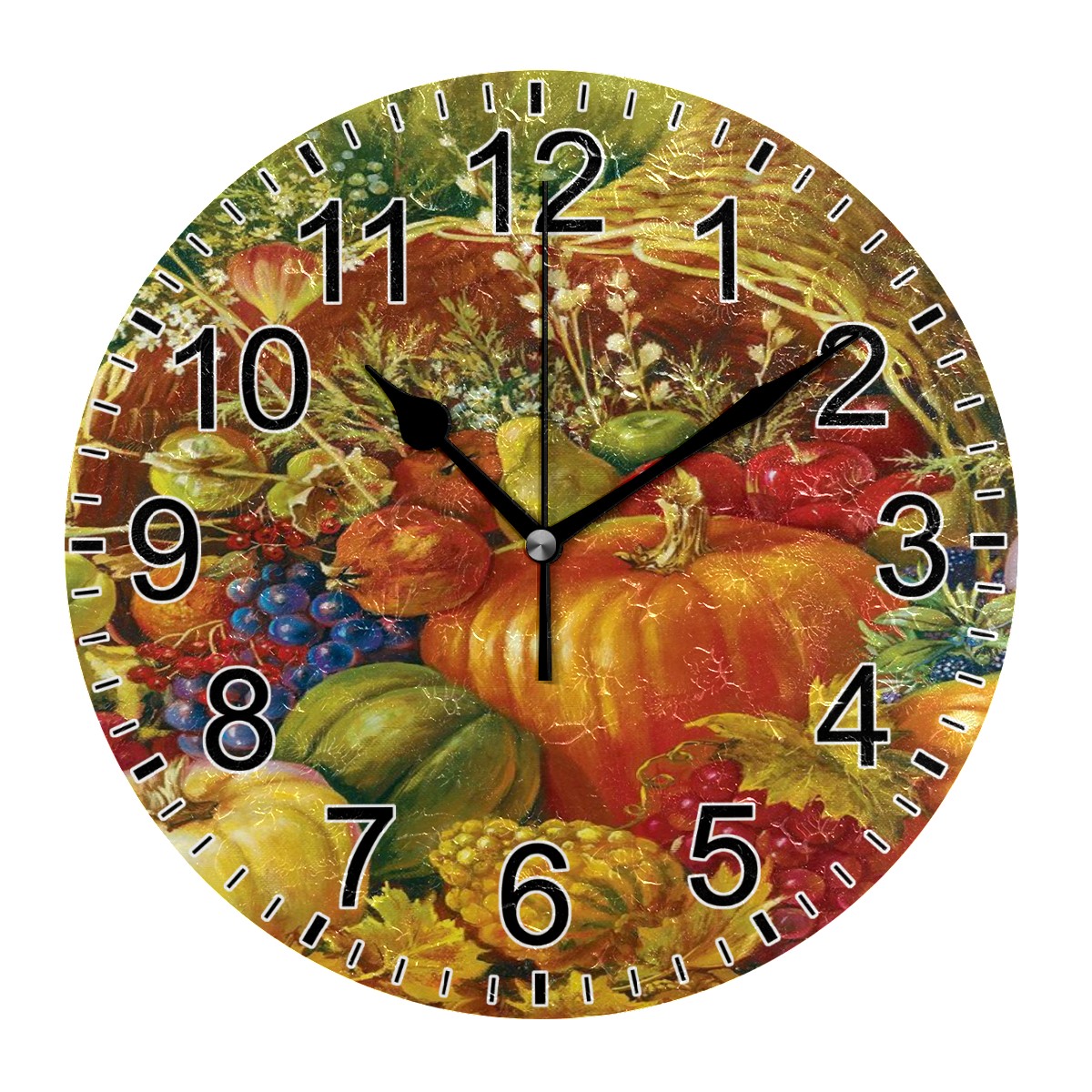 Wall Clock Home Decorative Oil Painting Pumpkin Grapes Harvest Silent Non Ticking Acrylic 10 Inch Office School Round Clock Art