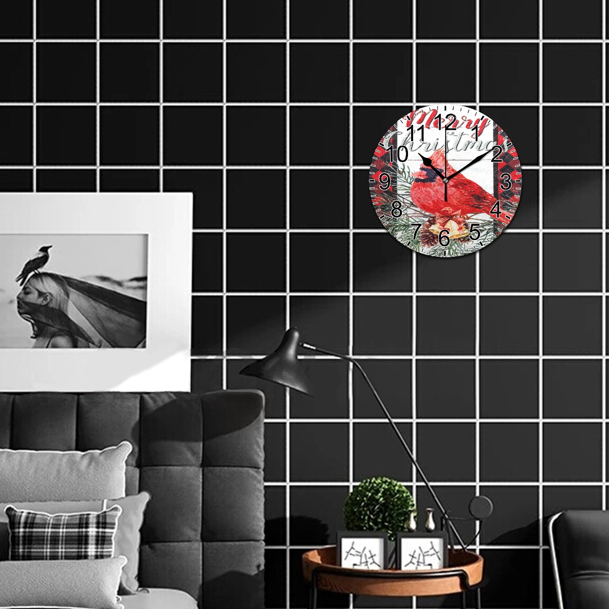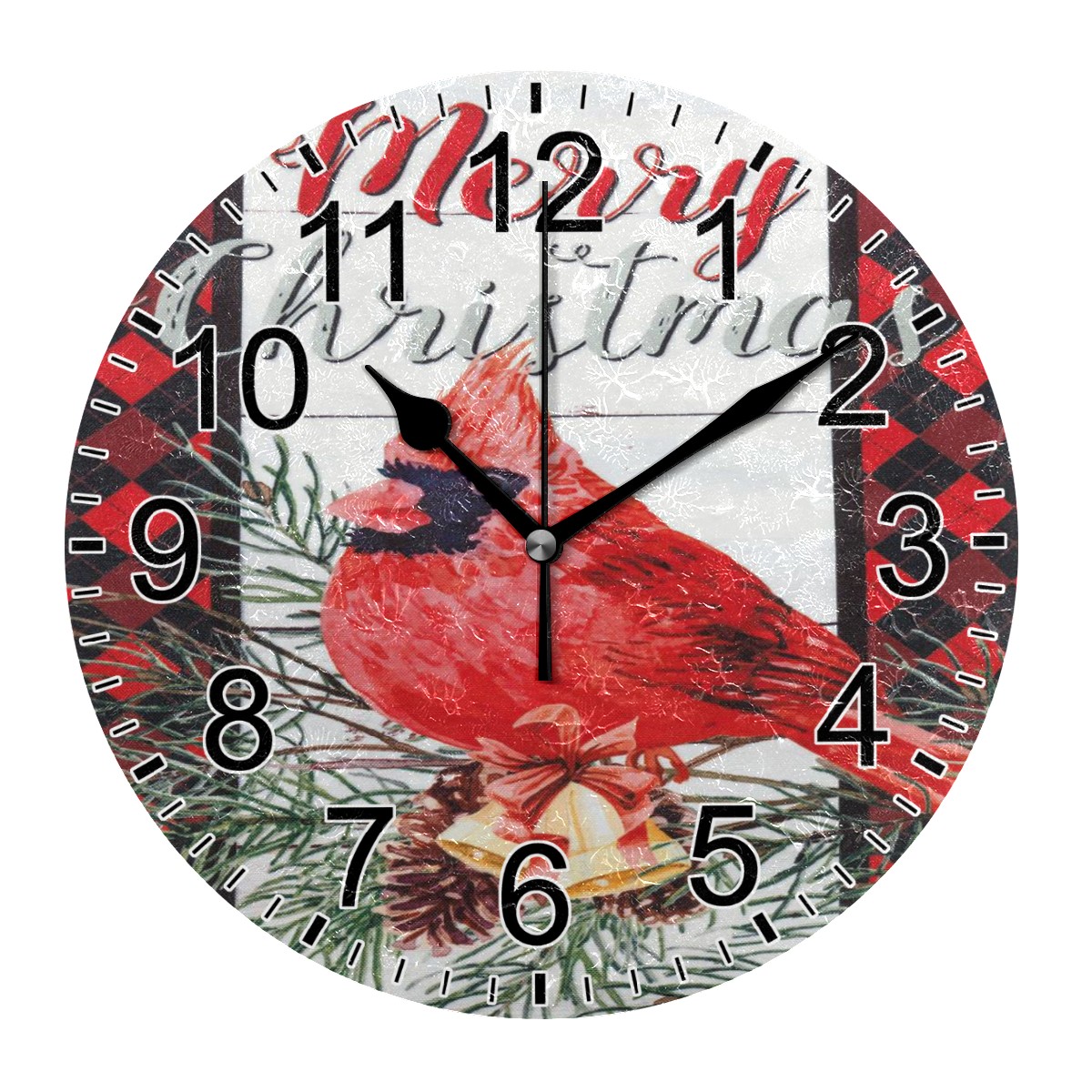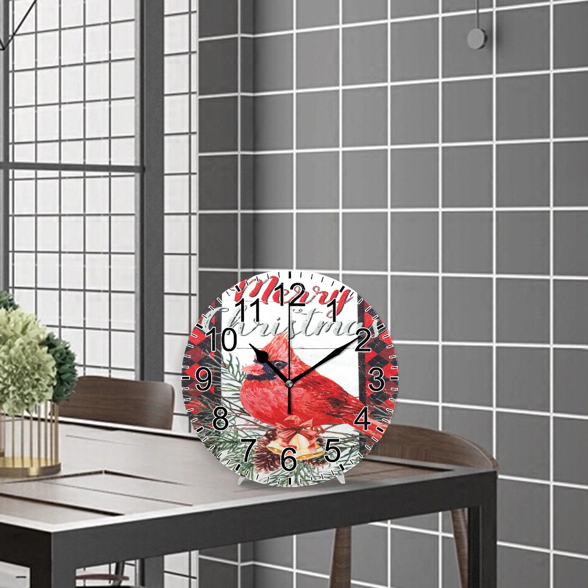 Wall Clock Home Decorative Merry Christmas Cardinal Bird Silent Non Ticking Acrylic 10 Inch Office School Round Clock Art