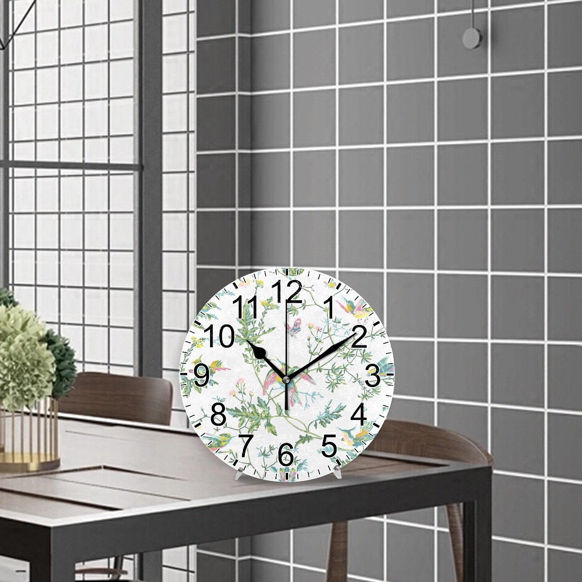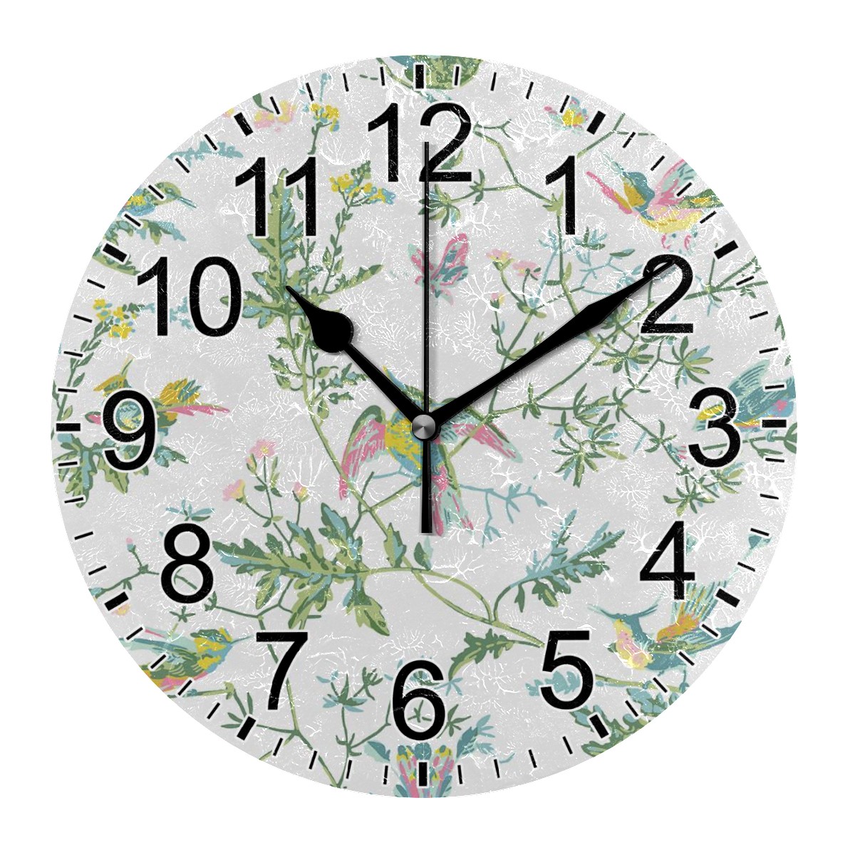 Wall Clock Home Decorative Hummingbirds Lilacs Retro Flower Silent Non Ticking Acrylic 10 Inch Office School Round Clock Art