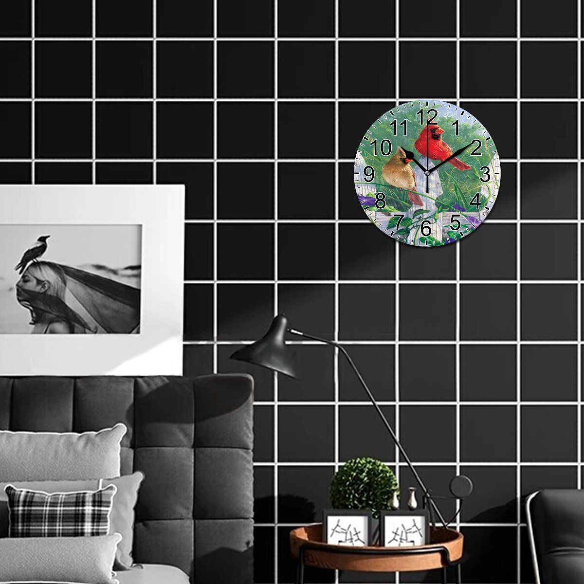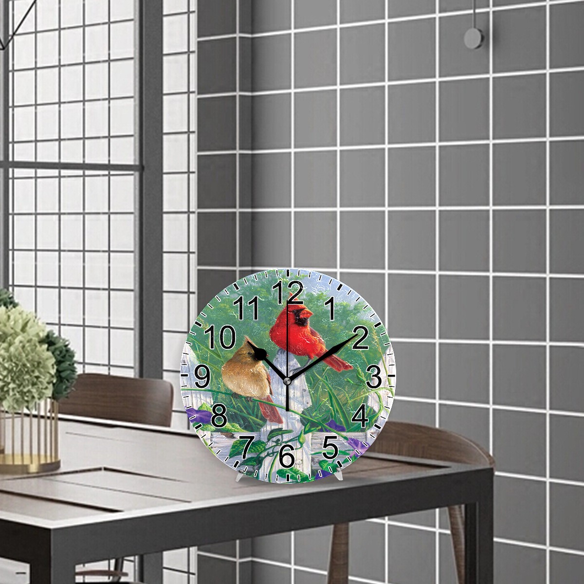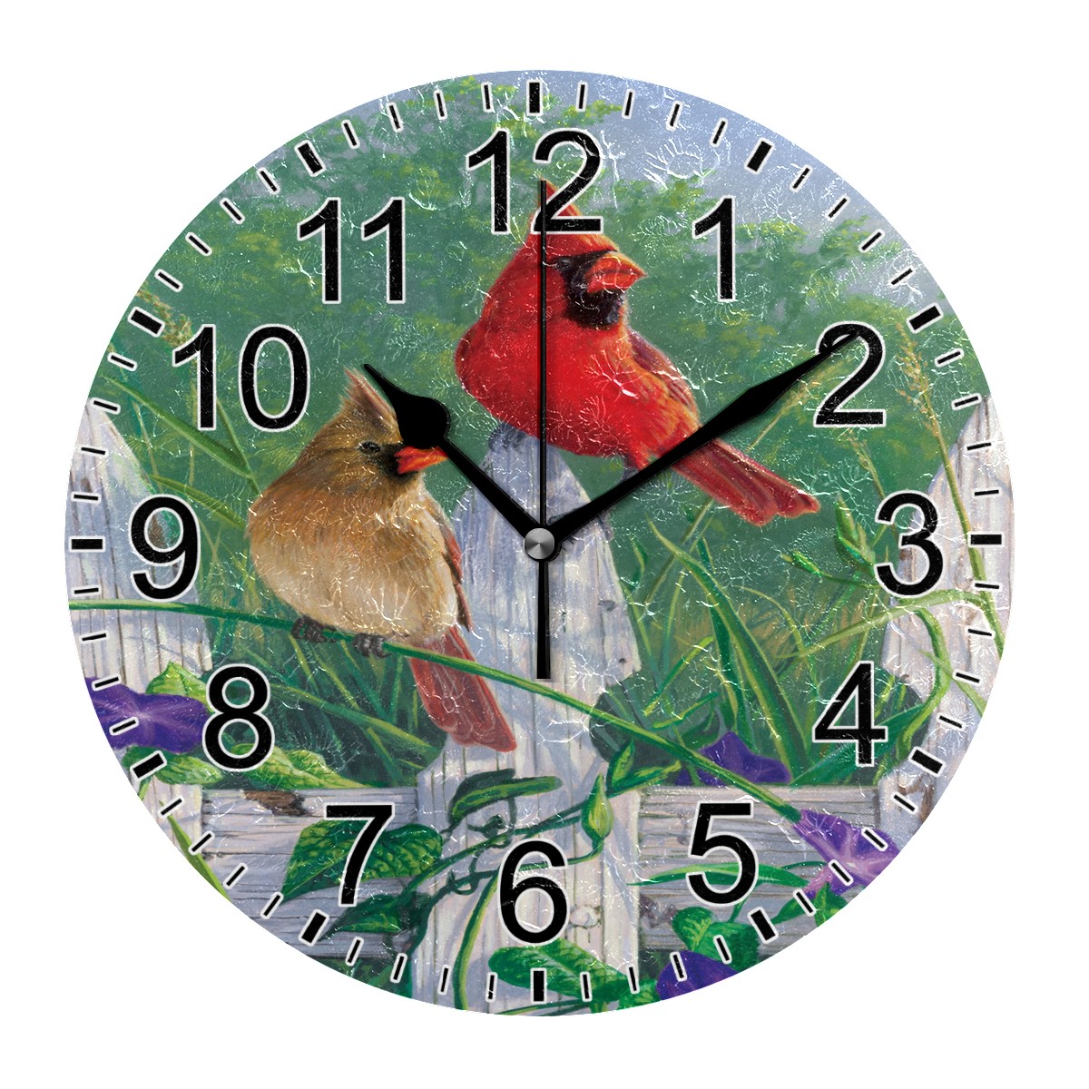 Wall Clock Home Decorative Cardinal Bird Silent Non Ticking Acrylic 10 Inch Office School Round Clock Art