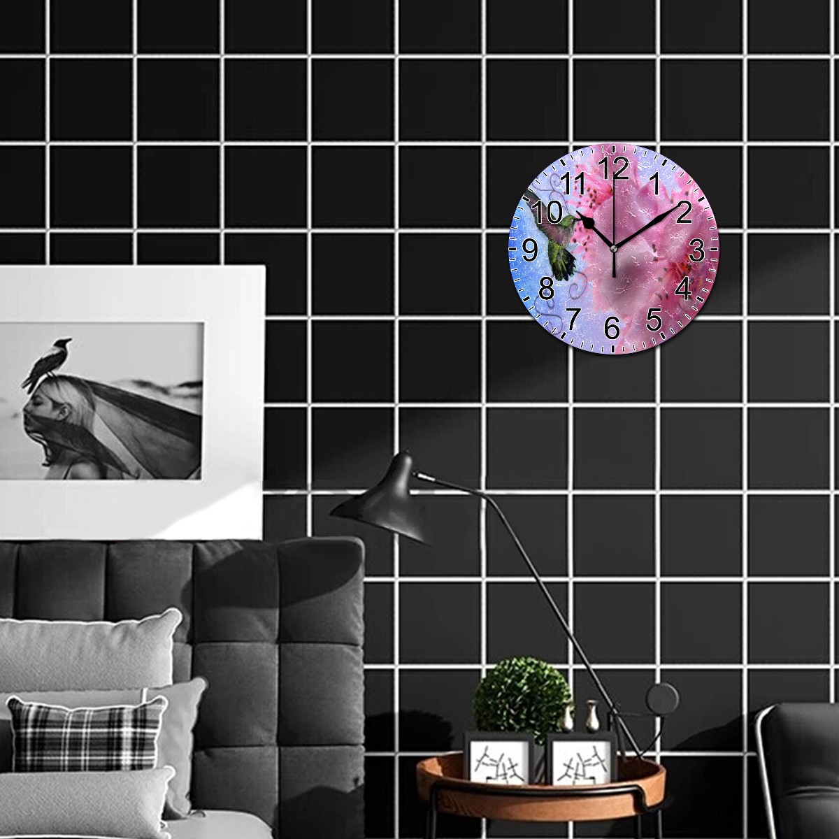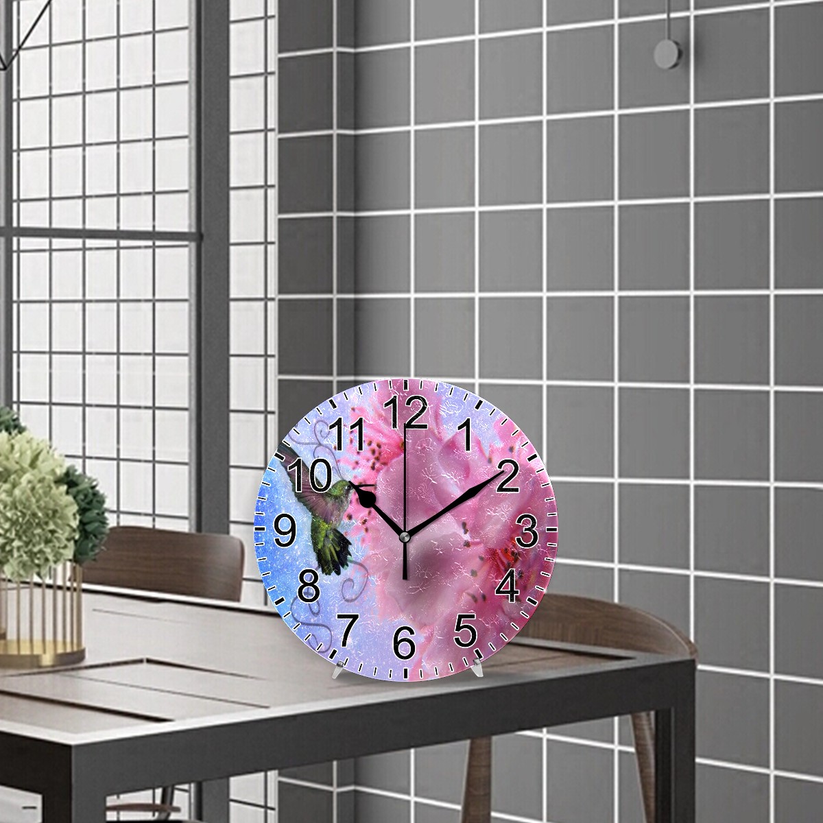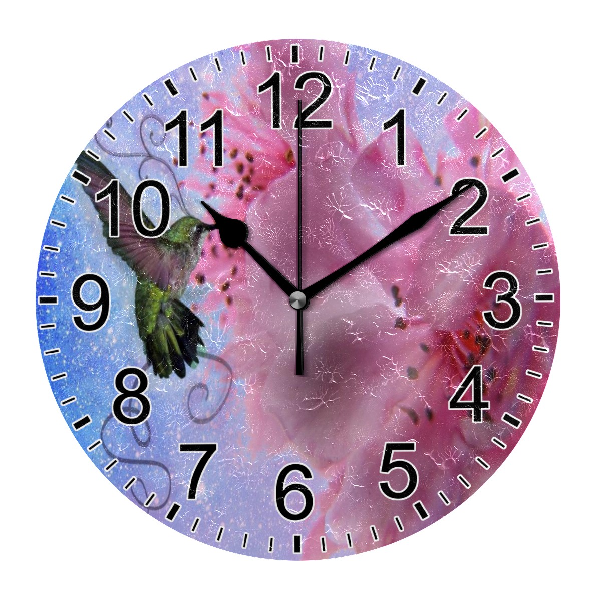 Wall Clock Home Decorative Hummingbird Hibiscus Silent Non Ticking Acrylic 10 Inch Office School Round Clock Art