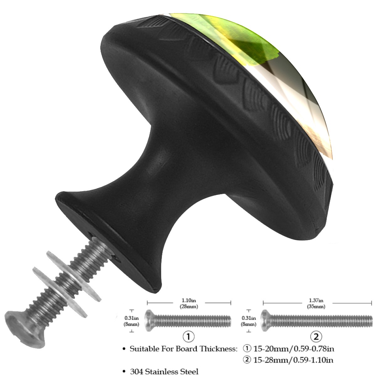 <p><b>Product Specification</b></p><p>Crystal Diameter: 30mm(1.18 inch)</p><p>Knob Height: 28mm(1.10 inch)</p><p>Base Diameter: 17mm(0.66 inch)</p><p>&nbsp;</p><p><b>Package Includes</b></p><p>4 Piece Drawer Pull Knob</p><p>4 Piece Screw</p><p>&nbsp;</p><p><b>Installation Steps</b></p><p>Find the position where you want to install on the board and drill a hole.Then pass through the screw from the back of board anf thread tight to the knob.</p>