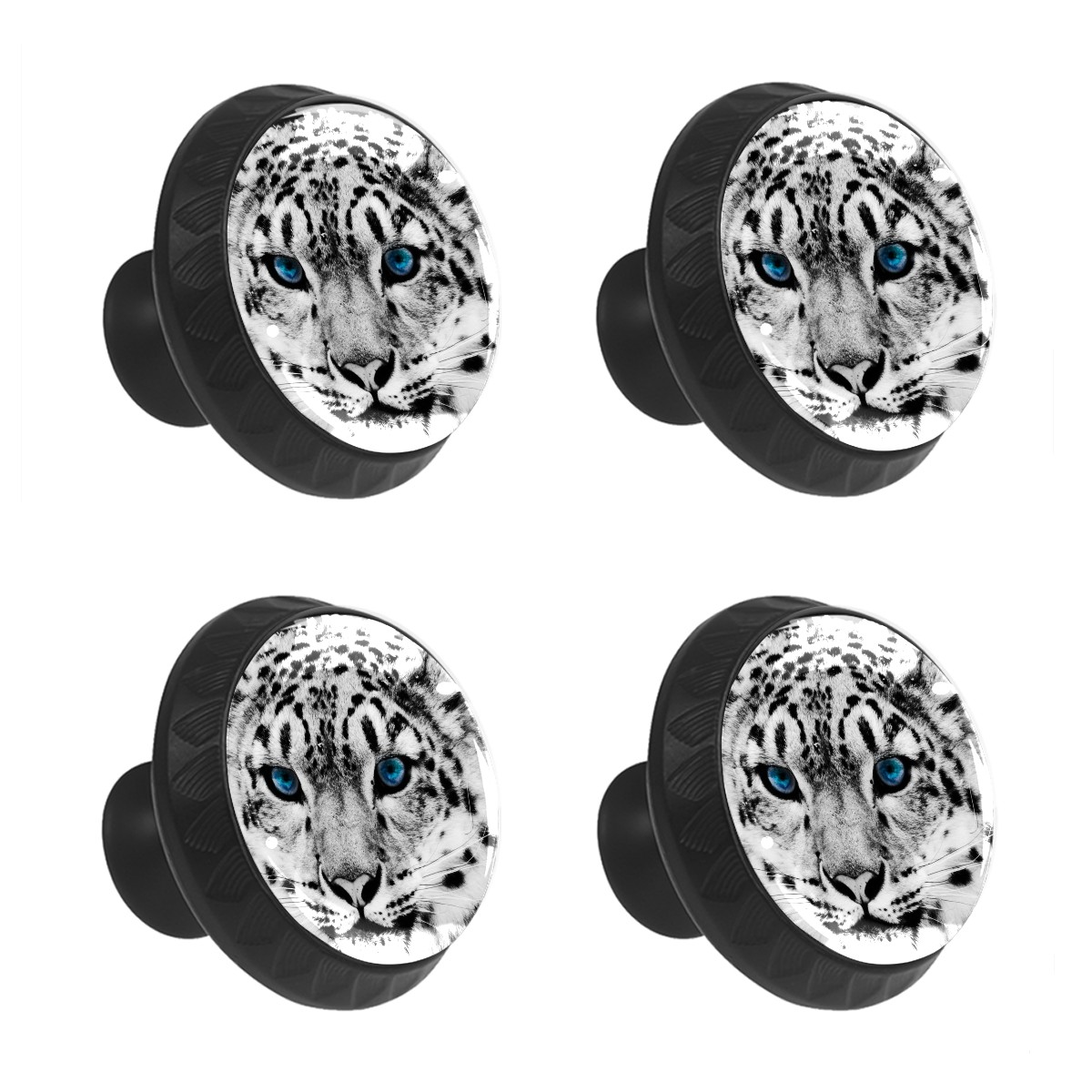 Round Cabinet Door Knobs Cat Snow Leopard Blue Eyes Decorative Pulls Handles Cupboard Wardrobe Furniture Handles