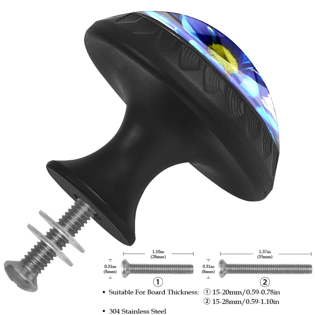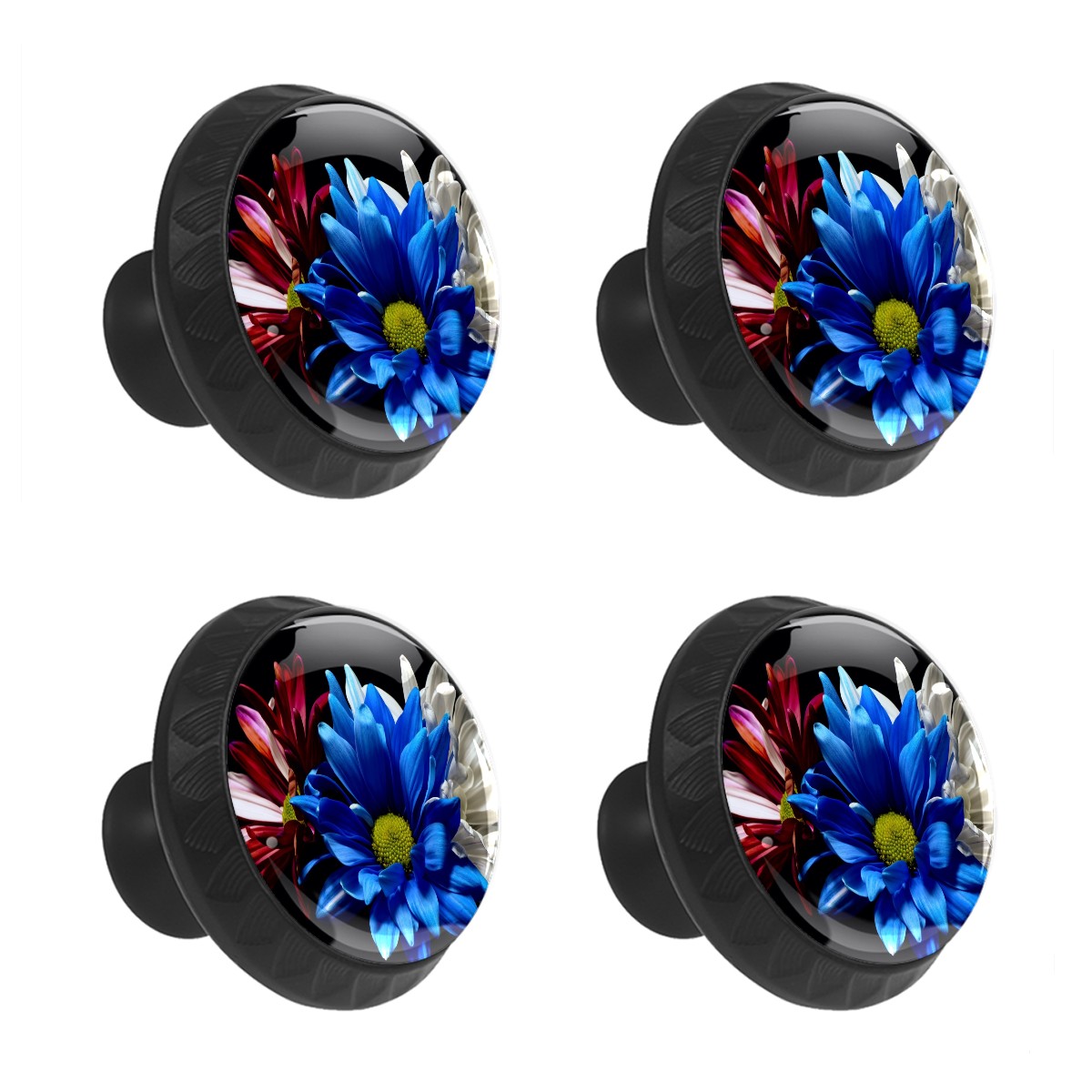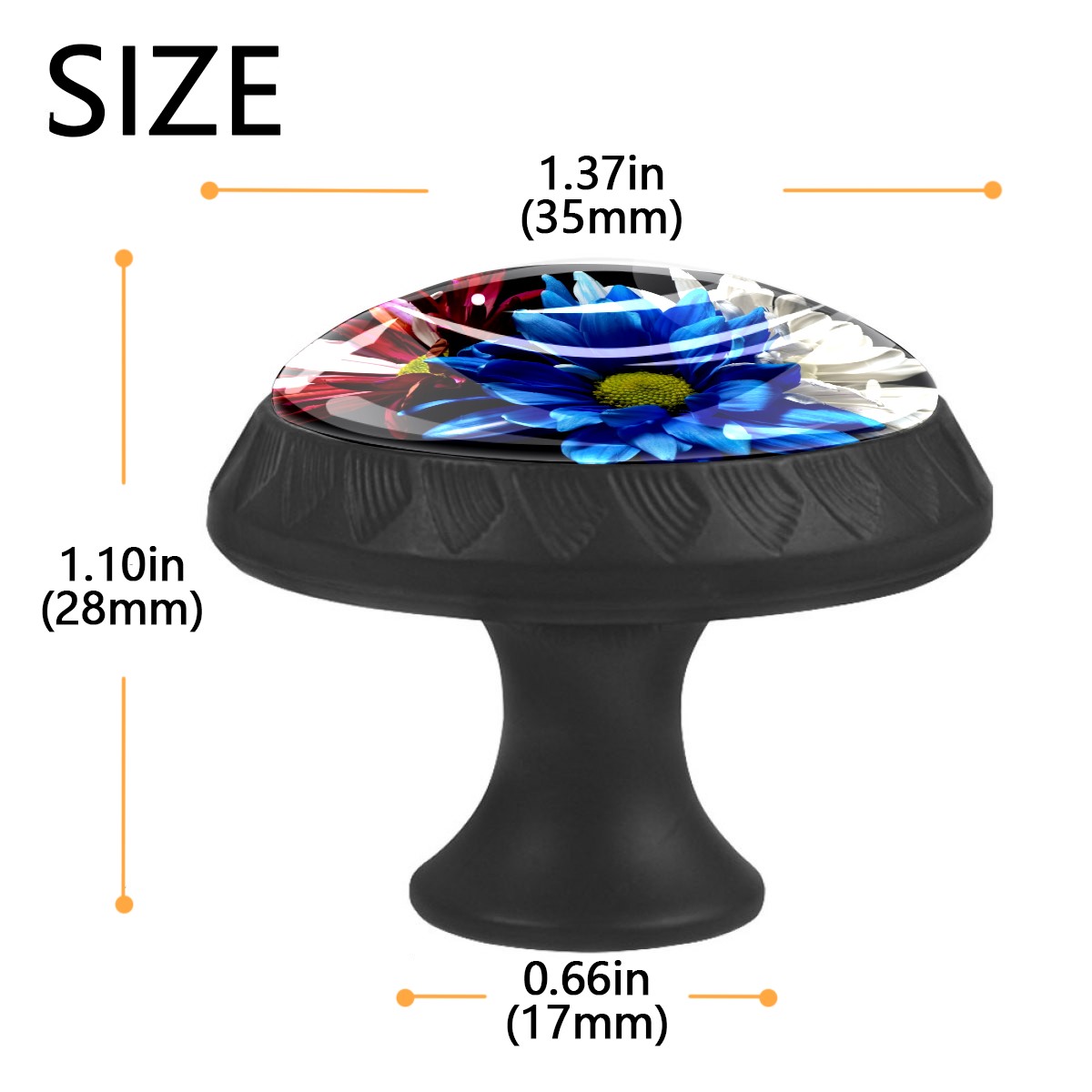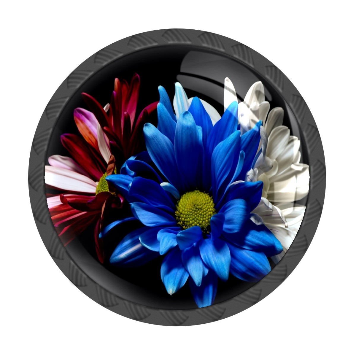 Round Cabinet Door Knobs Blue White And Red Gerbera Flowers Decorative Pulls Handles Cupboard Wardrobe Furniture Handles