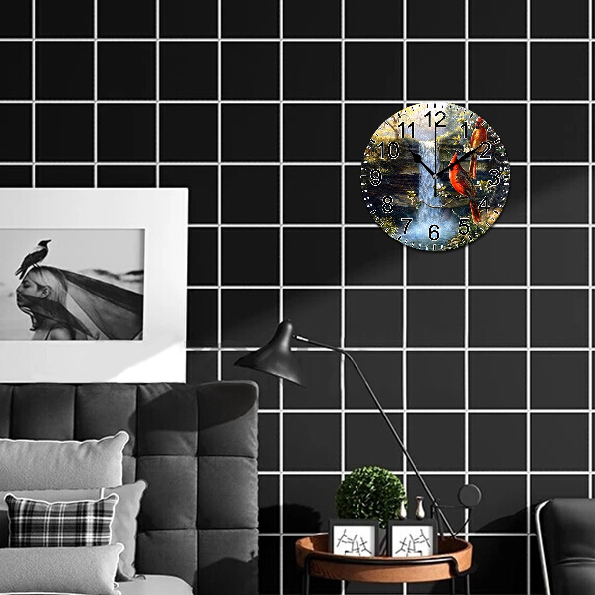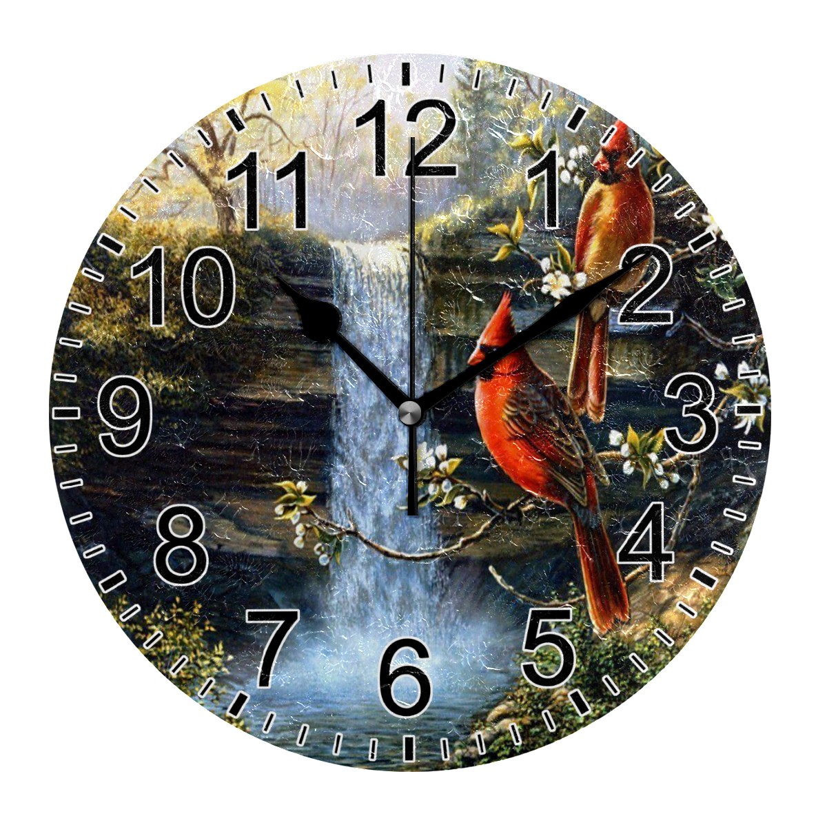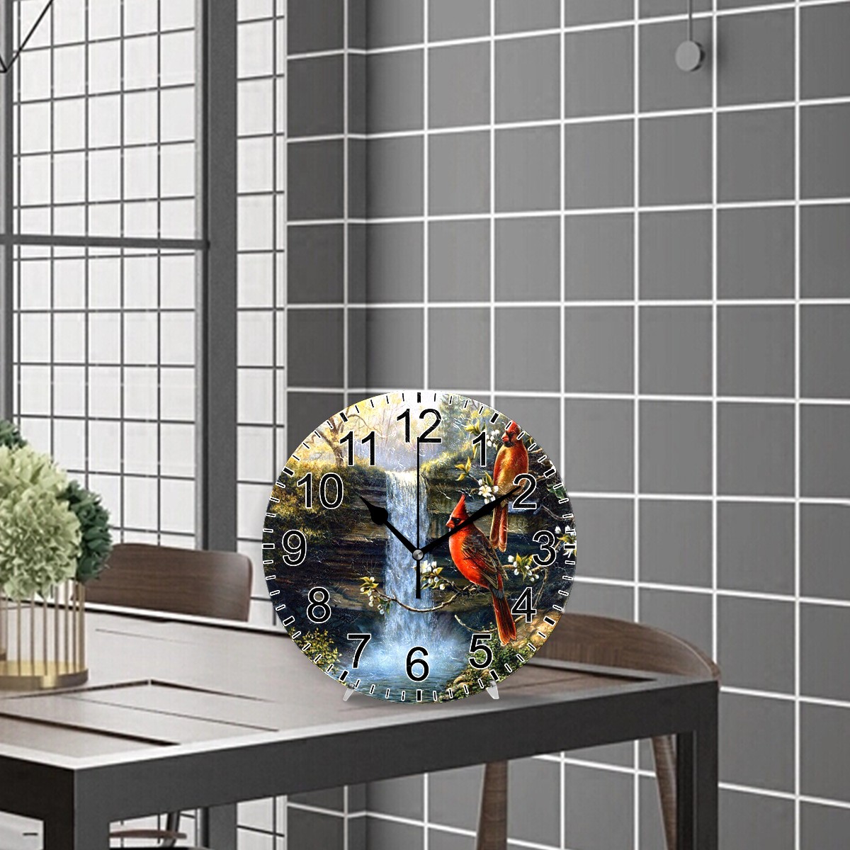 Wall Clock Home Decorative Cardinal Bird Painting Silent Non Ticking Acrylic 10 Inch Office School Round Clock Art