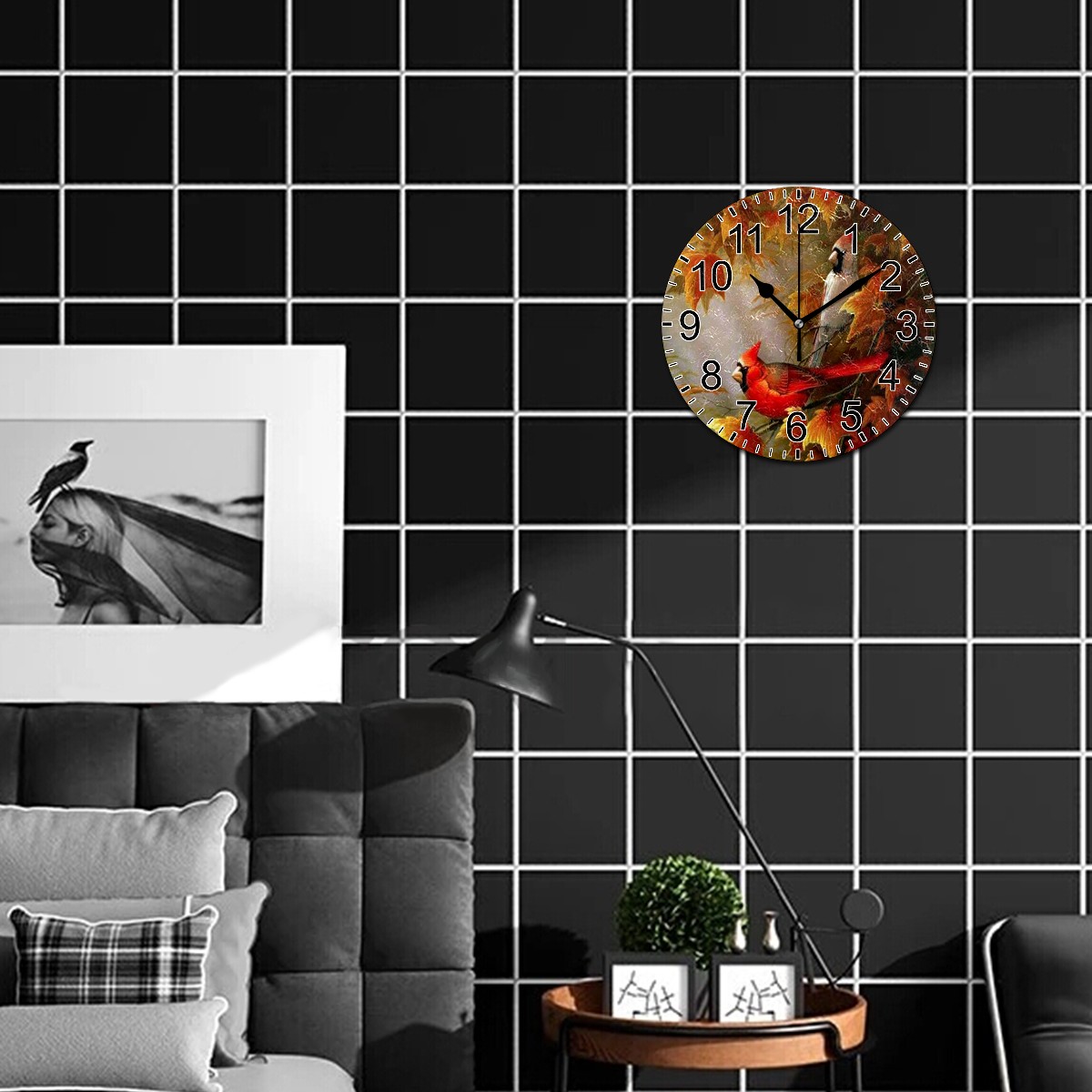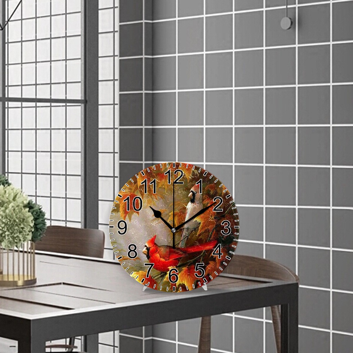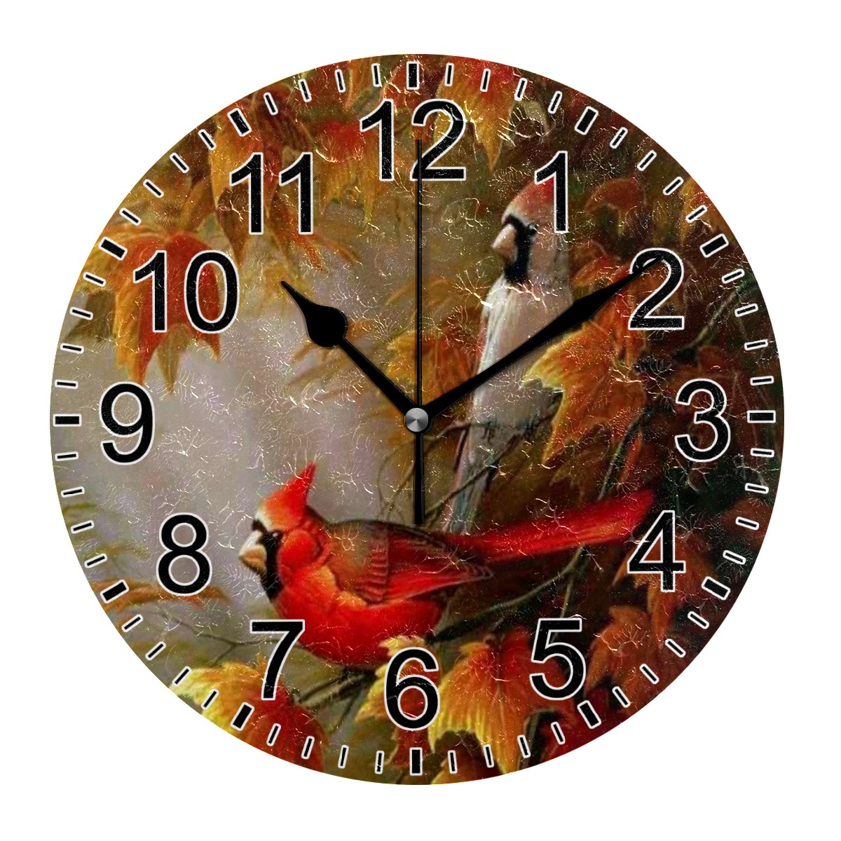 Wall Clock Home Decorative Autumn Painting Cardinal Bird Silent Non Ticking Acrylic 10 Inch Office School Round Clock Art