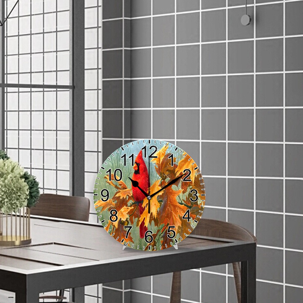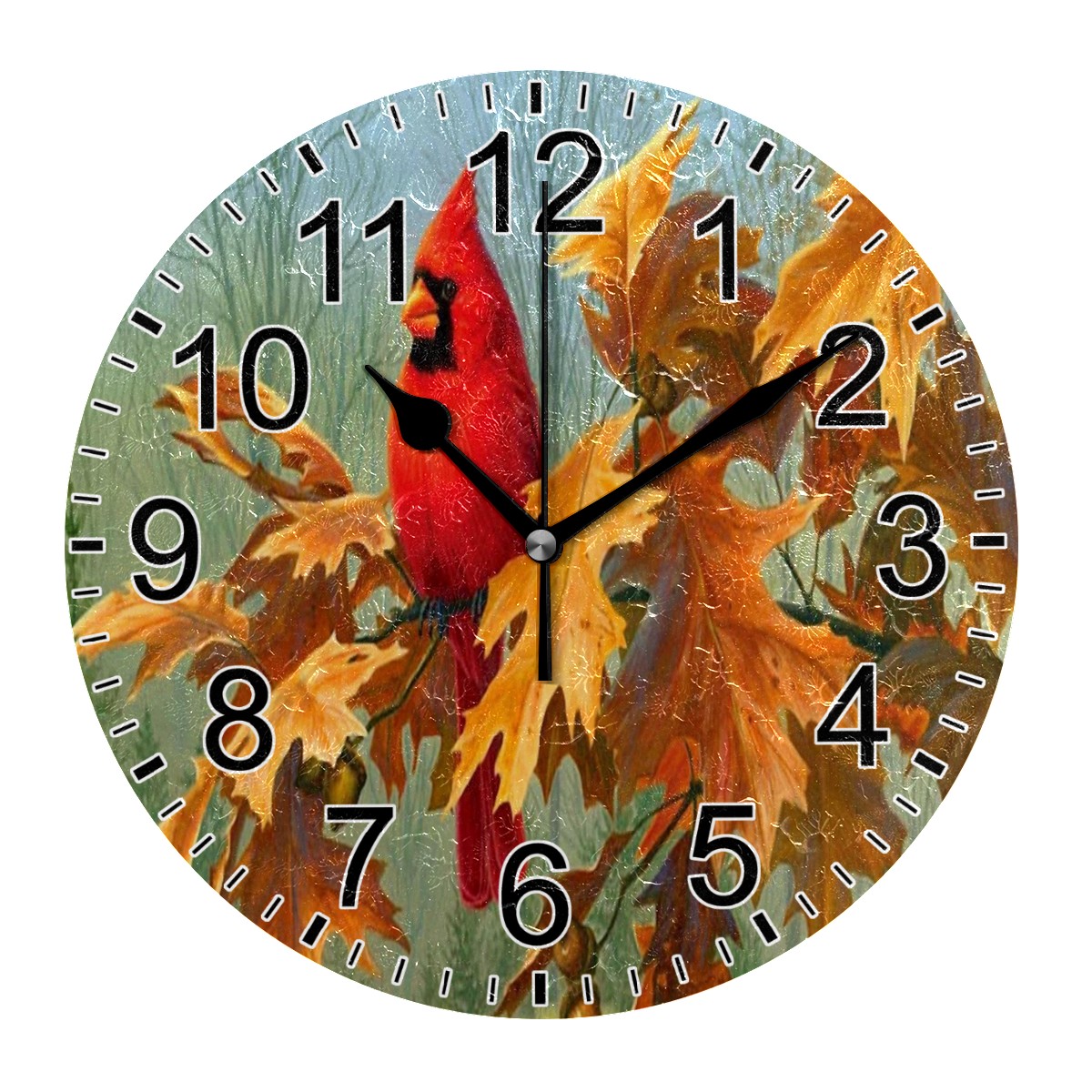 Wall Clock Home Decorative Autumn Cardinal Bird Painting Silent Non Ticking Acrylic 10 Inch Office School Round Clock Art