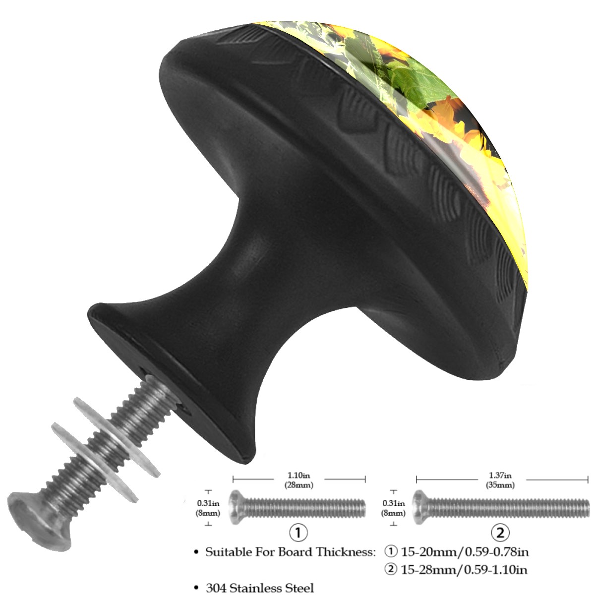 <p><b>Product Specification</b></p><p>Crystal Diameter: 30mm(1.18 inch)</p><p>Knob Height: 28mm(1.10 inch)</p><p>Base Diameter: 17mm(0.66 inch)</p><p>&nbsp;</p><p><b>Package Includes</b></p><p>4 Piece Drawer Pull Knob</p><p>4 Piece Screw</p><p>&nbsp;</p><p><b>Installation Steps</b></p><p>Find the position where you want to install on the board and drill a hole.Then pass through the screw from the back of board anf thread tight to the knob.</p>