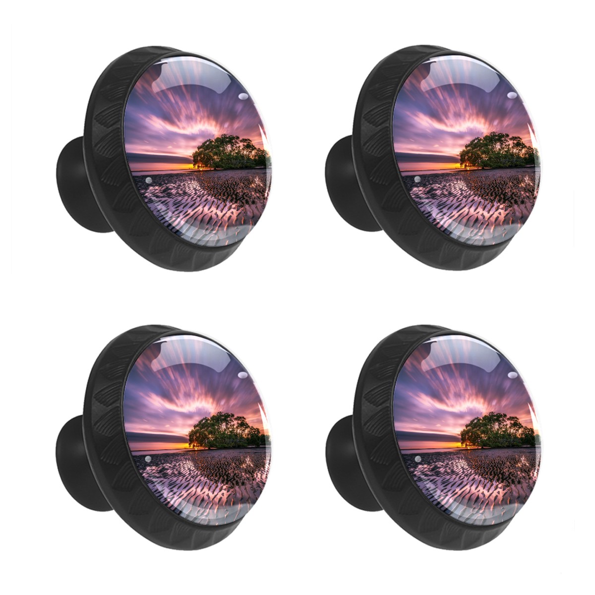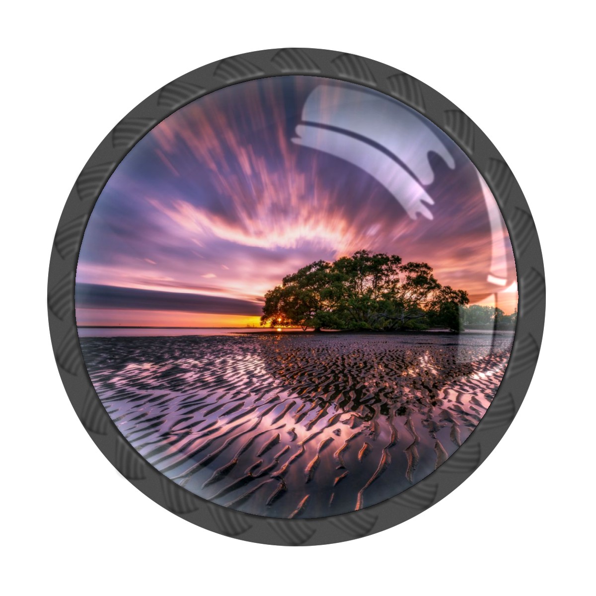 Round Cabinet Door Knobs Landscape Sea Tree Water Ocean Horizon Decorative Pulls Handles Cupboard Wardrobe Furniture Handles