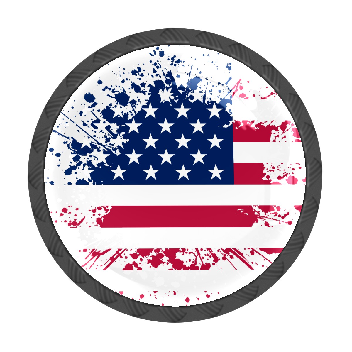 Round Cabinet Door Knobs Grunge Style American Flag Decorative Pulls Handles Cupboard Wardrobe Furniture Handles