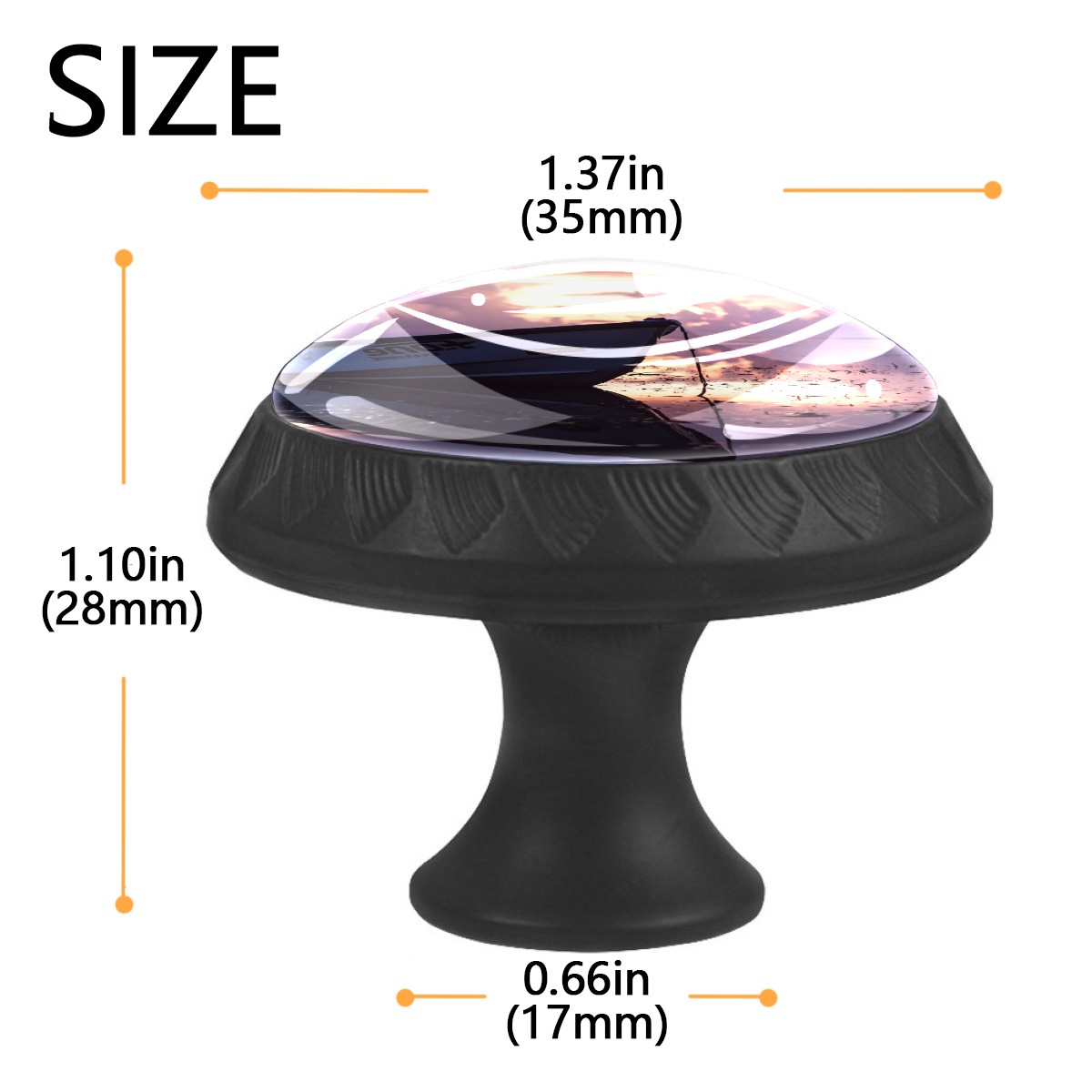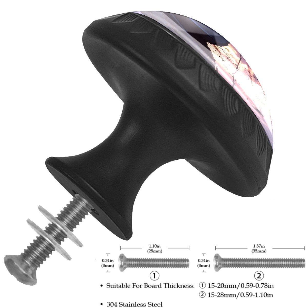 <p><b>Product Specification</b></p><p>Crystal Diameter: 30mm(1.18 inch)</p><p>Knob Height: 28mm(1.10 inch)</p><p>Base Diameter: 17mm(0.66 inch)</p><p>&nbsp;</p><p><b>Package Includes</b></p><p>4 Piece Drawer Pull Knob</p><p>4 Piece Screw</p><p>&nbsp;</p><p><b>Installation Steps</b></p><p>Find the position where you want to install on the board and drill a hole.Then pass through the screw from the back of board anf thread tight to the knob.</p>