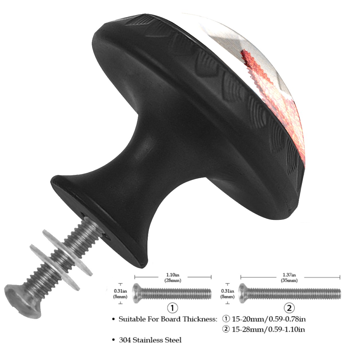 <p><b>Product Specification</b></p><p>Crystal Diameter: 30mm(1.18 inch)</p><p>Knob Height: 28mm(1.10 inch)</p><p>Base Diameter: 17mm(0.66 inch)</p><p>&nbsp;</p><p><b>Package Includes</b></p><p>4 Piece Drawer Pull Knob</p><p>4 Piece Screw</p><p>&nbsp;</p><p><b>Installation Steps</b></p><p>Find the position where you want to install on the board and drill a hole.Then pass through the screw from the back of board anf thread tight to the knob.</p>