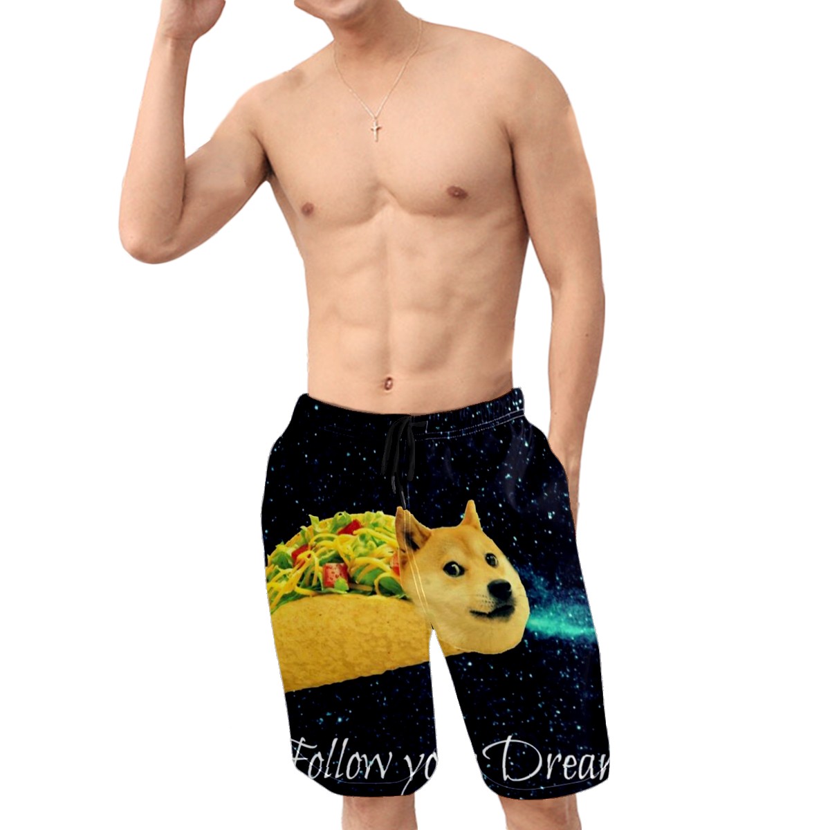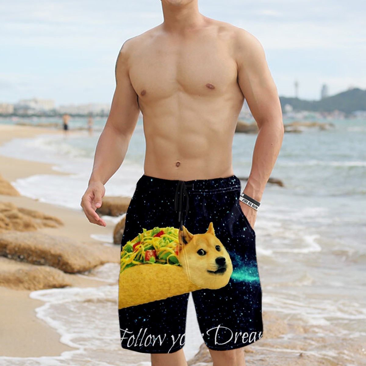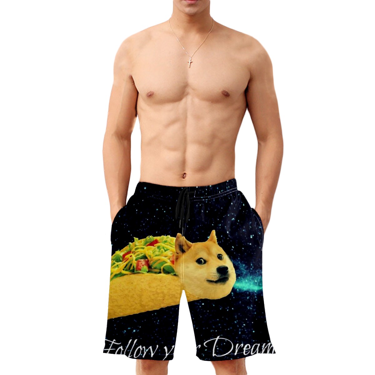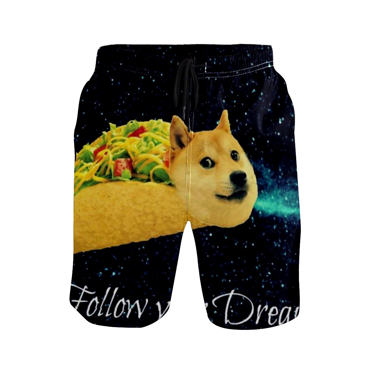 Men's Swim Trunks Funny Dog Follow Your Dream Beachwear Board Shorts Quick Dry Beach Shorts S