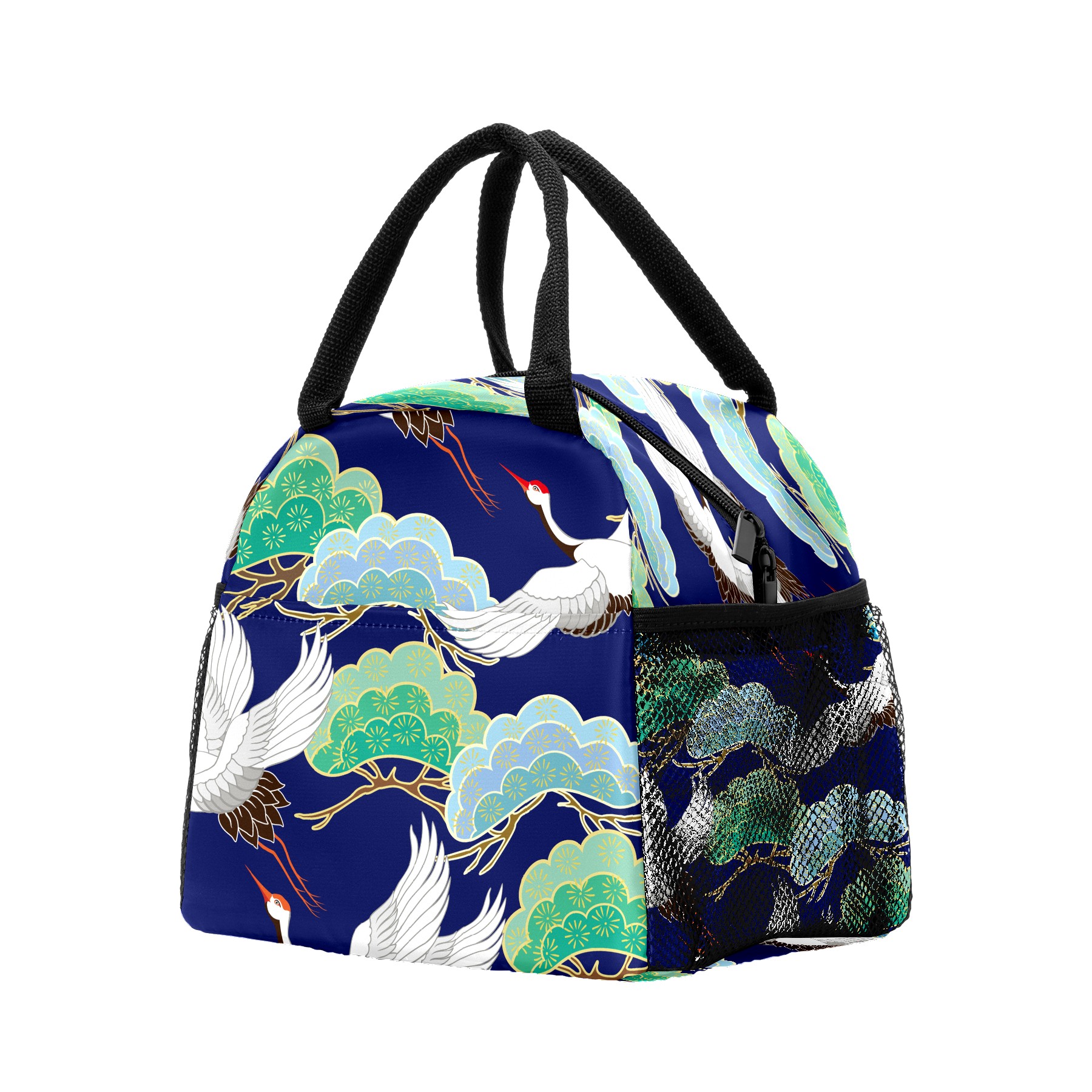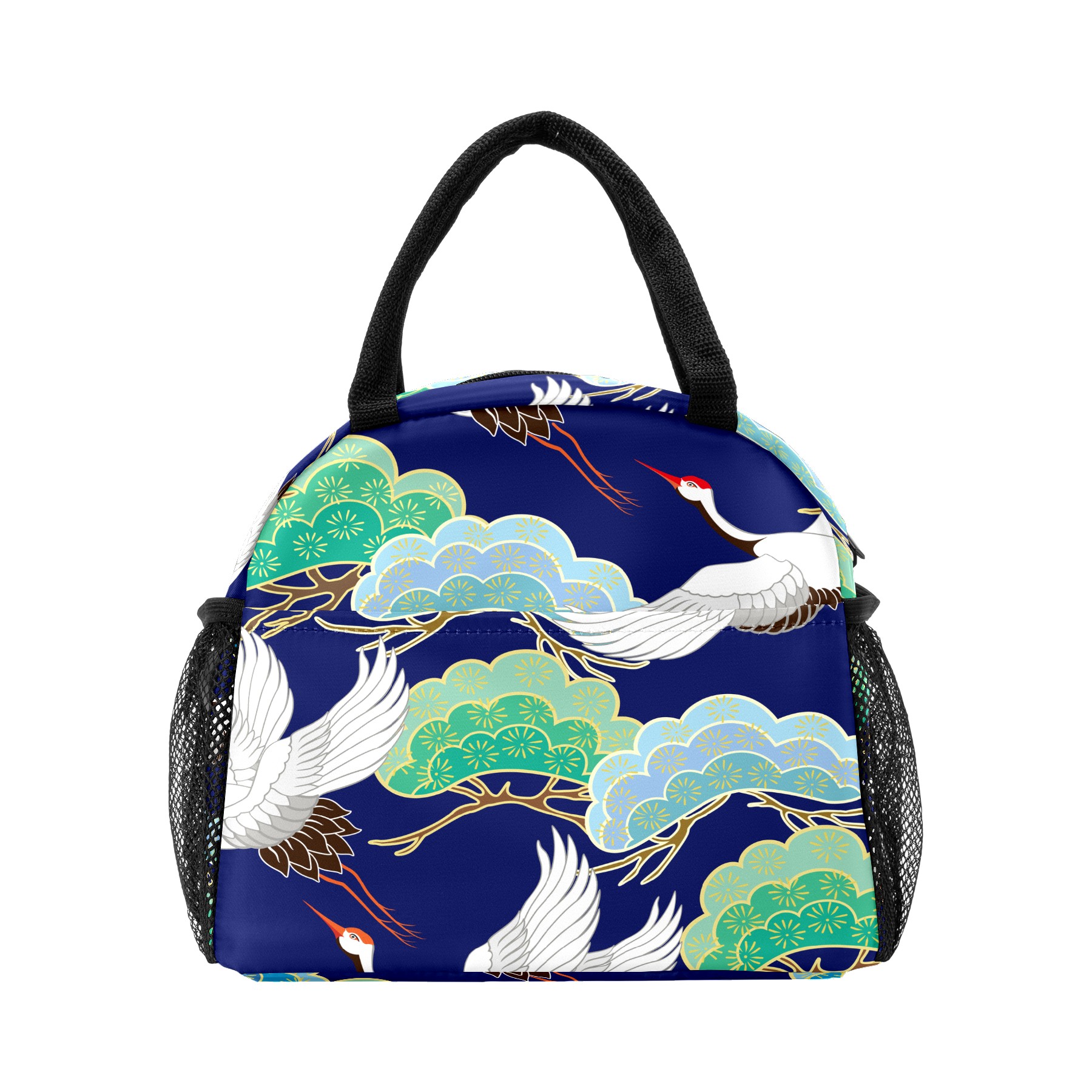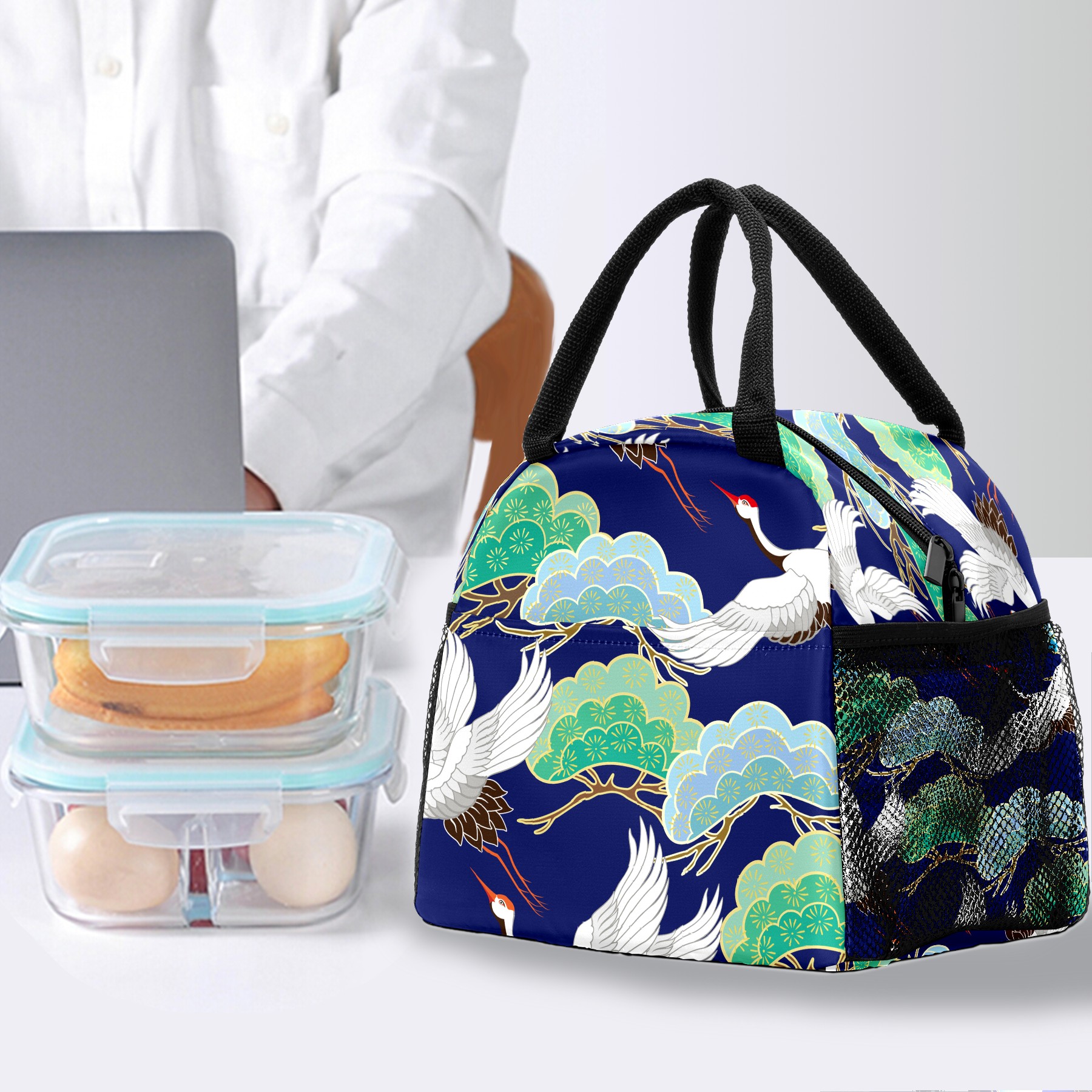 Lunch Bag for Women Men, Blue Japanese Crane Clouds Insulated Reusable Lunch Box Thermal Cooler Tote Bag for Work Picnic Hiking Travel Beach