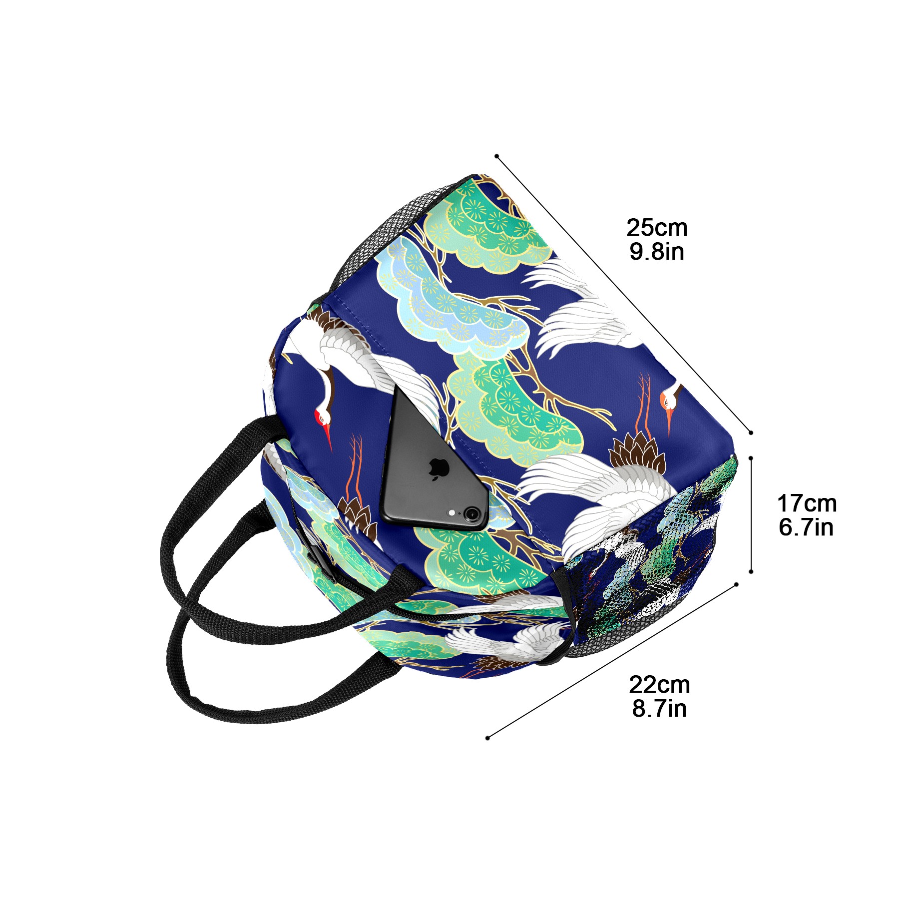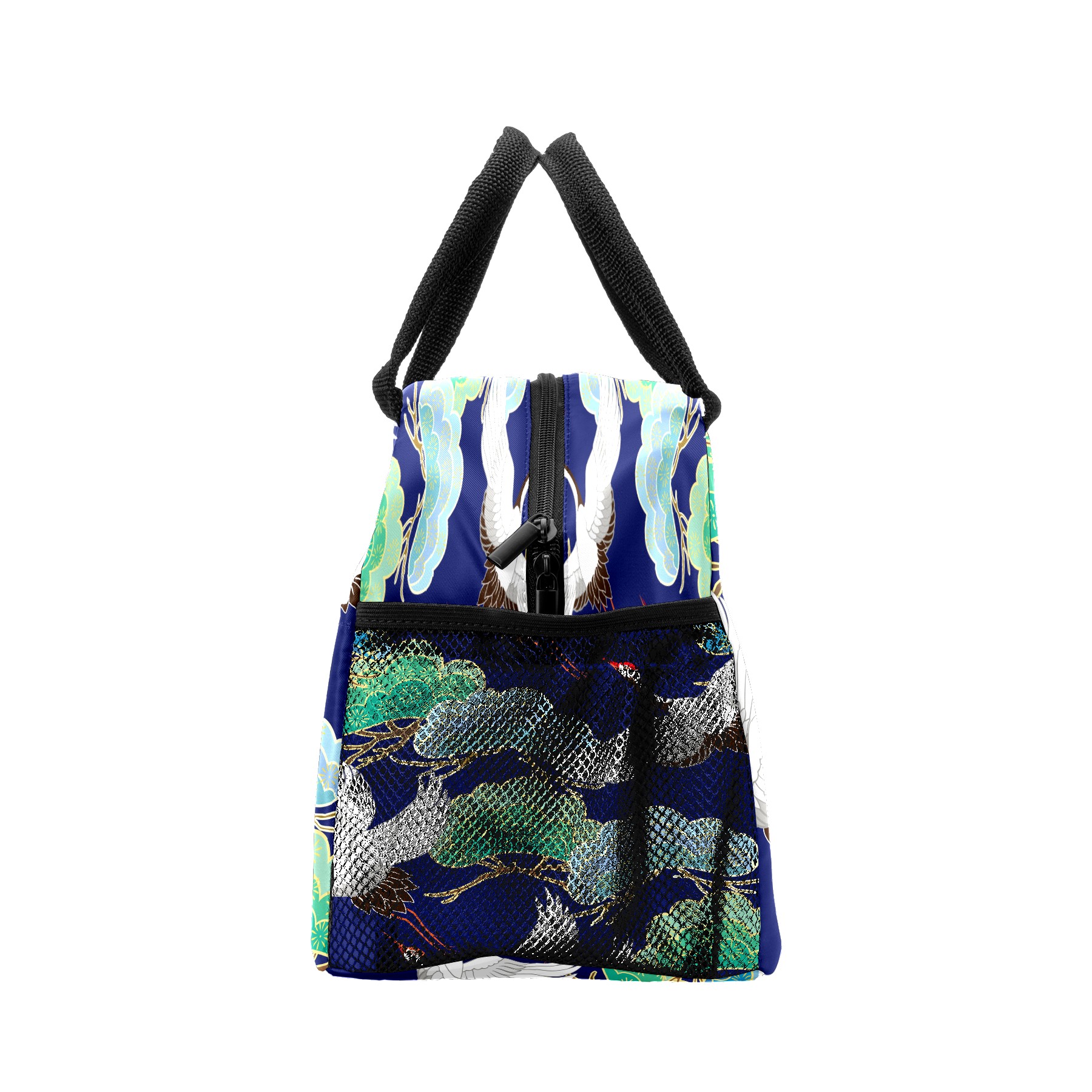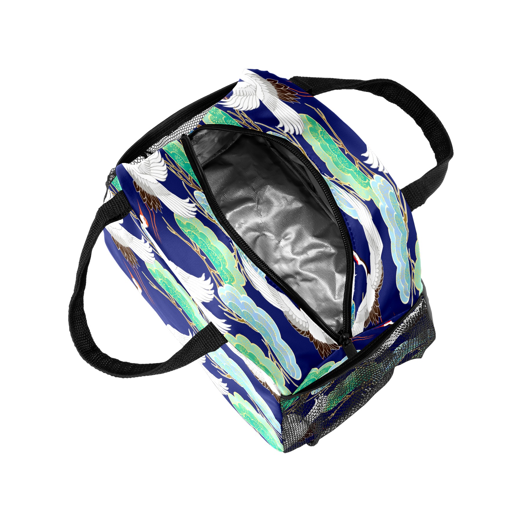 Lunch Bag for Women Men, Blue Japanese Crane Clouds Insulated Reusable Lunch Box Thermal Cooler Tote Bag for Work Picnic Hiking Travel Beach