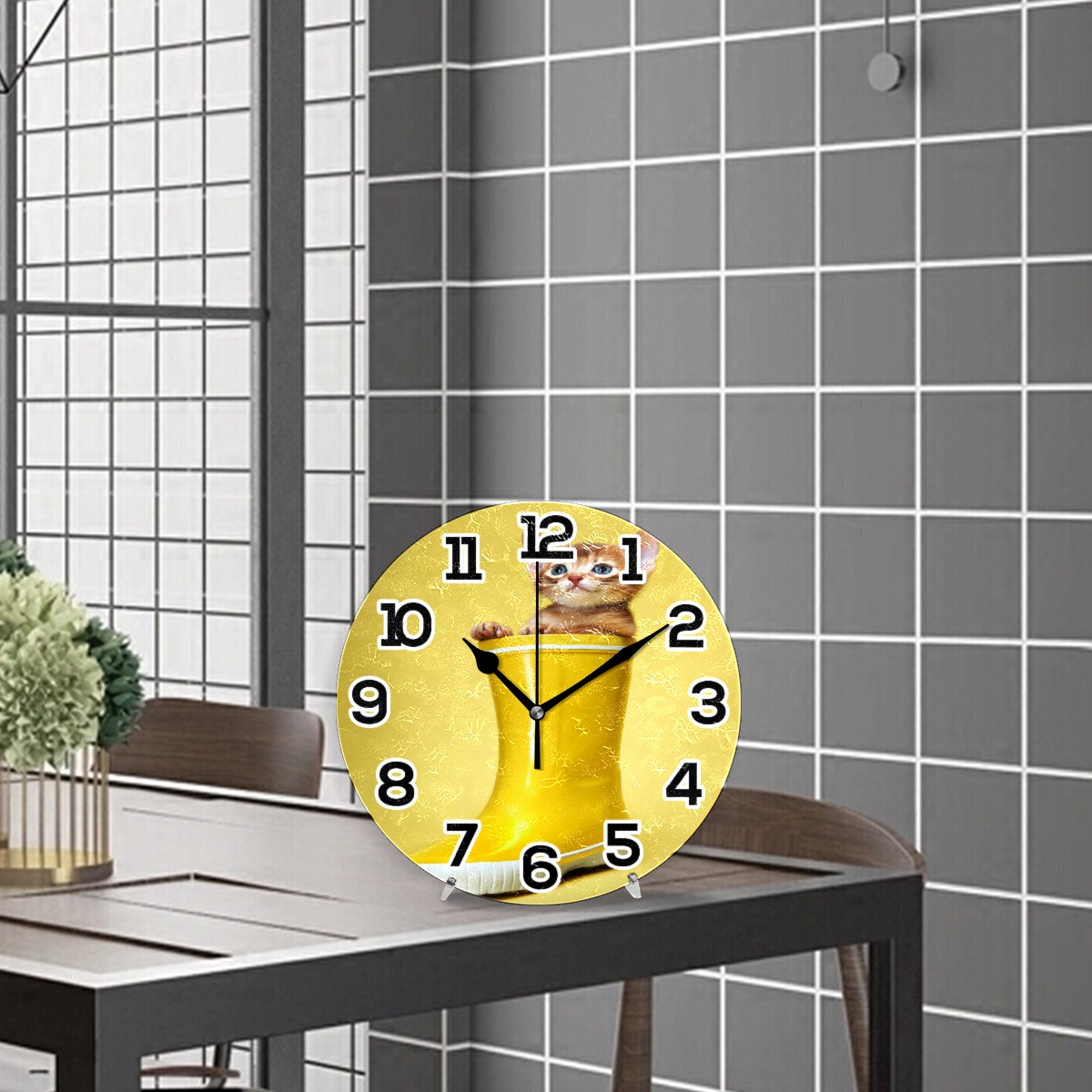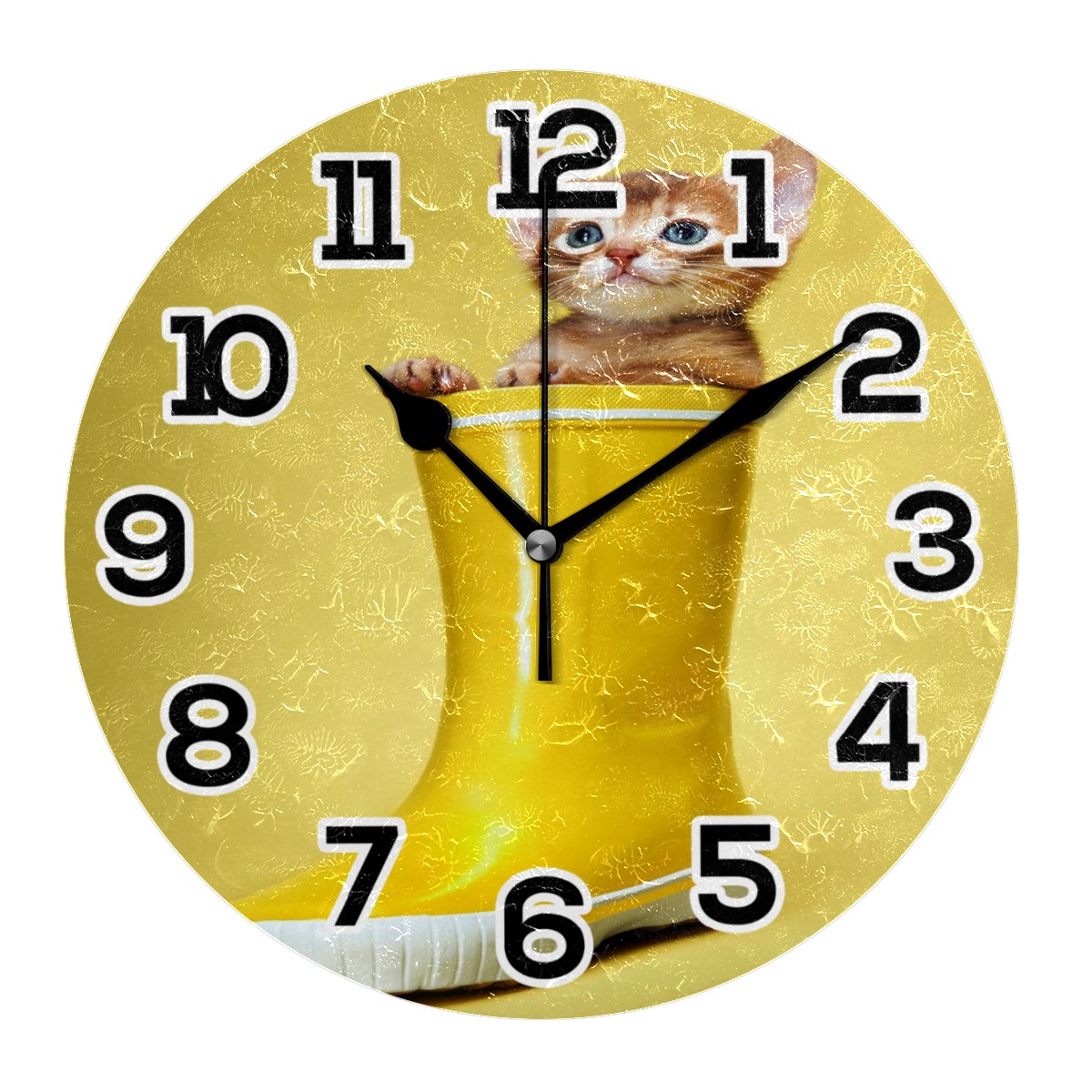 Funny Cat Clock Wall Decor Acrylic Decorative Round Battery Operated Wall Clocks for Home Bedroom Living Room Decor Silent Non Ticking
