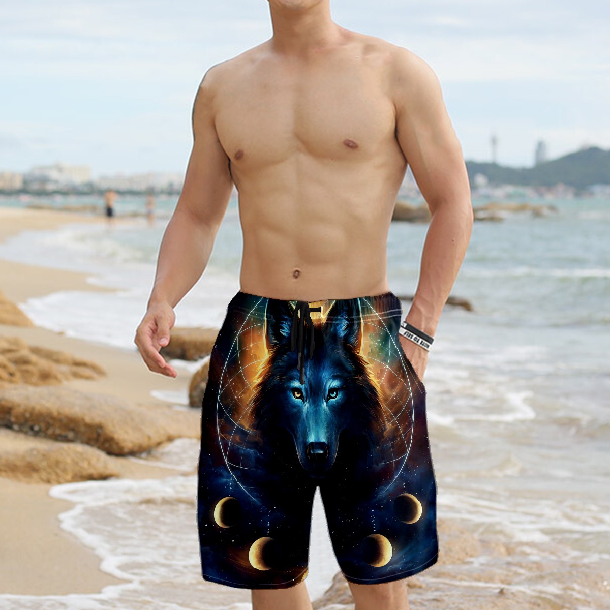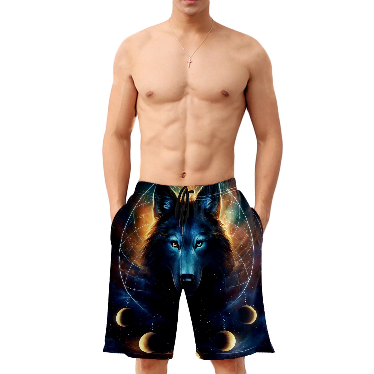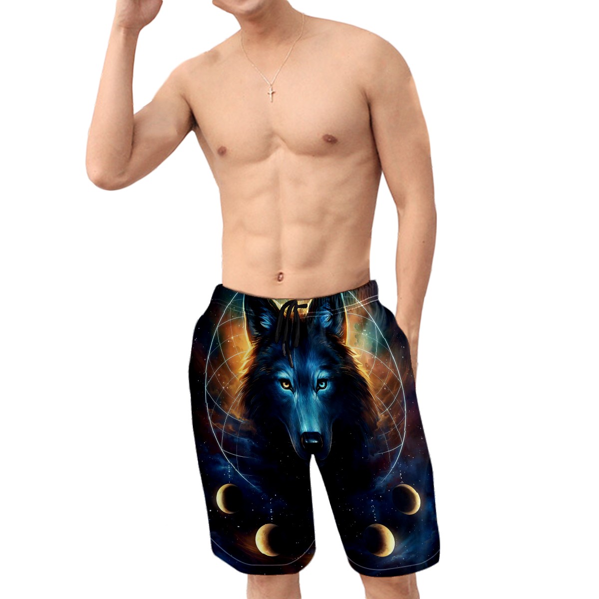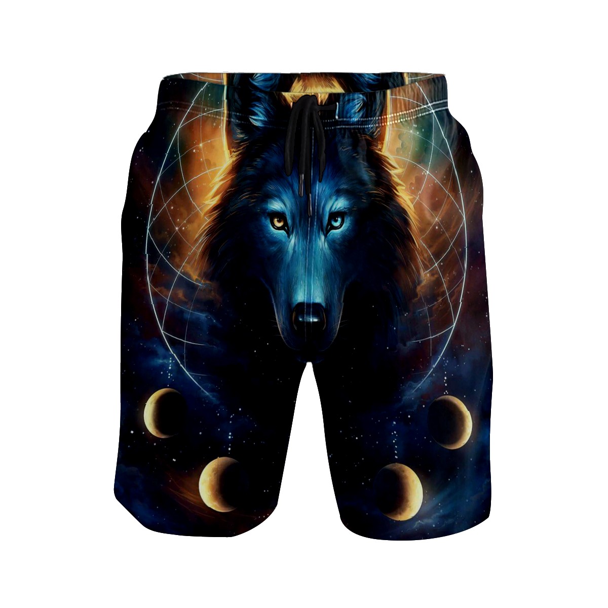 Men's Swim Trunks Dream Catcher Signed Art Print Fantasy Wolf Moon Beachwear Board Shorts Quick Dry Beach Shorts S