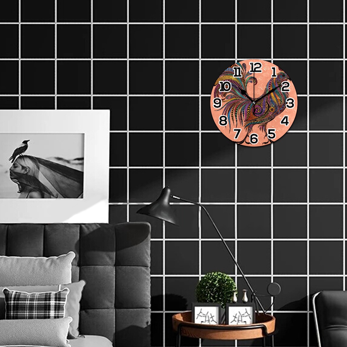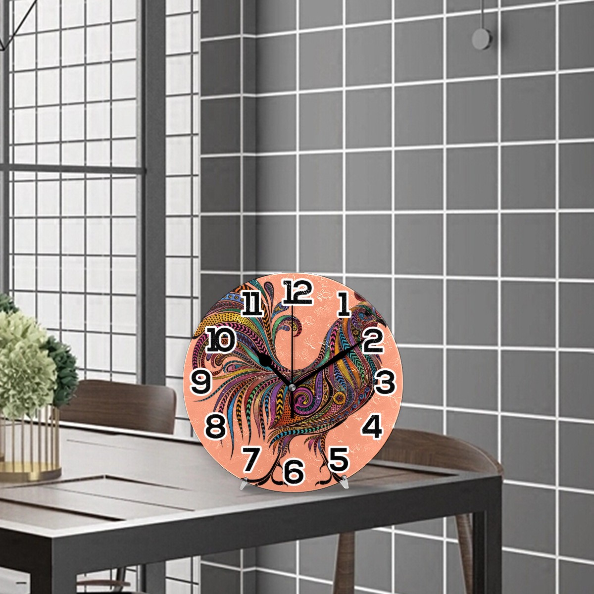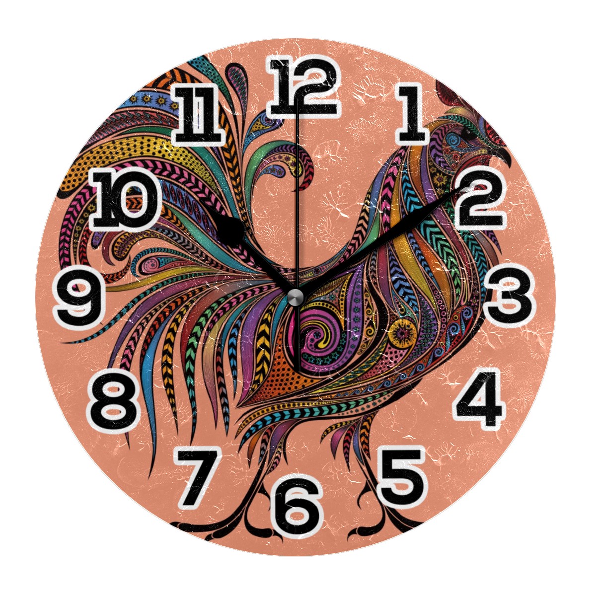 Colorful Rooster Chicken Clock Wall Decor Acrylic Decorative Round Battery Operated Wall Clocks for Home Bedroom Living Room Decor Silent Non Ticking