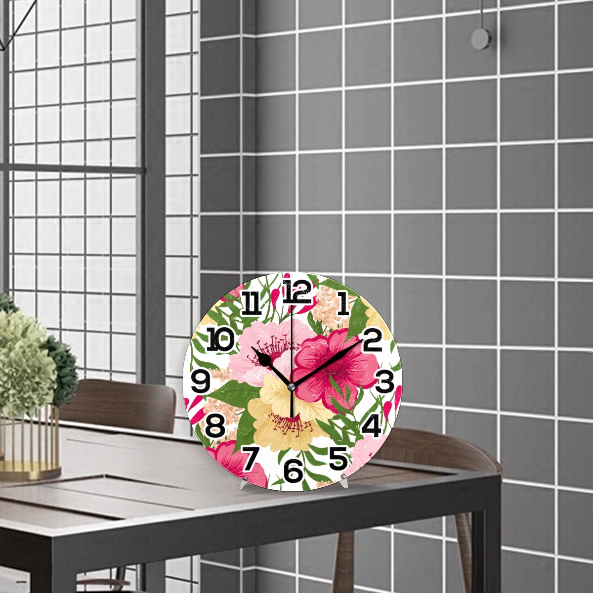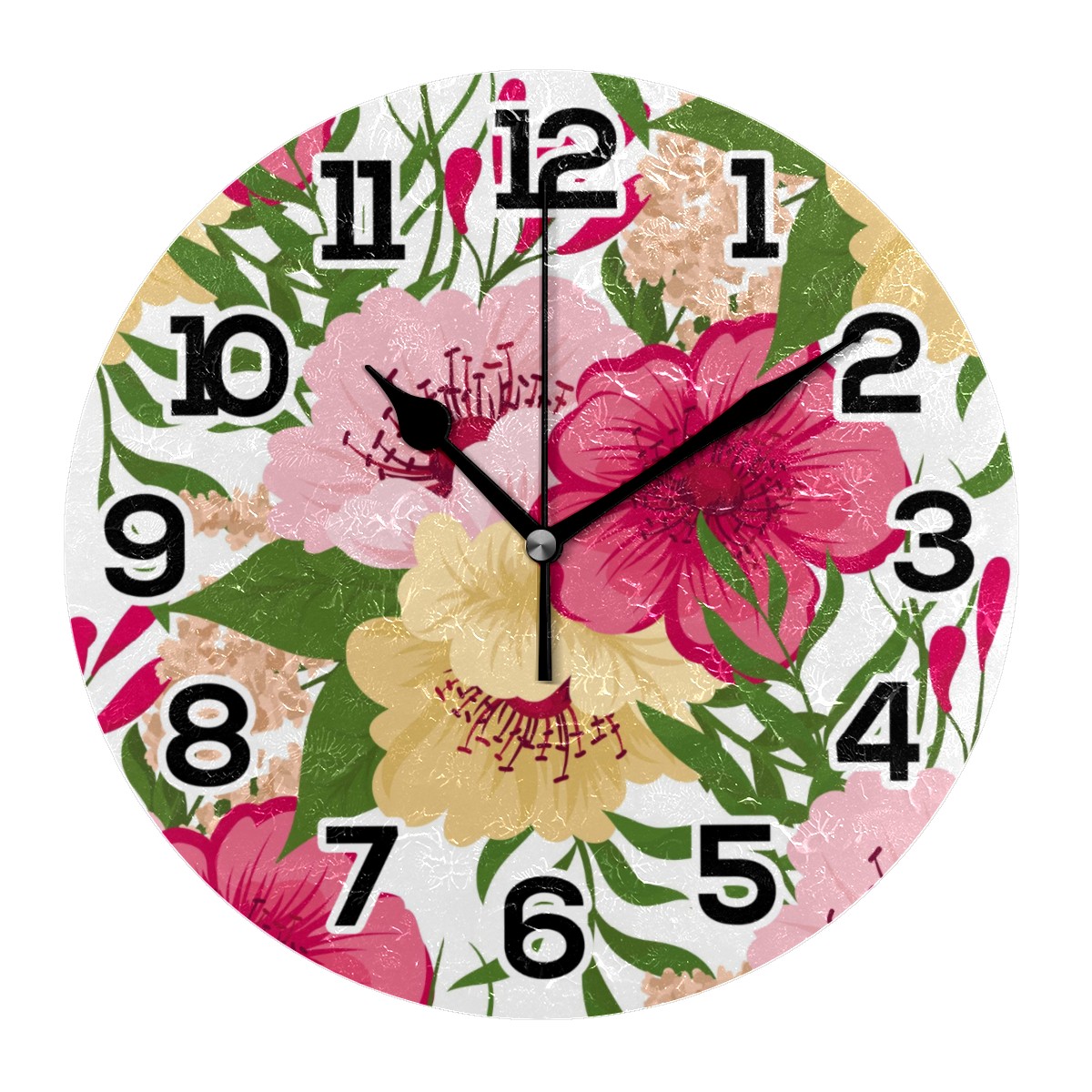 Spring Floral Clock Wall Decor Acrylic Decorative Round Battery Operated Wall Clocks for Home Bedroom Living Room Decor Silent Non Ticking