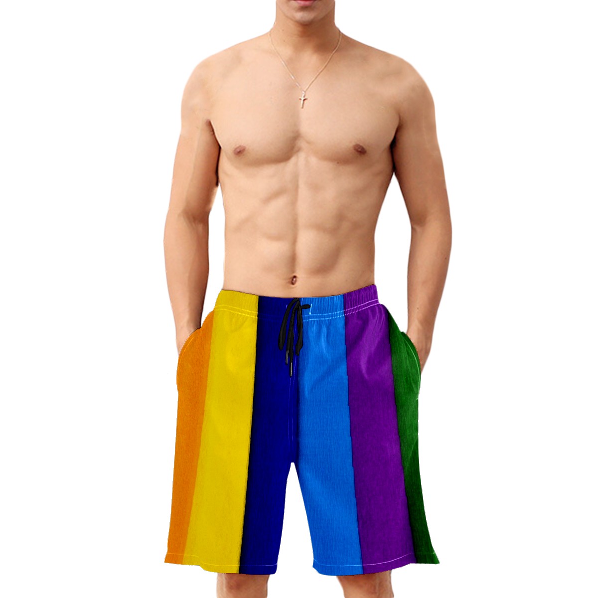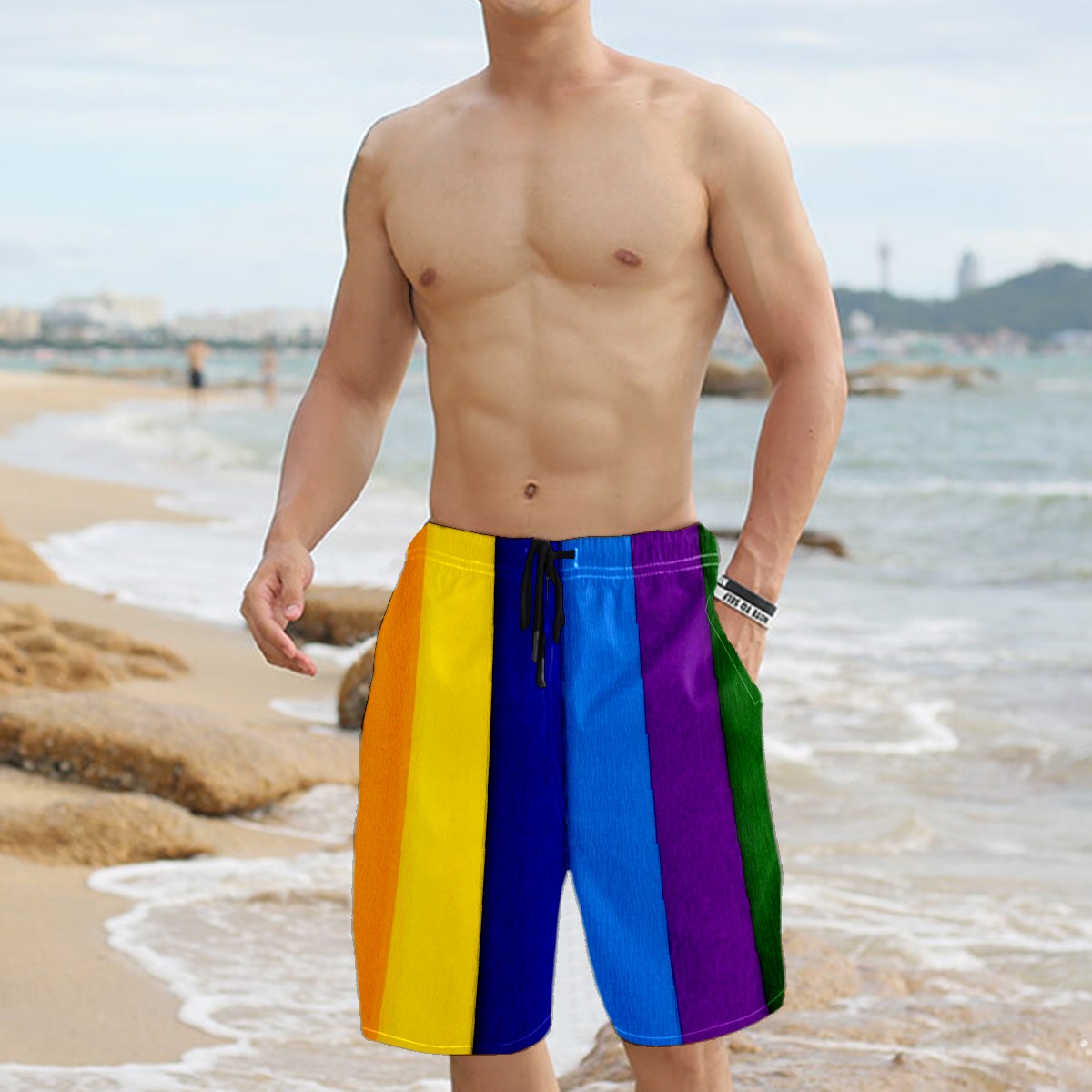 Men's Swim Trunks Colored Vertical Bars Beachwear Board Shorts Quick Dry Beach Shorts S