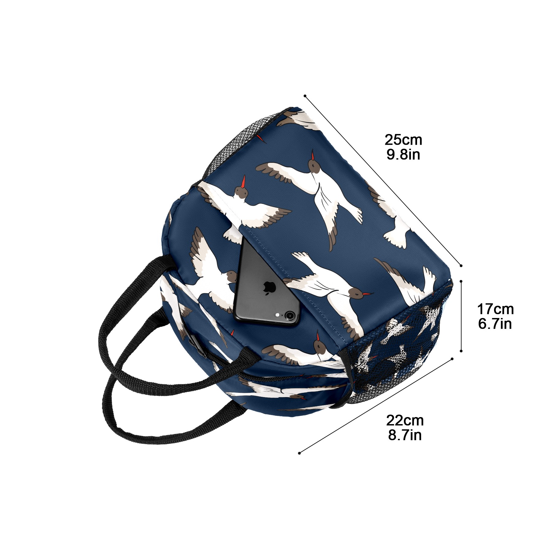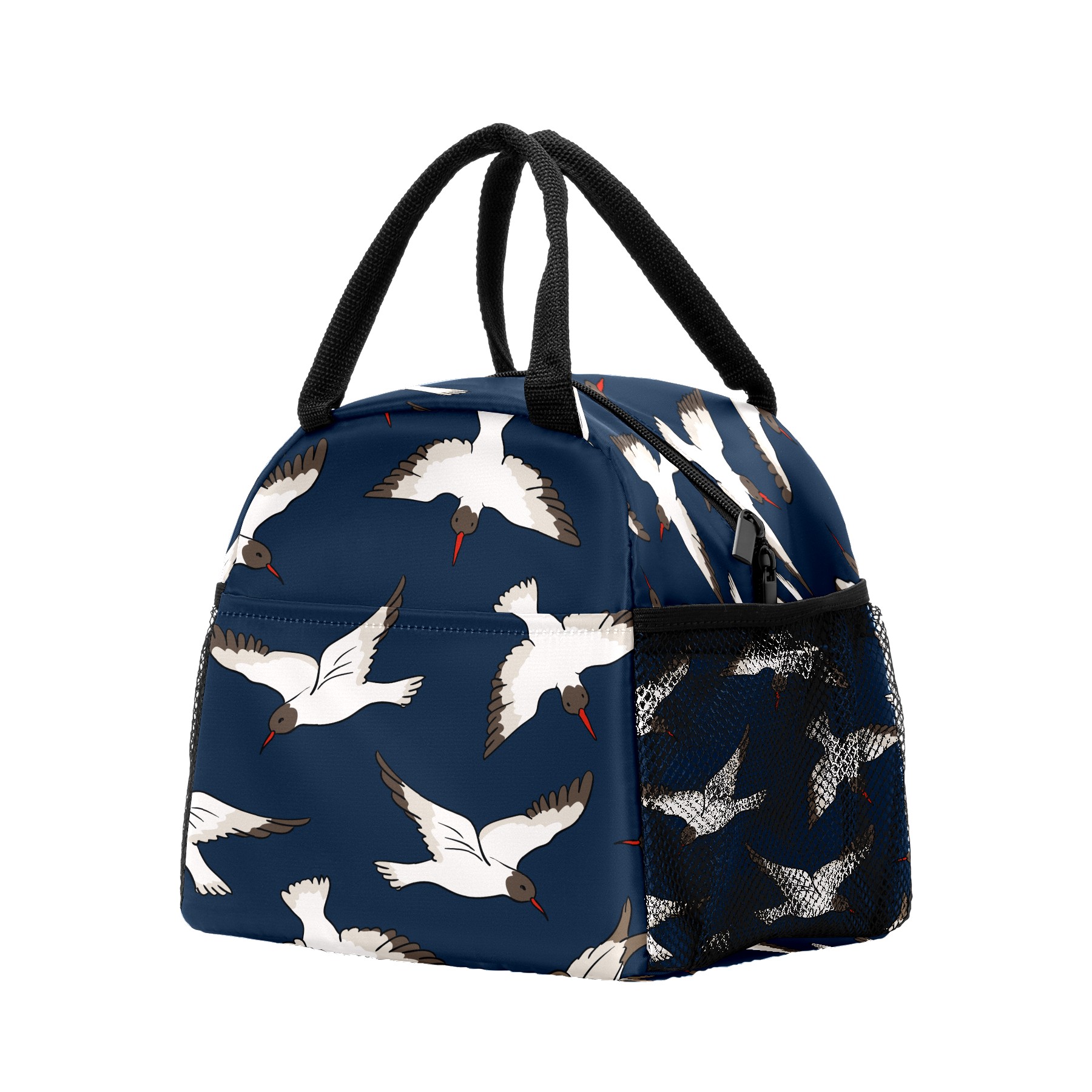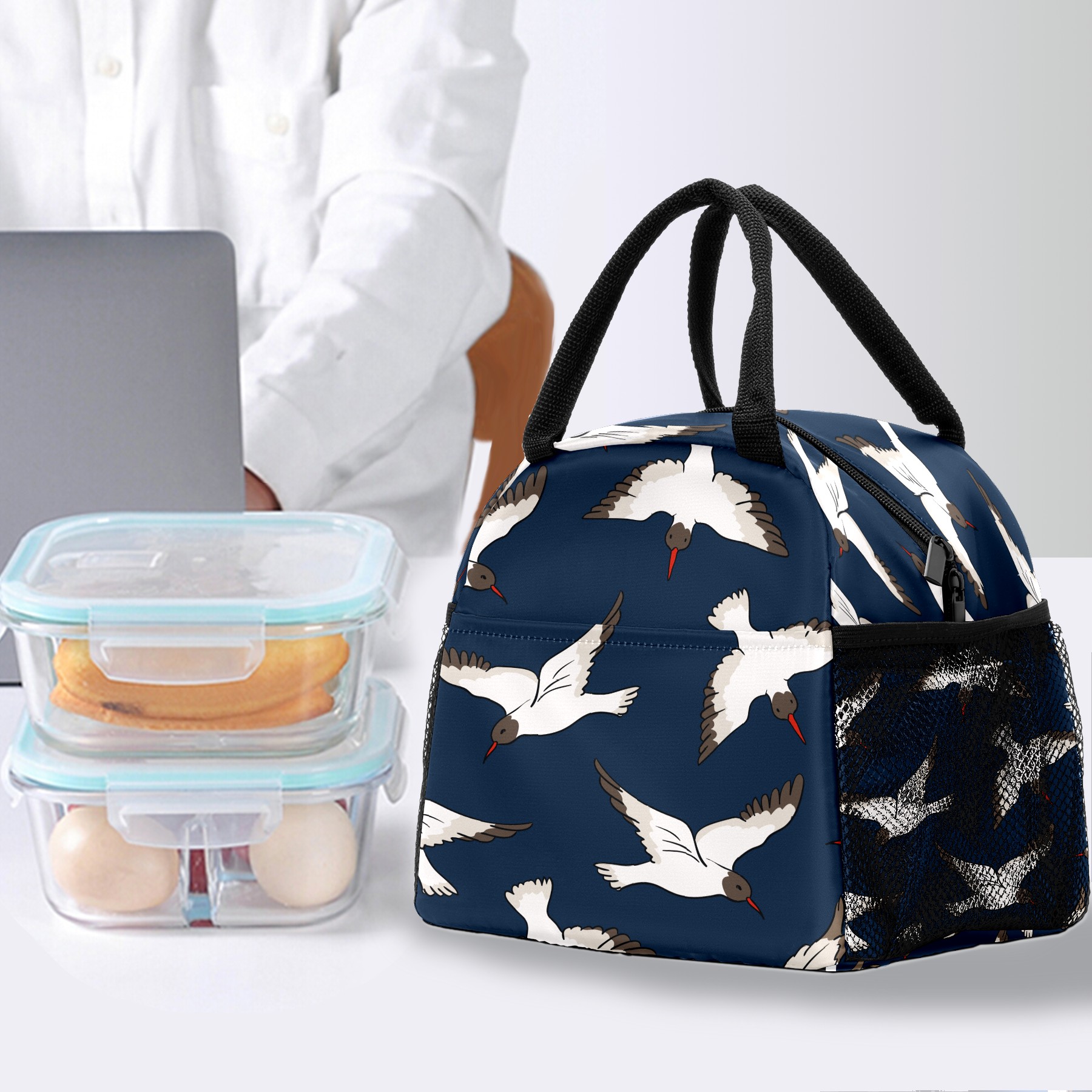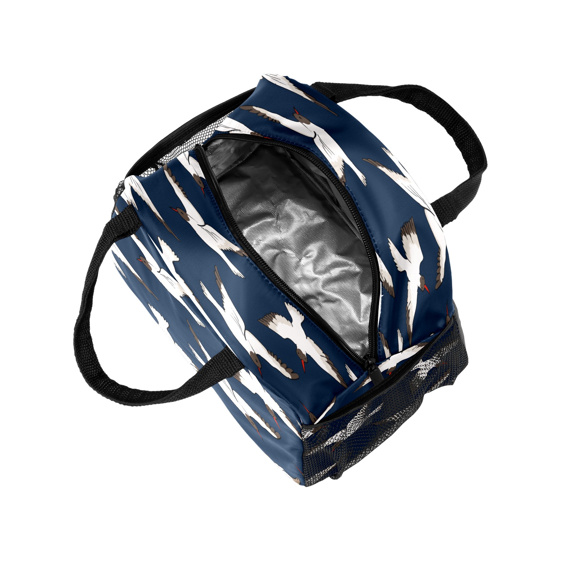 Lunch Bag for Women Men, Blue Japanse Crane Pattern Insulated Reusable Lunch Box Thermal Cooler Tote Bag for Work Picnic Hiking Travel Beach