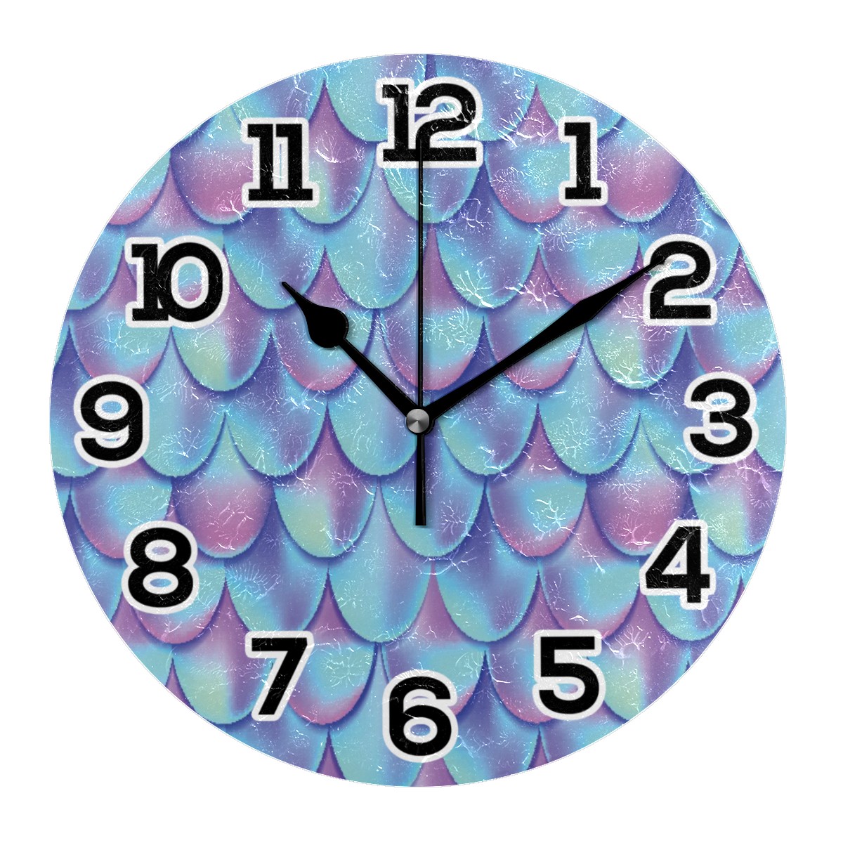 Colorful Mermaid Scale Clock Wall Decor Acrylic Decorative Round Battery Operated Wall Clocks for Home Bedroom Living Room Decor Silent Non Ticking
