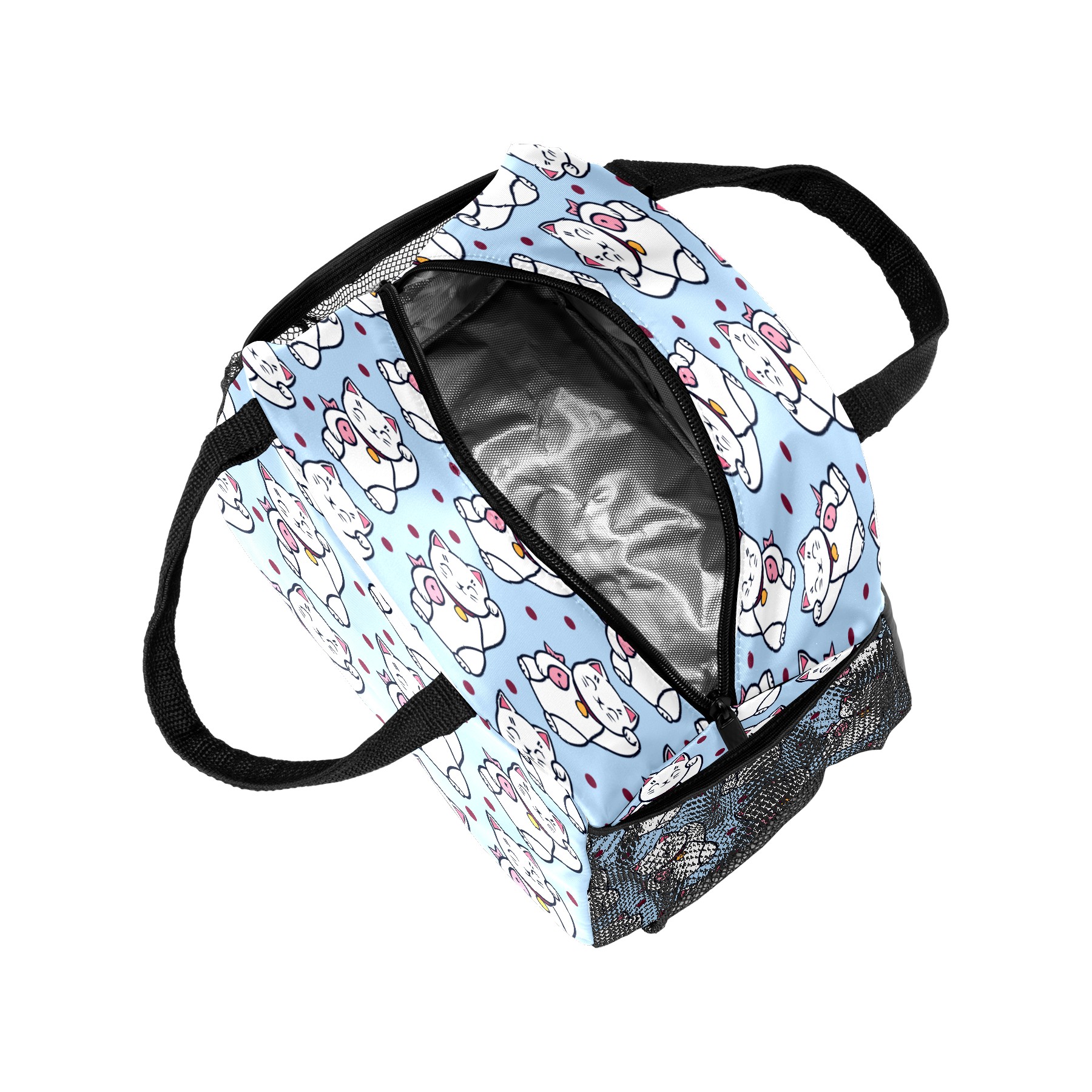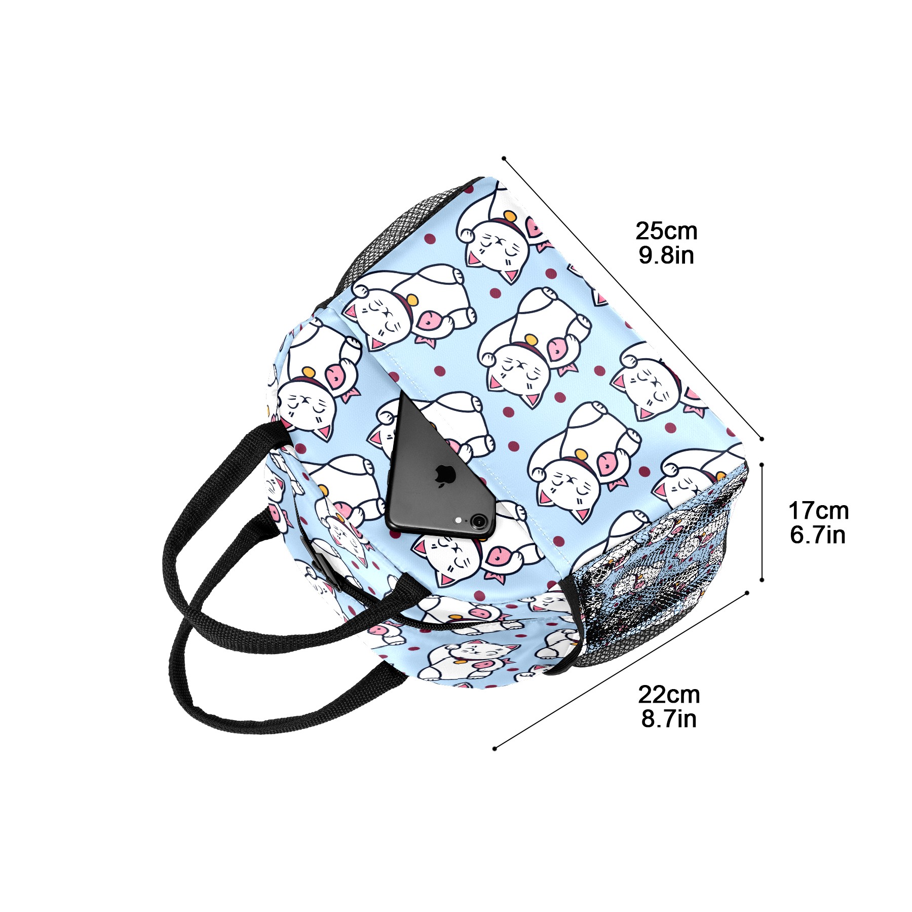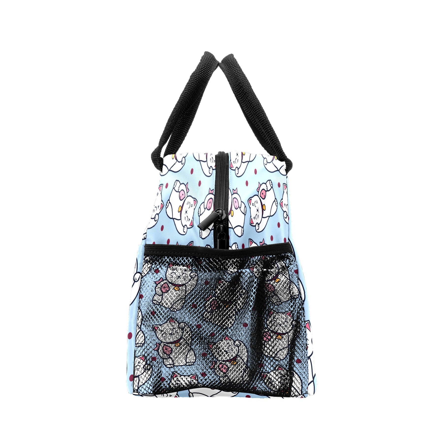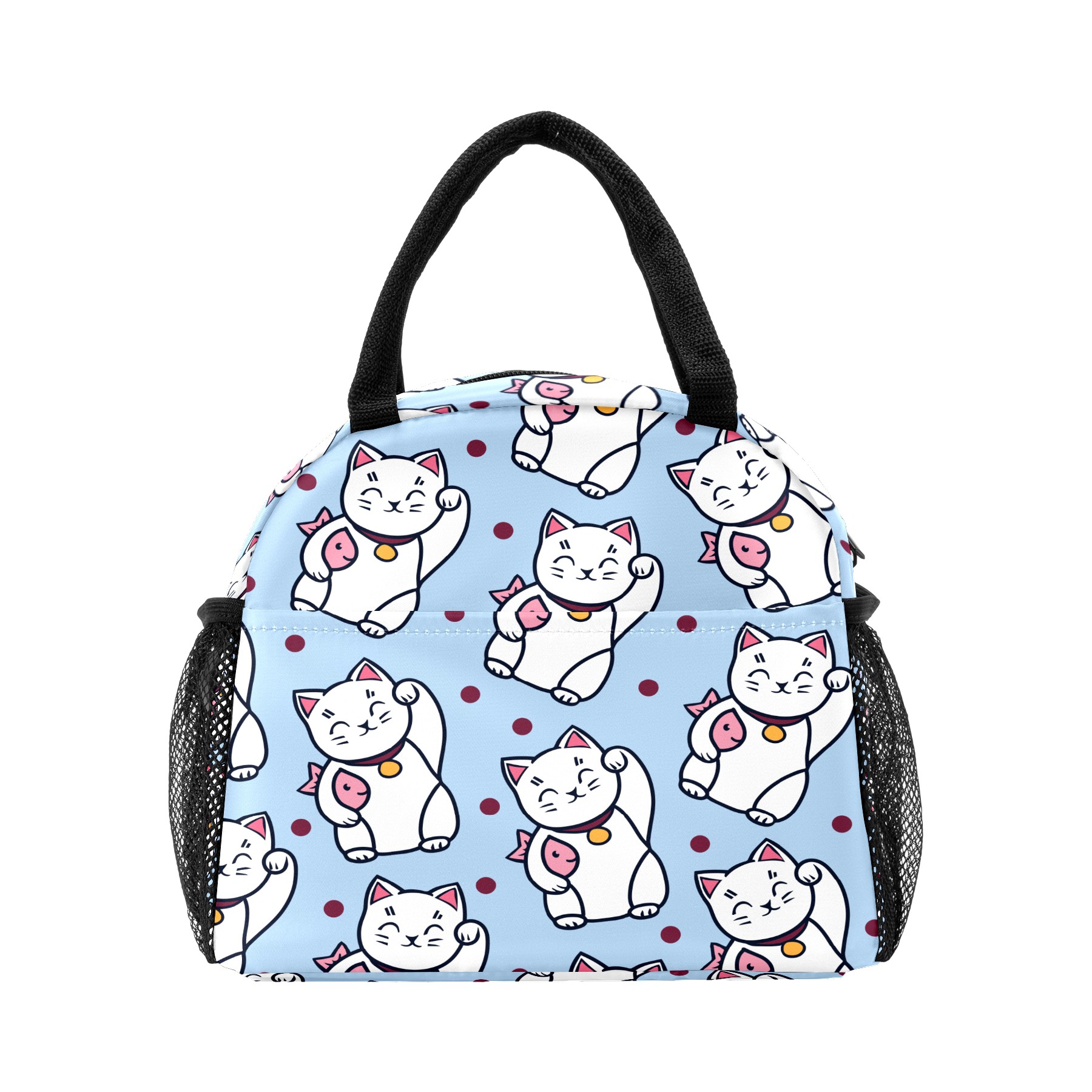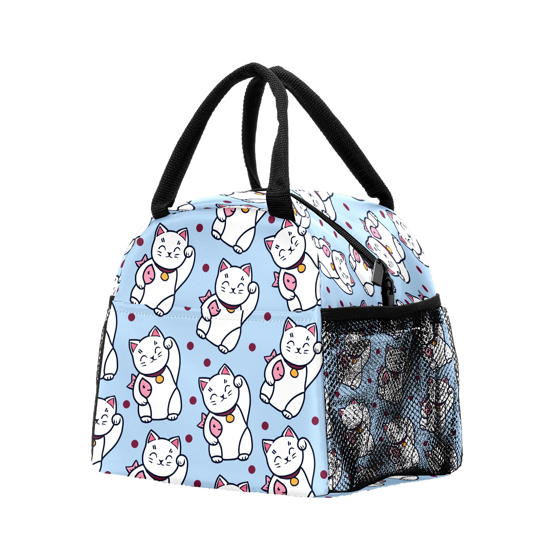 Lunch Bag for Women Men, Cartoon Japanese Lucky Cats Fish Pattern Insulated Reusable Lunch Box Thermal Cooler Tote Bag for Work Picnic Hiking Travel Beach