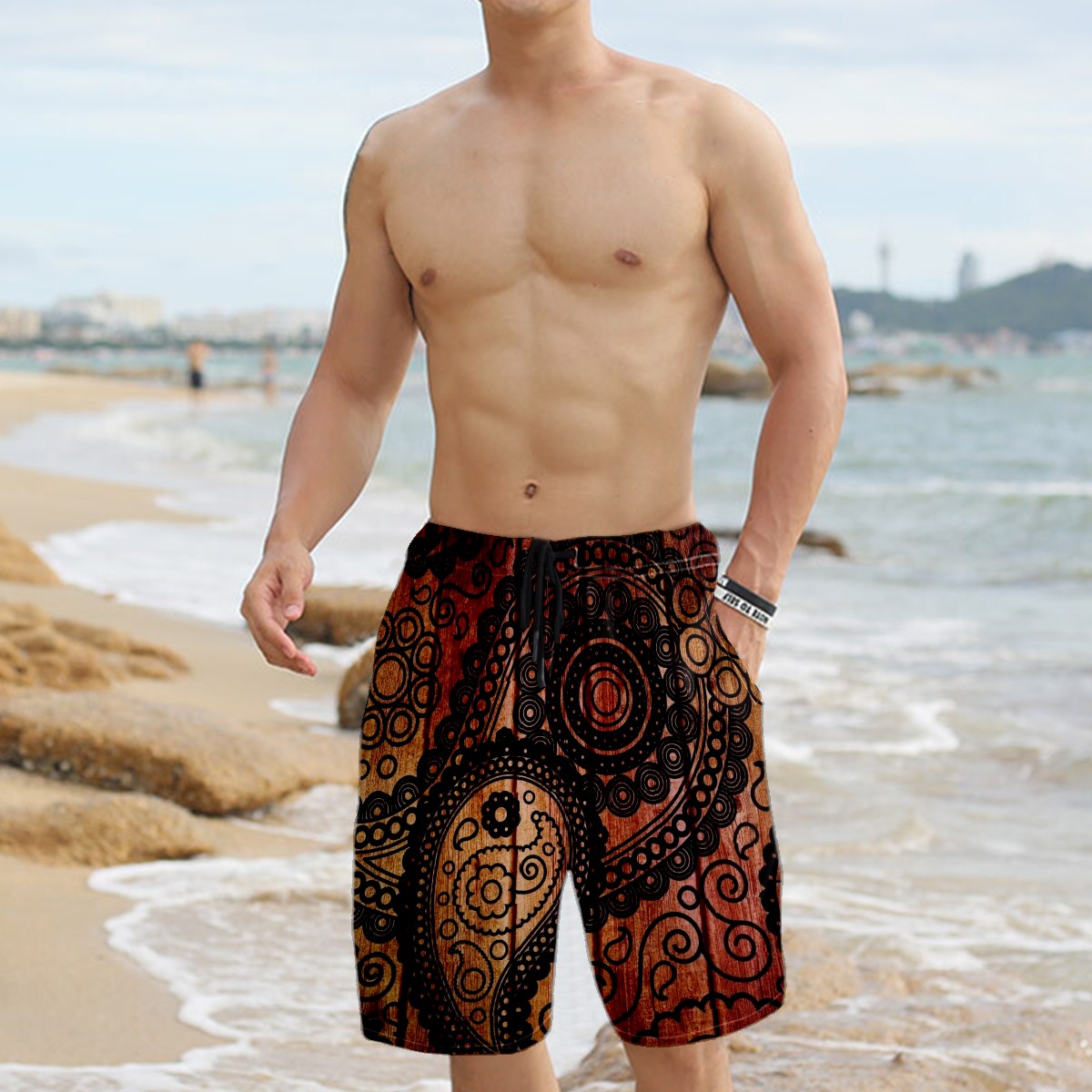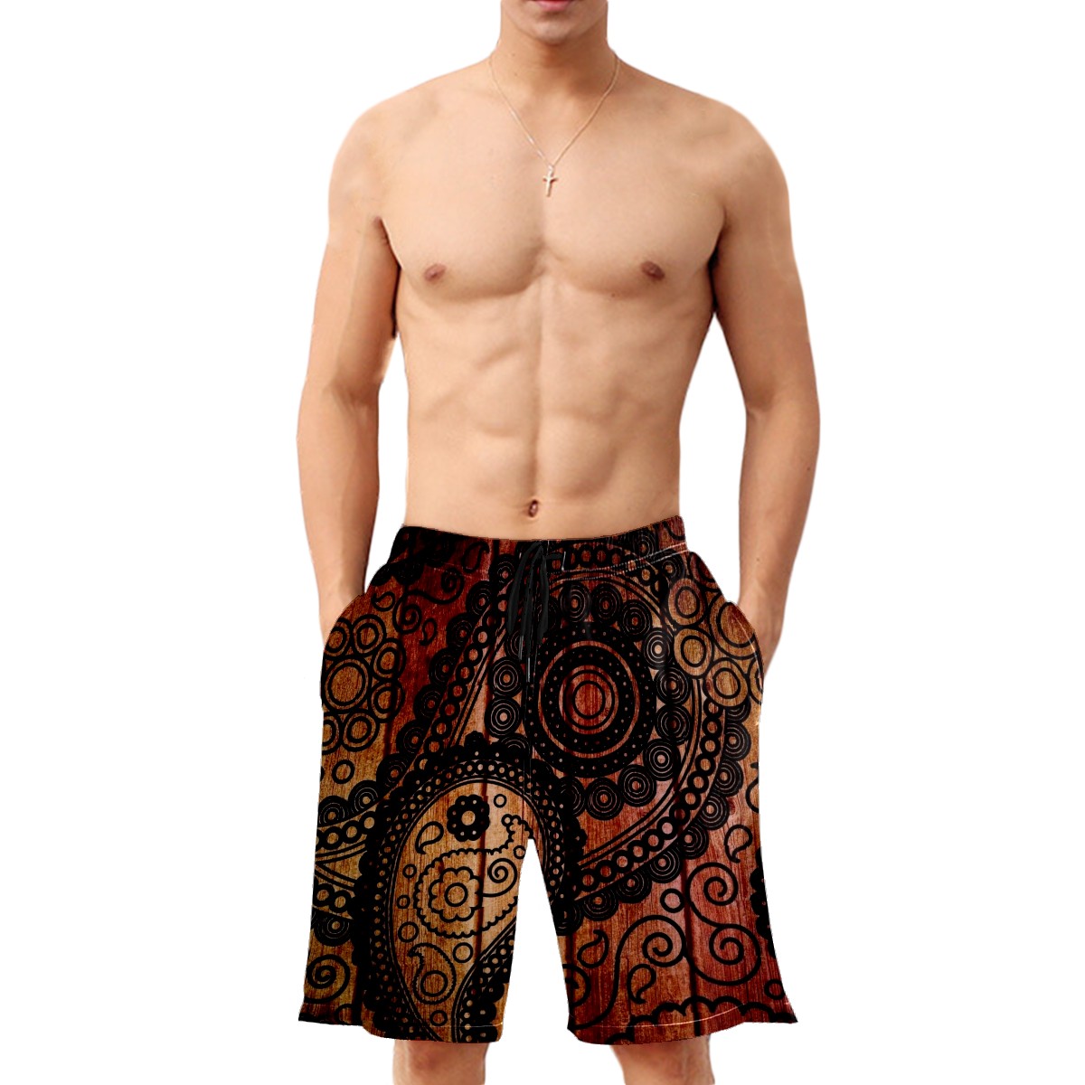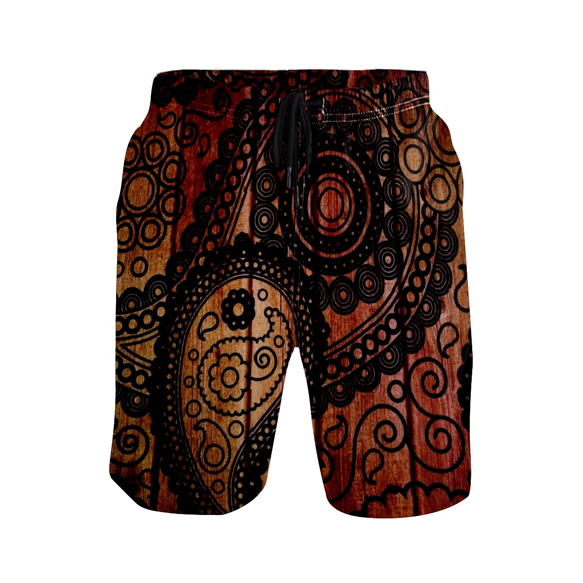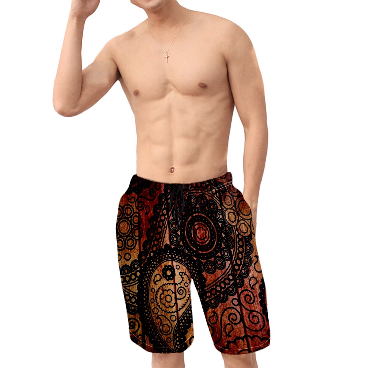 Men's Swim Trunks Bohemian Wooden Beachwear Board Shorts Quick Dry Beach Shorts S