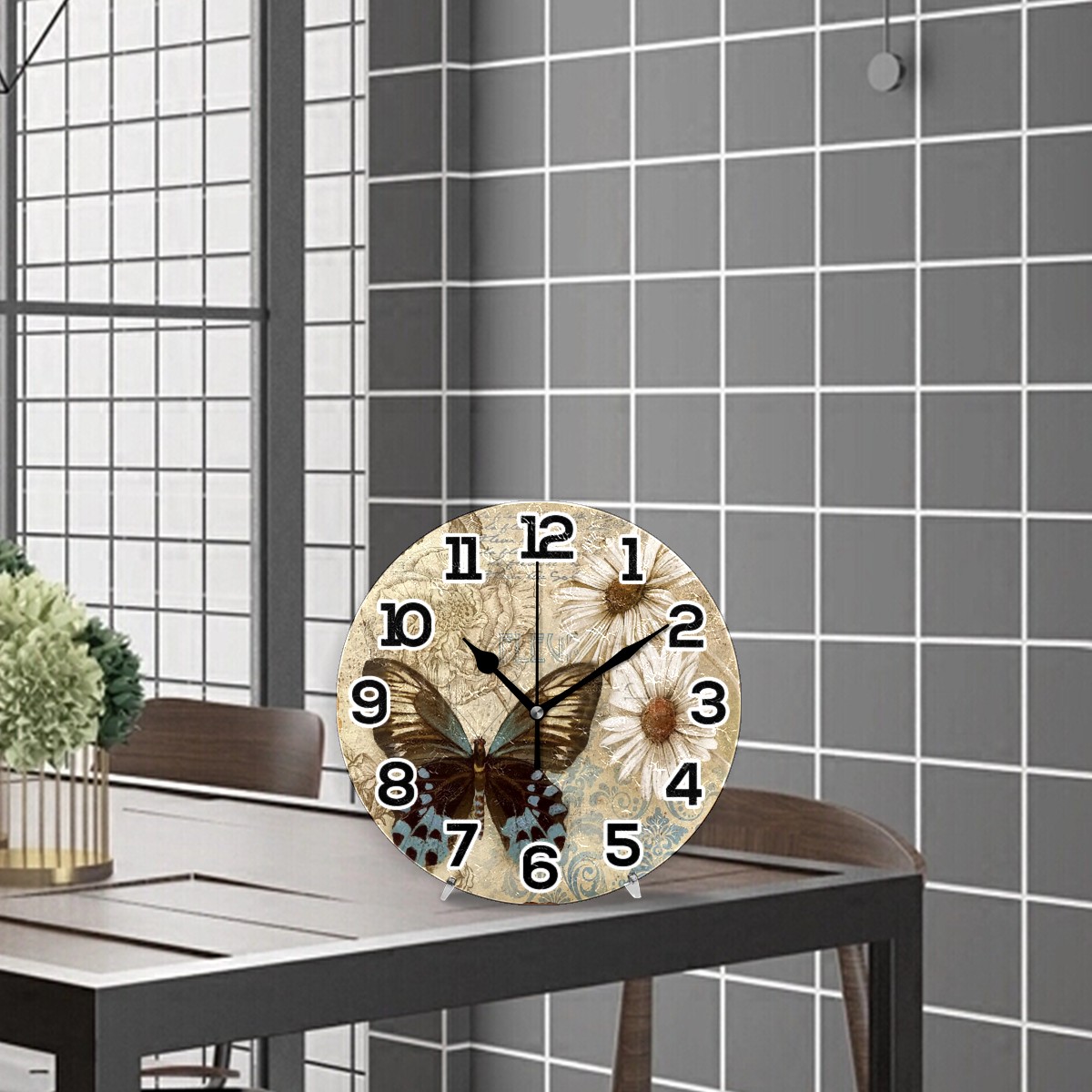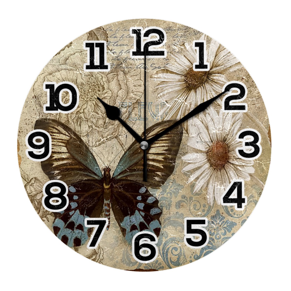 Vintage Butterfly Daisy Floral Clock Wall Decor Acrylic Decorative Round Battery Operated Wall Clocks for Home Bedroom Living Room Decor Silent Non Ticking