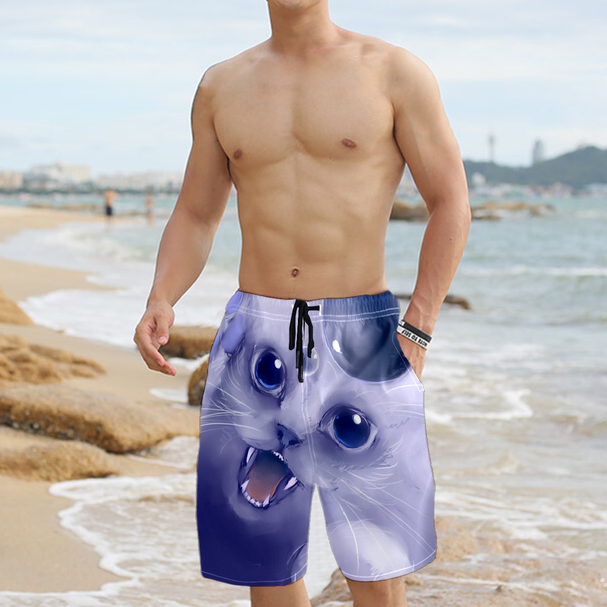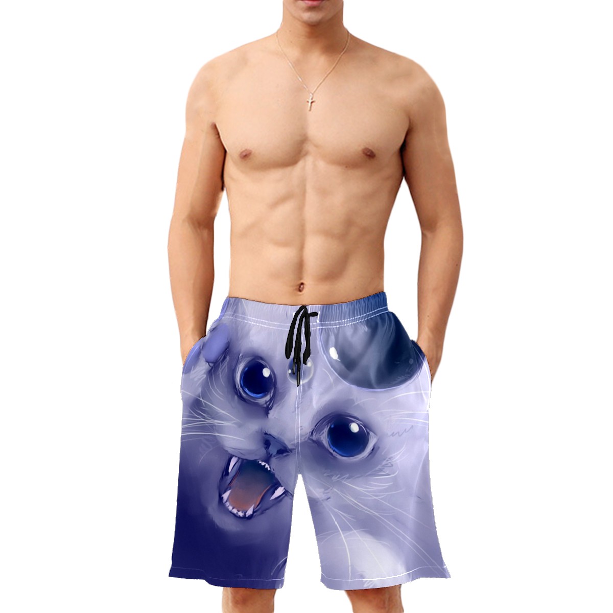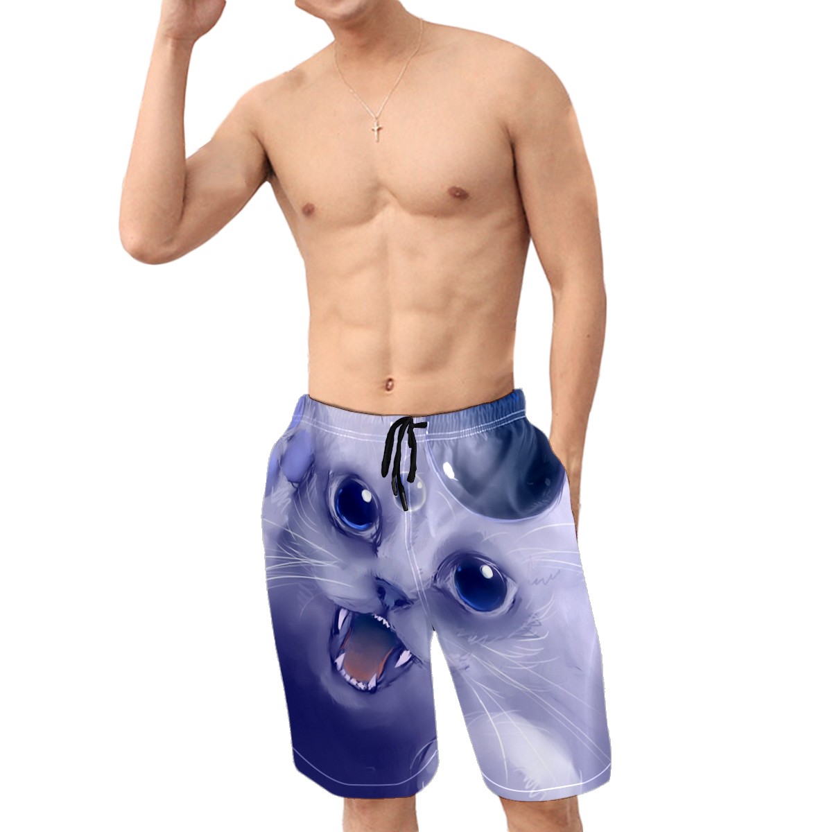 Men's Swim Trunks Cat Chasing Bubbles Beachwear Board Shorts Quick Dry Beach Shorts S