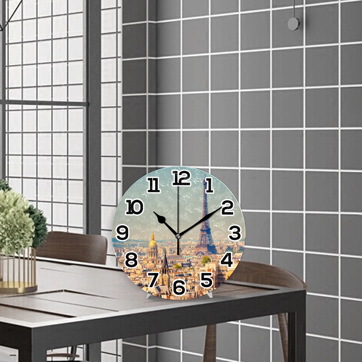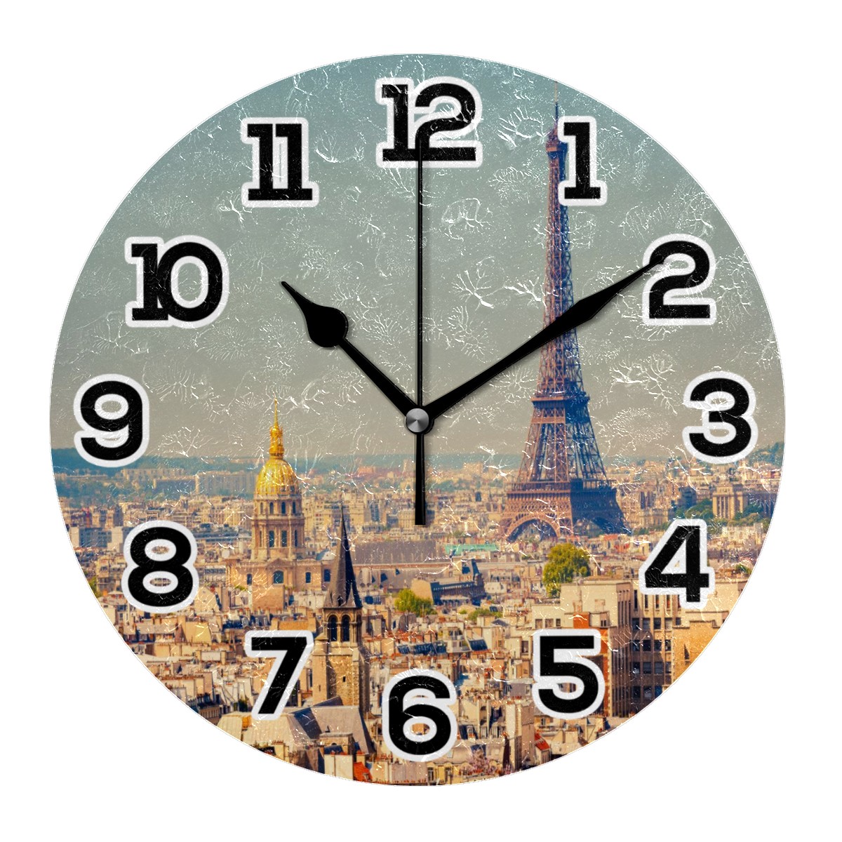 Paris Tour Eiffel Clock Wall Decor Acrylic Decorative Round Battery Operated Wall Clocks for Home Bedroom Living Room Decor Silent Non Ticking