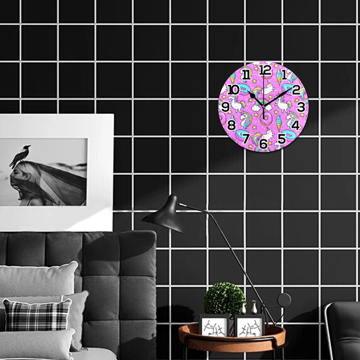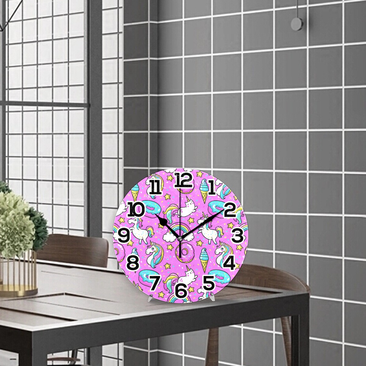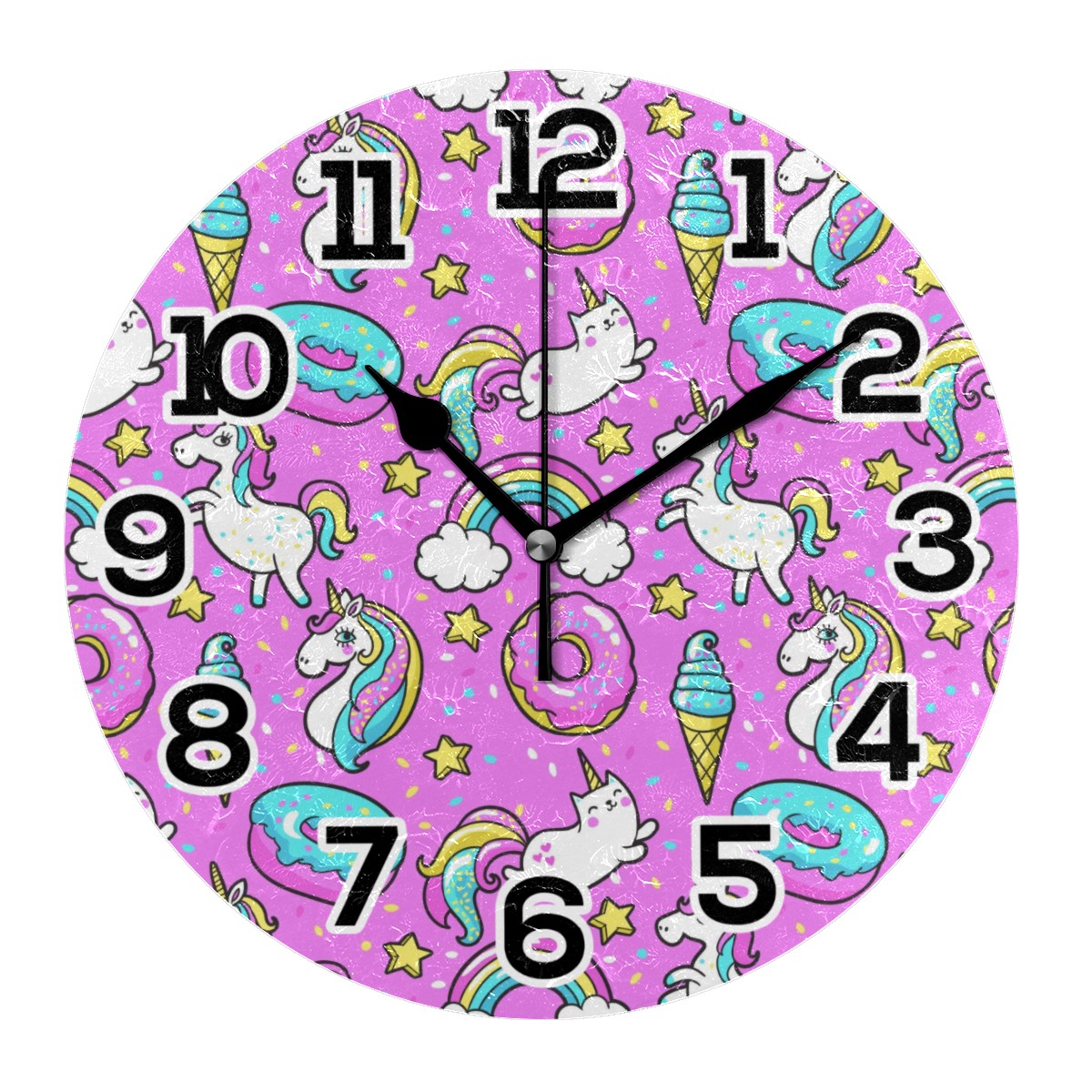 Pink Unicorn Rainbow Donuts Pattern Clock Wall Decor Acrylic Decorative Round Battery Operated Wall Clocks for Home Bedroom Living Room Decor Silent Non Ticking