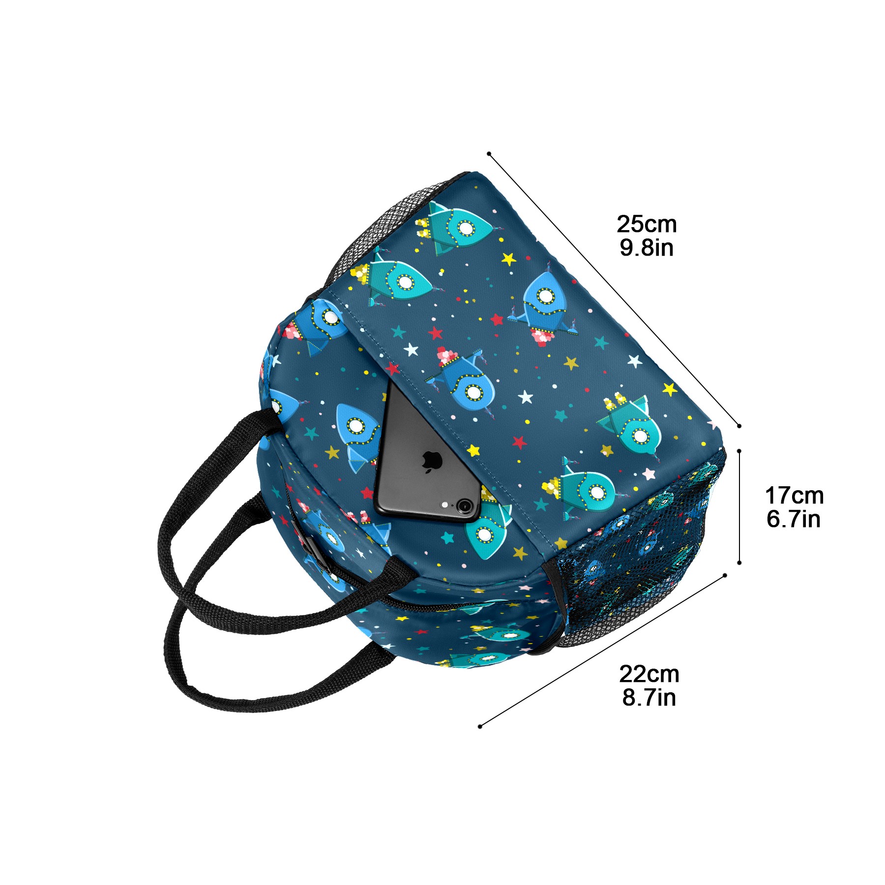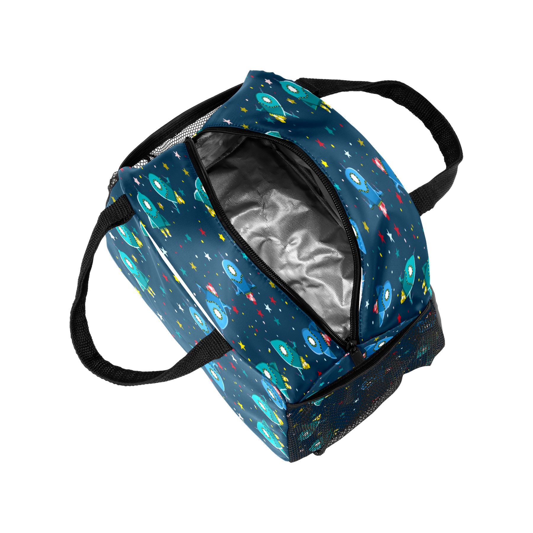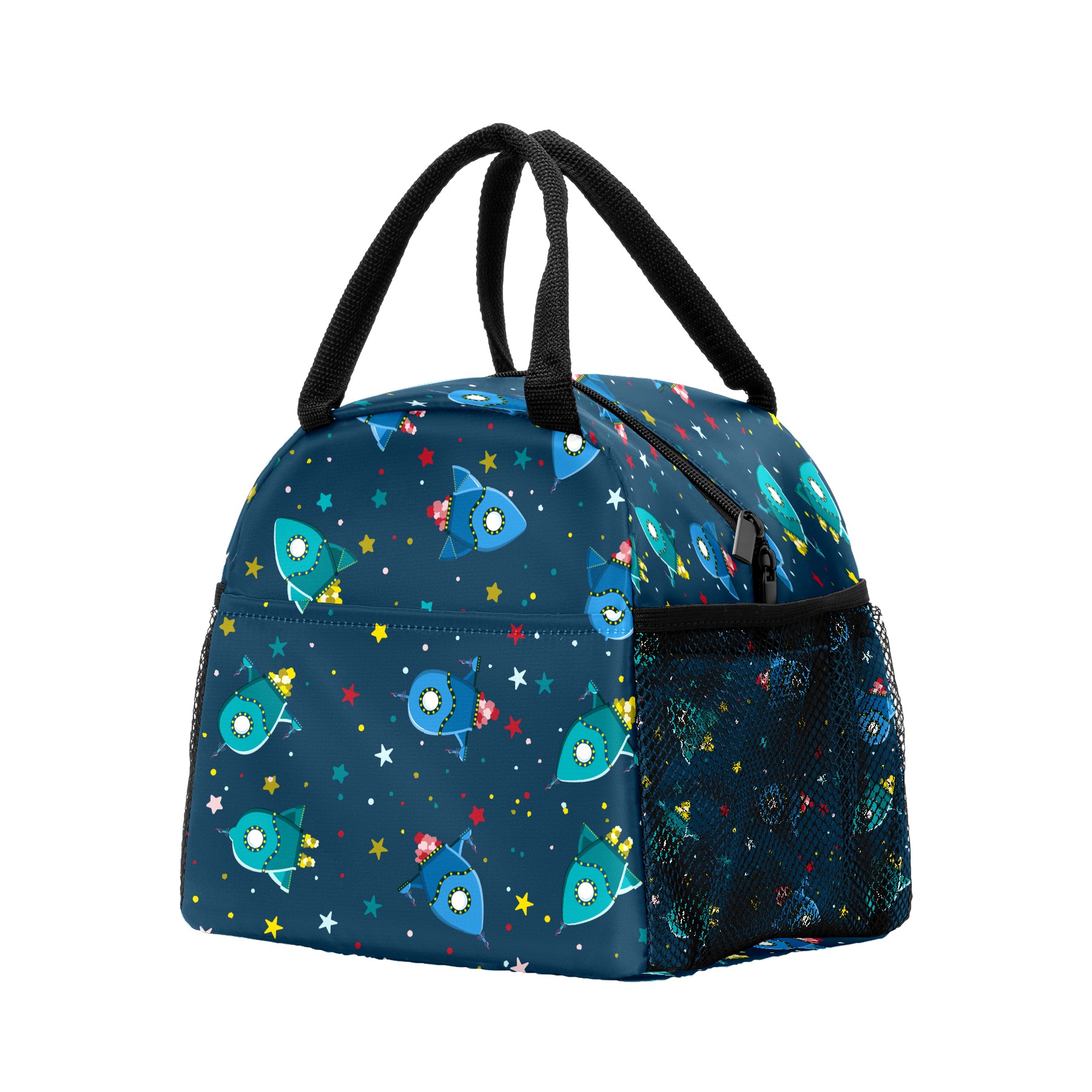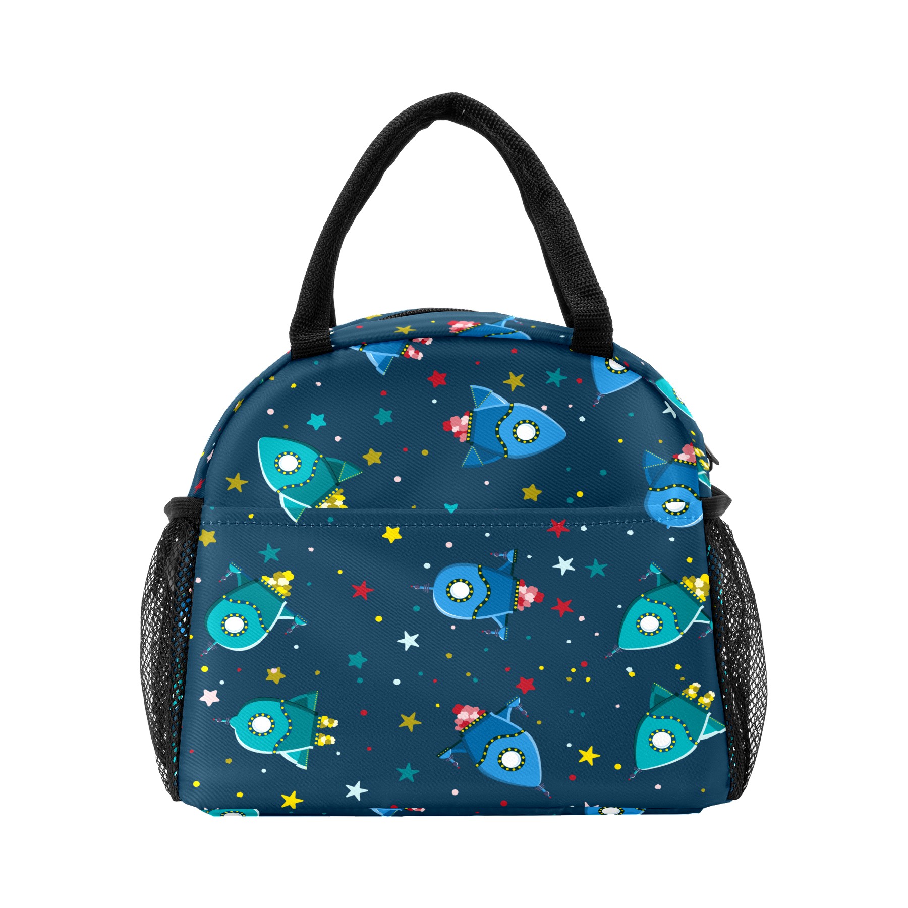 Lunch Bag for Women Men, Outer Spaceship Rockets Stars Pattern Insulated Reusable Lunch Box Thermal Cooler Tote Bag for Work Picnic Hiking Travel Beach