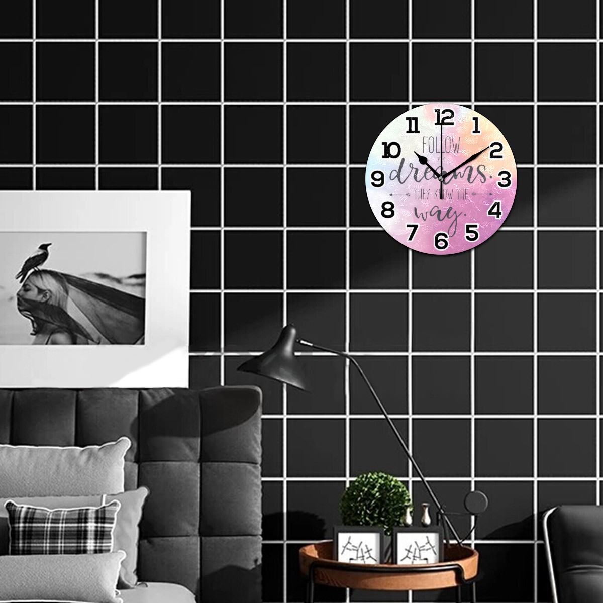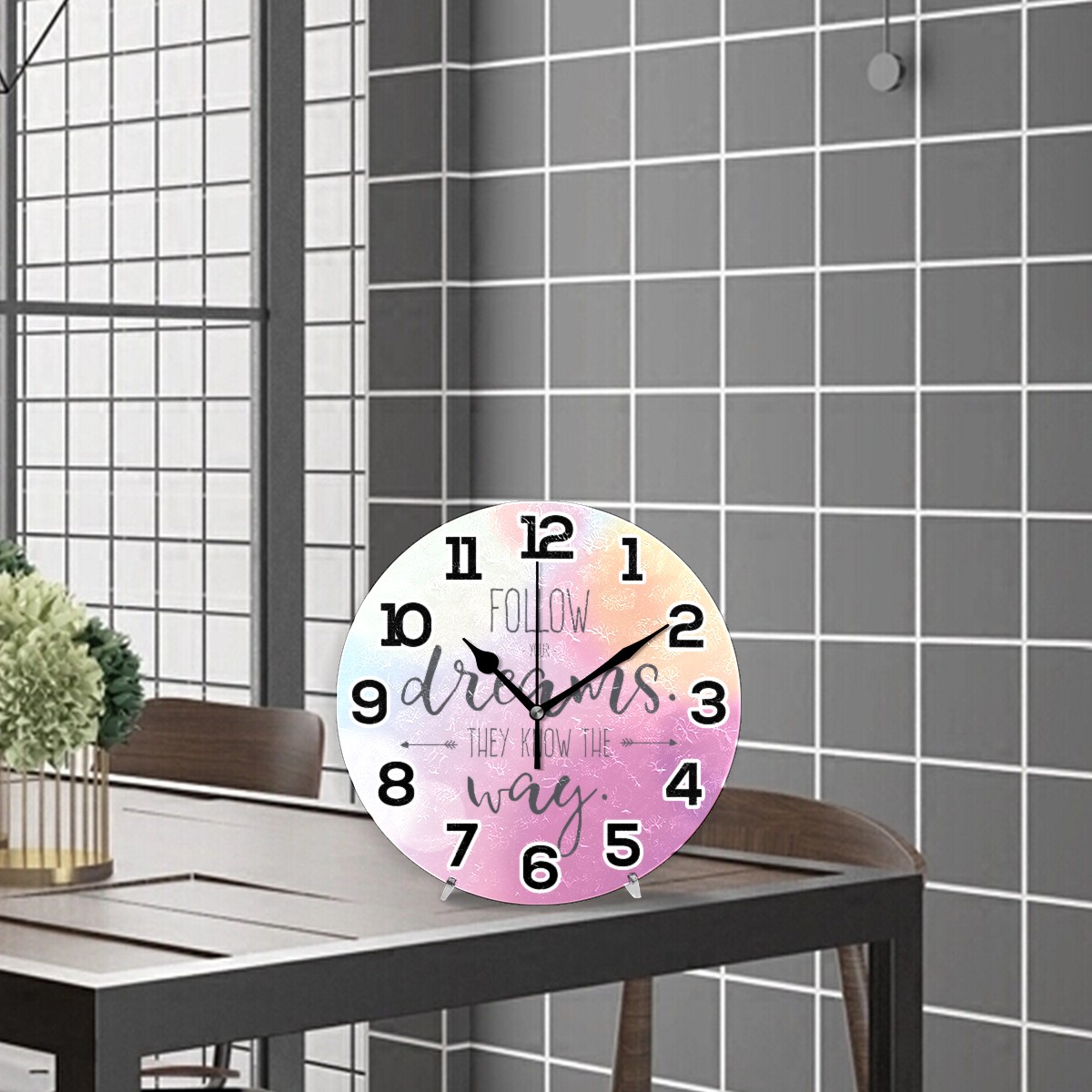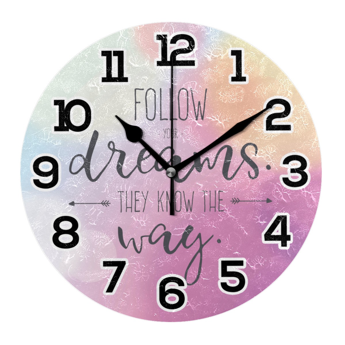 Follow Your Dream Clock Wall Decor Acrylic Decorative Round Battery Operated Wall Clocks for Home Bedroom Living Room Decor Silent Non Ticking