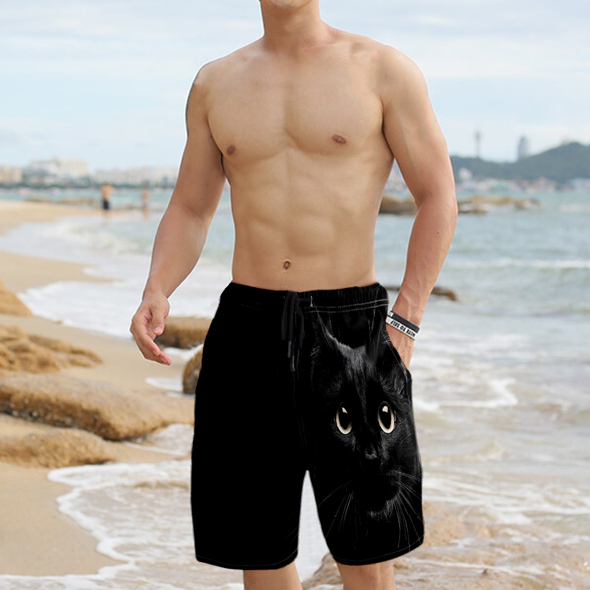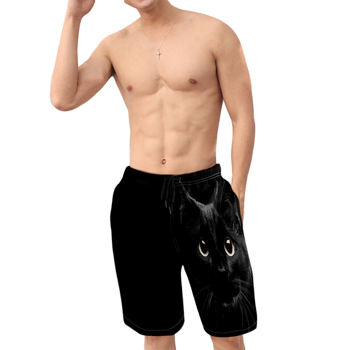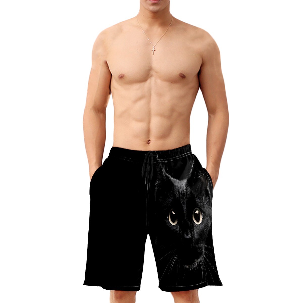 Men's Swim Trunks Black Cat Beachwear Board Shorts Quick Dry Beach Shorts S