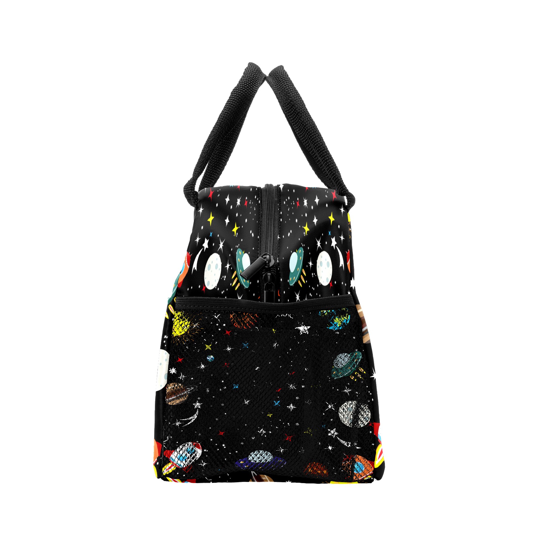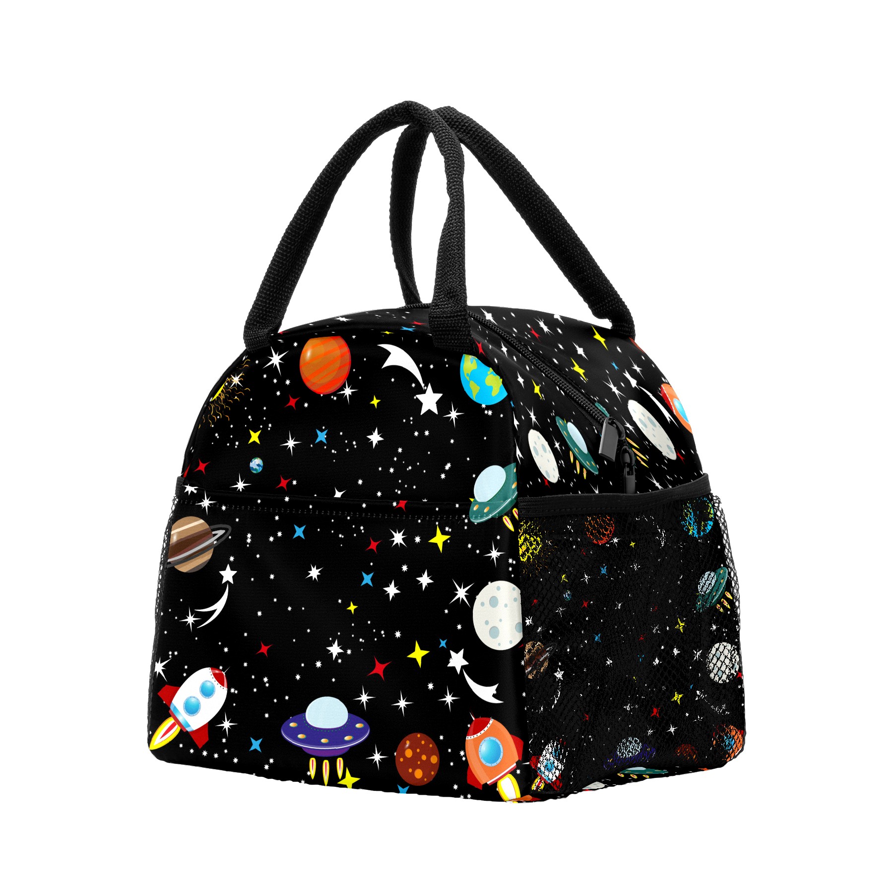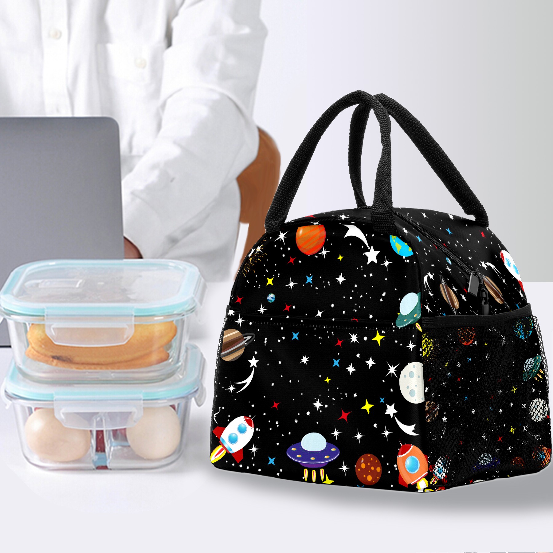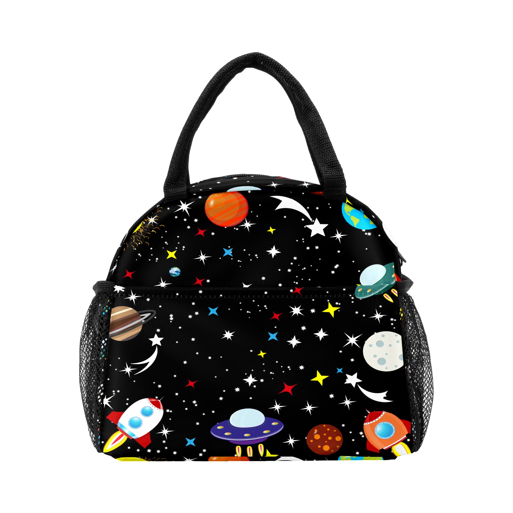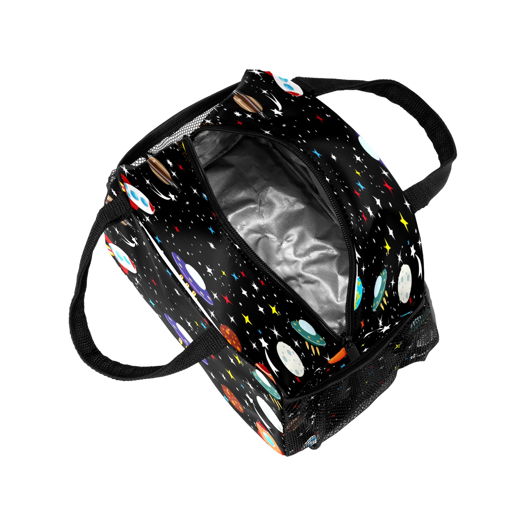 Lunch Bag for Women Men, Outer Spaceship Rocket Planet Stars Pattern Insulated Reusable Lunch Box Thermal Cooler Tote Bag for Work Picnic Hiking Travel Beach