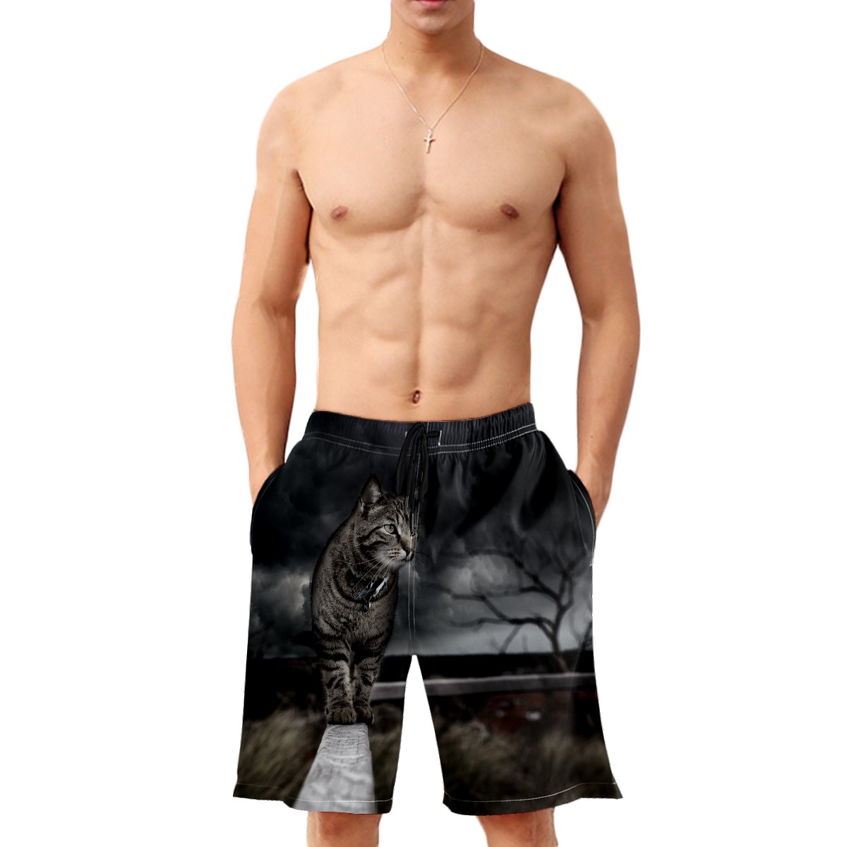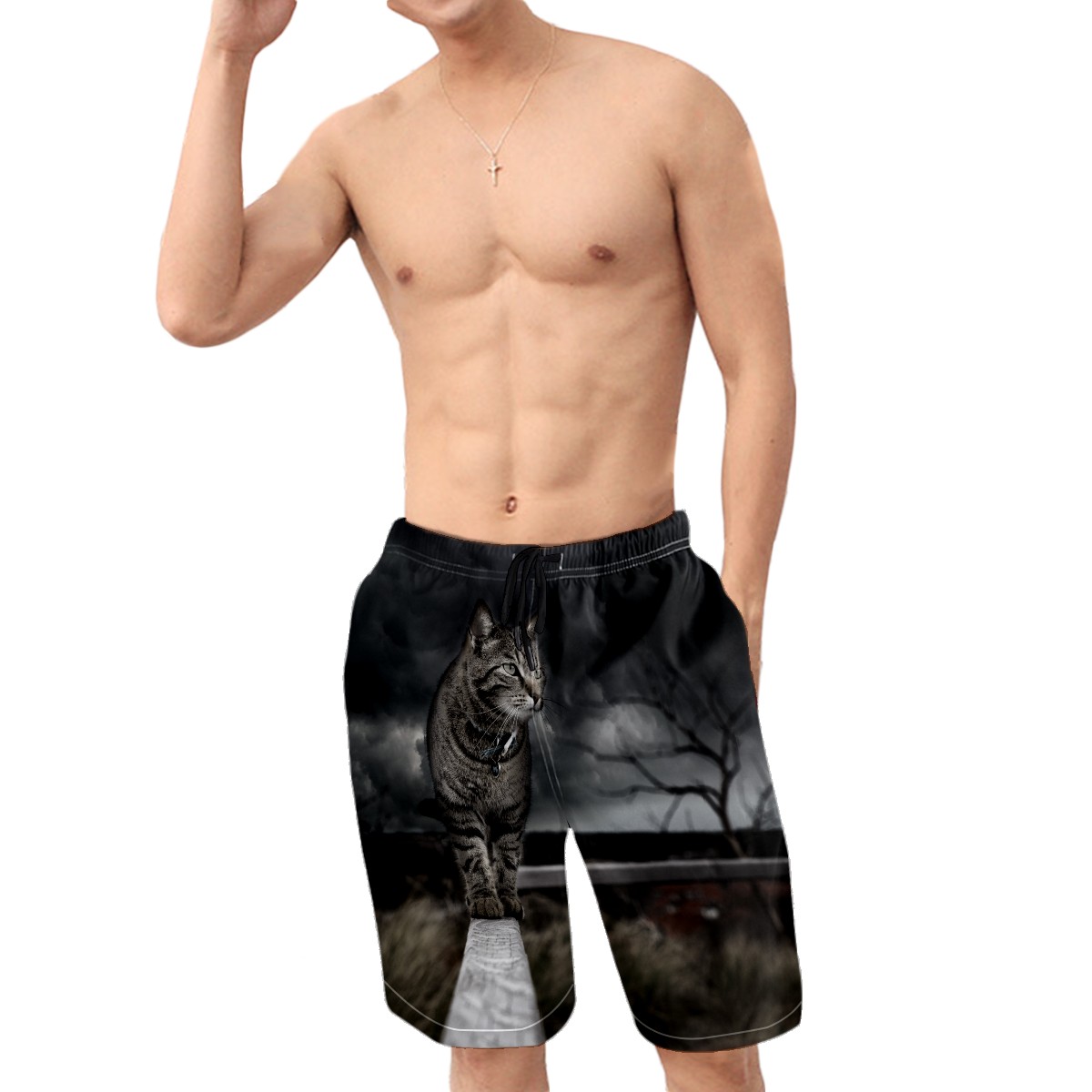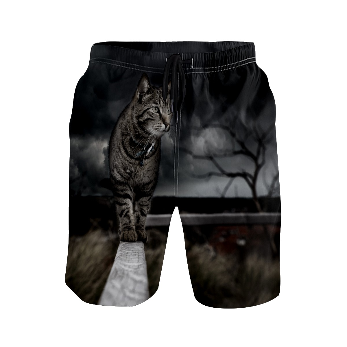 Men's Swim Trunks Black Cat Storm Beachwear Board Shorts Quick Dry Beach Shorts S