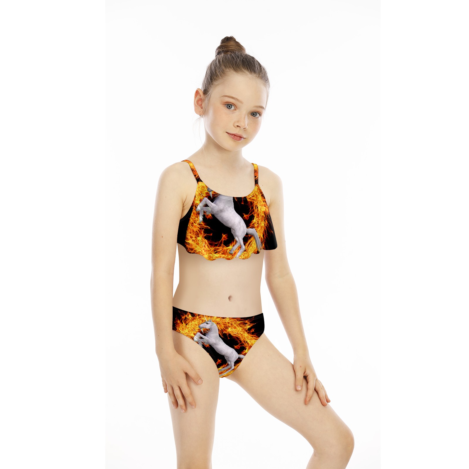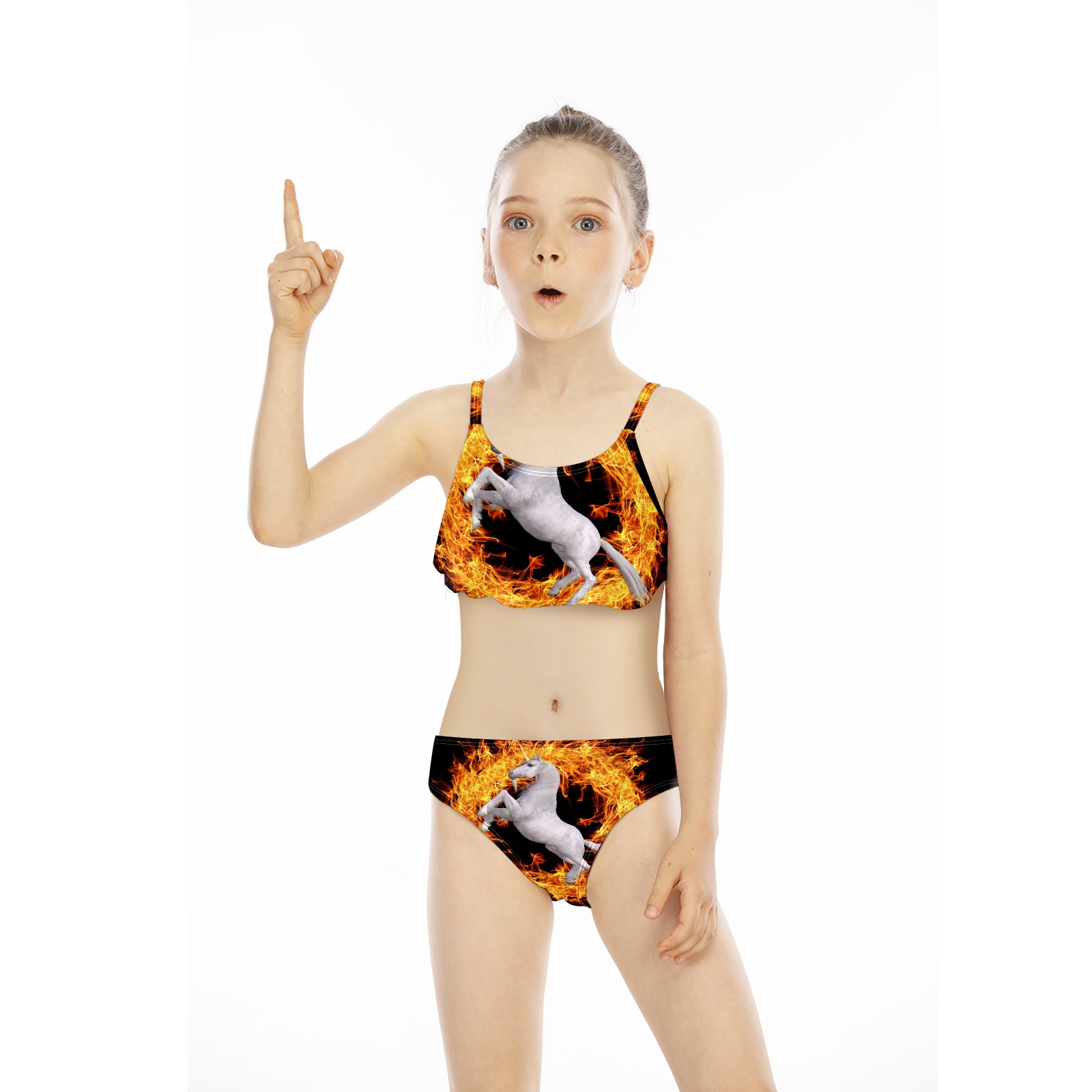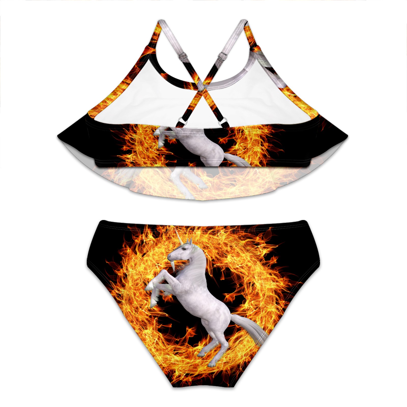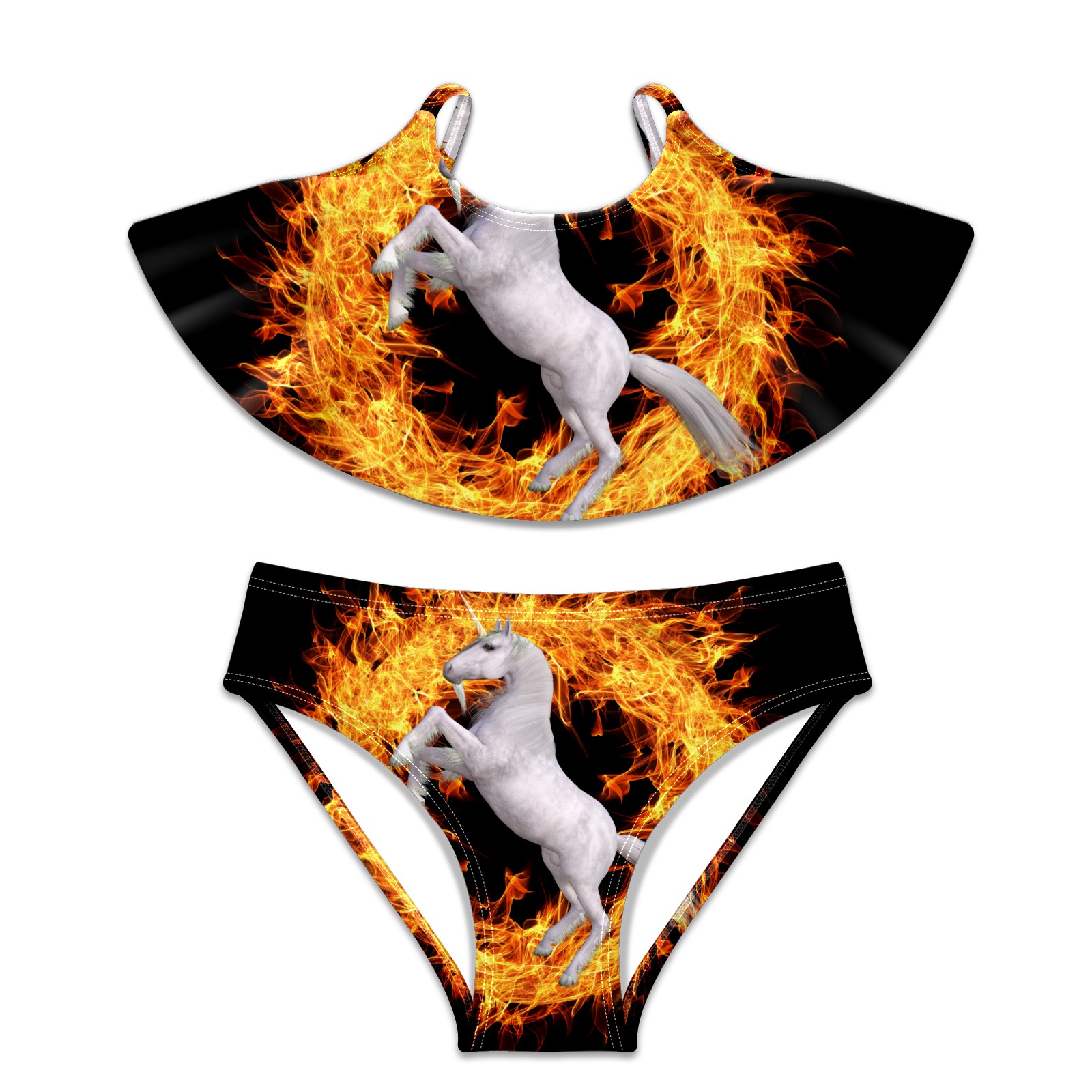 Swimsuits for Girls Two Pieces Bathing Suit Quick Dry Swimwear Fire Flame Burn Unicorn S