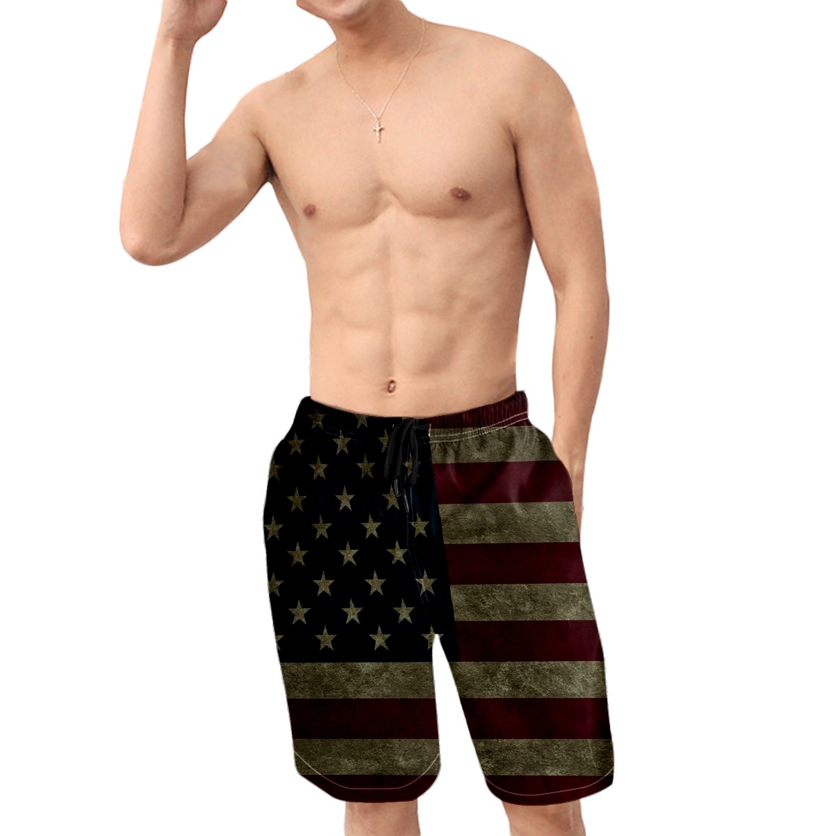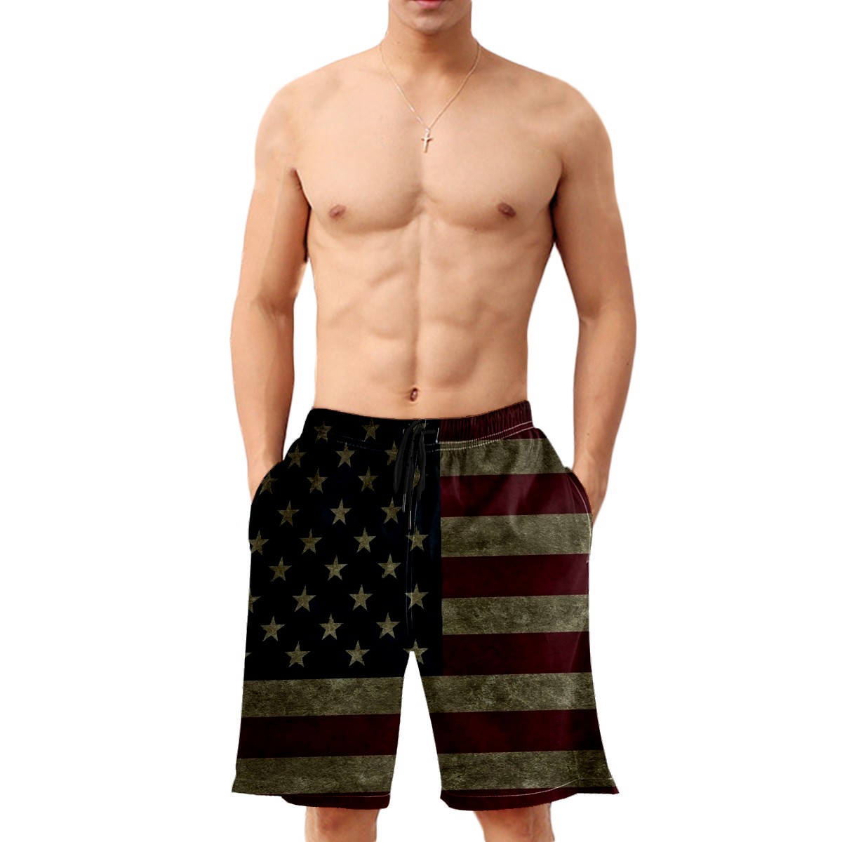 Men's Swim Trunks American Flag Beachwear Board Shorts Quick Dry Beach Shorts S