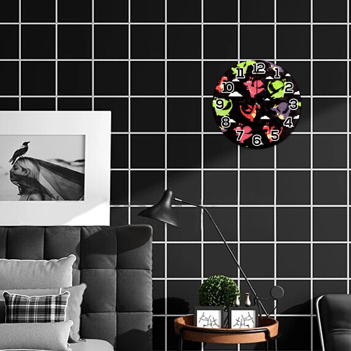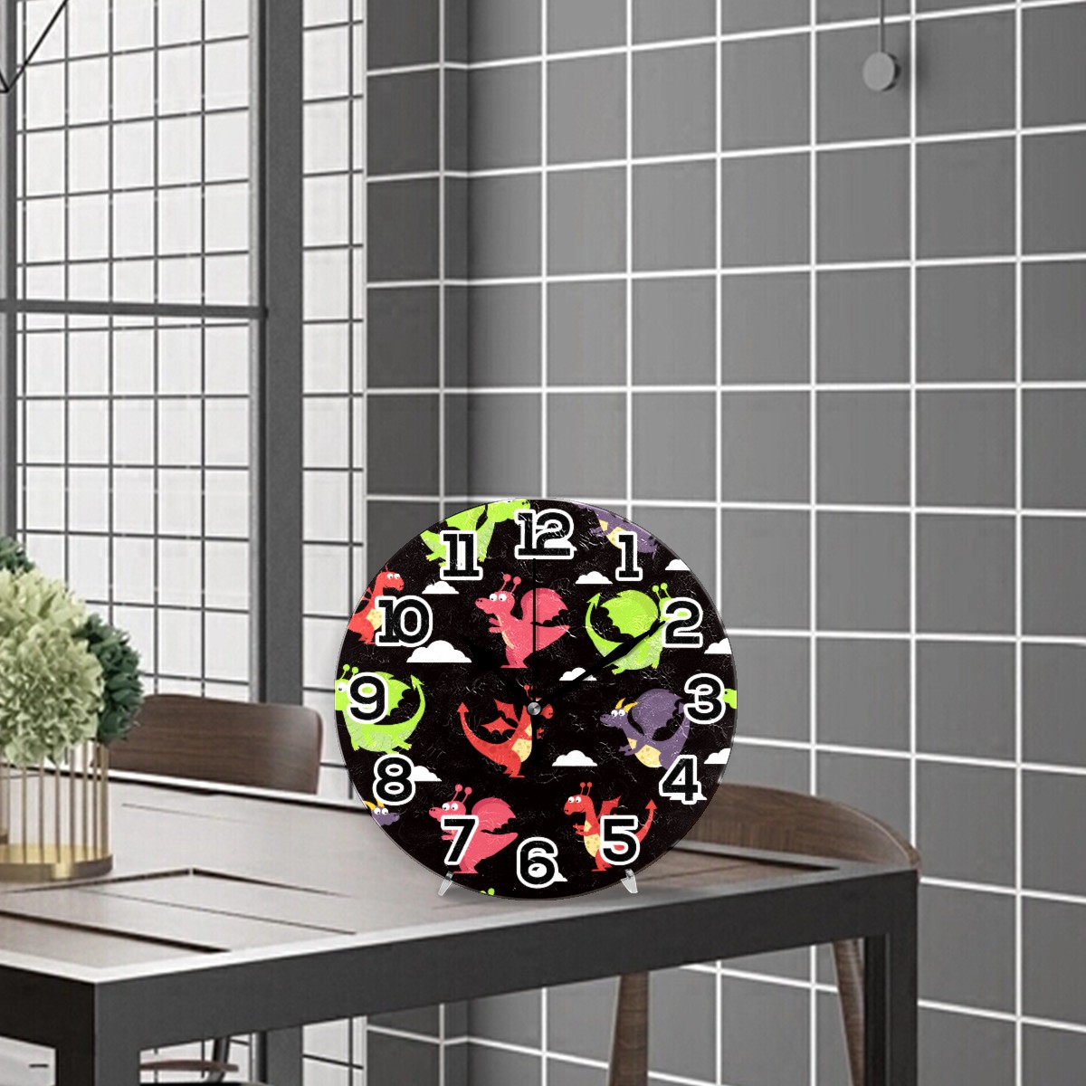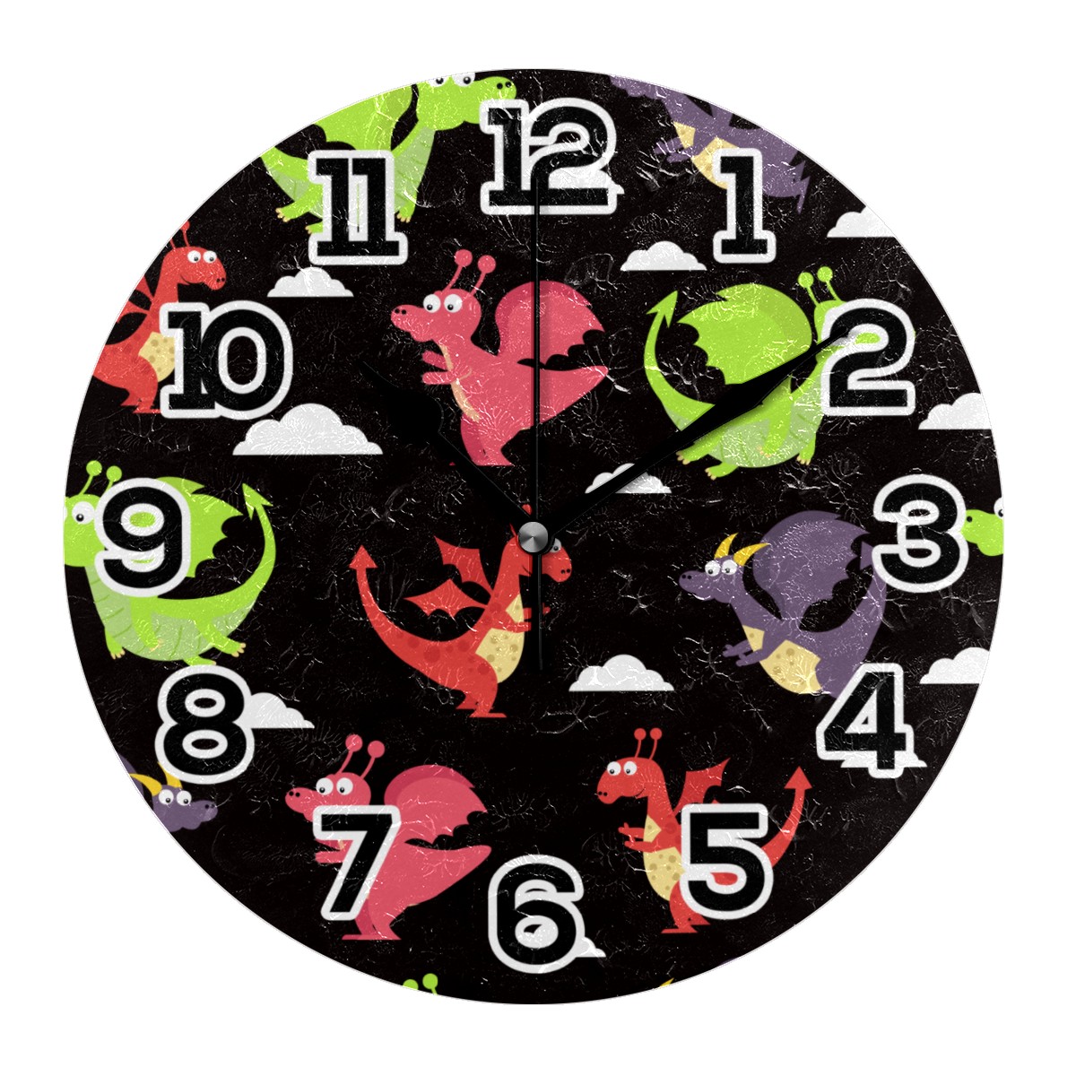 Western Dragon Dinosaur Clock Wall Decor Acrylic Decorative Round Battery Operated Wall Clocks for Home Bedroom Living Room Decor Silent Non Ticking