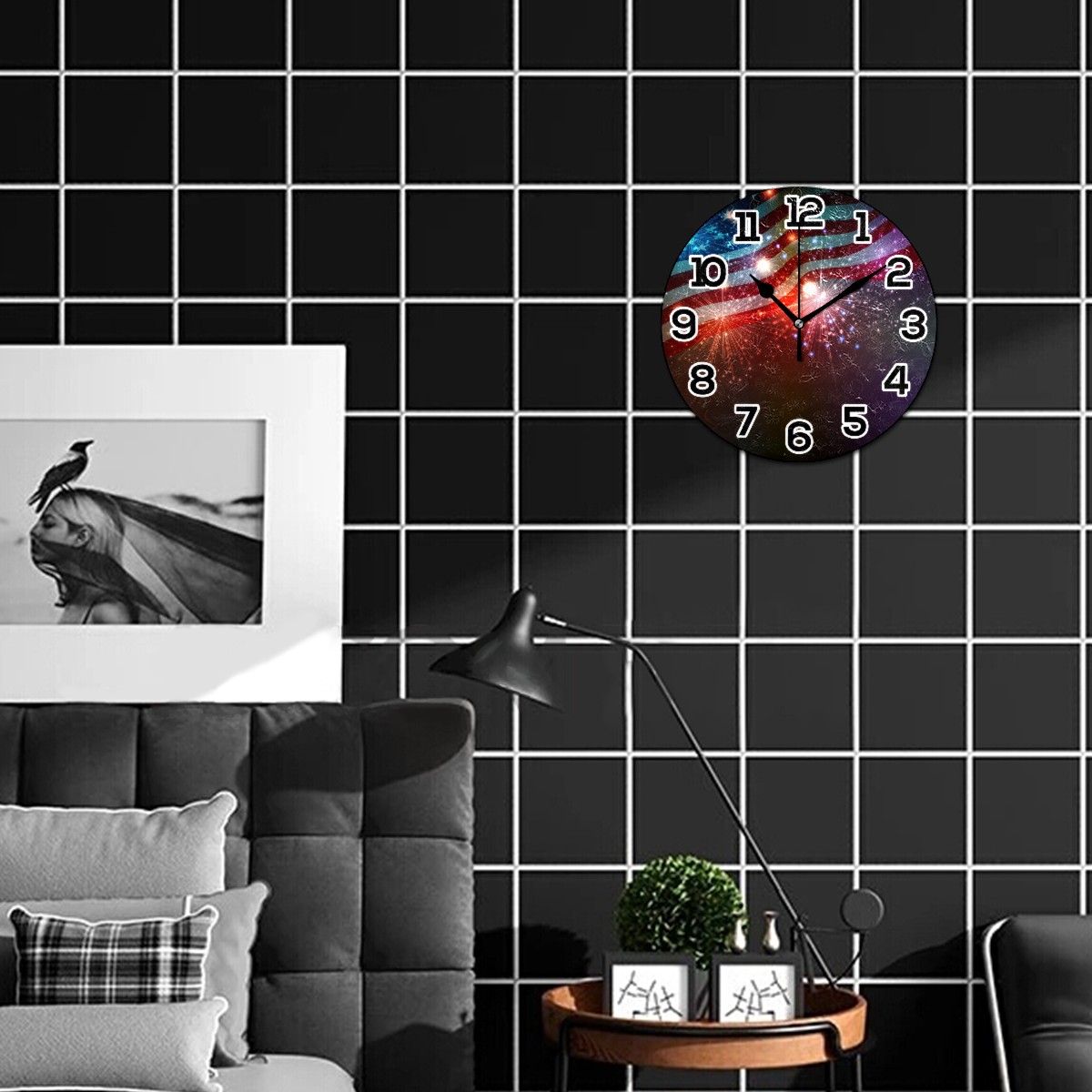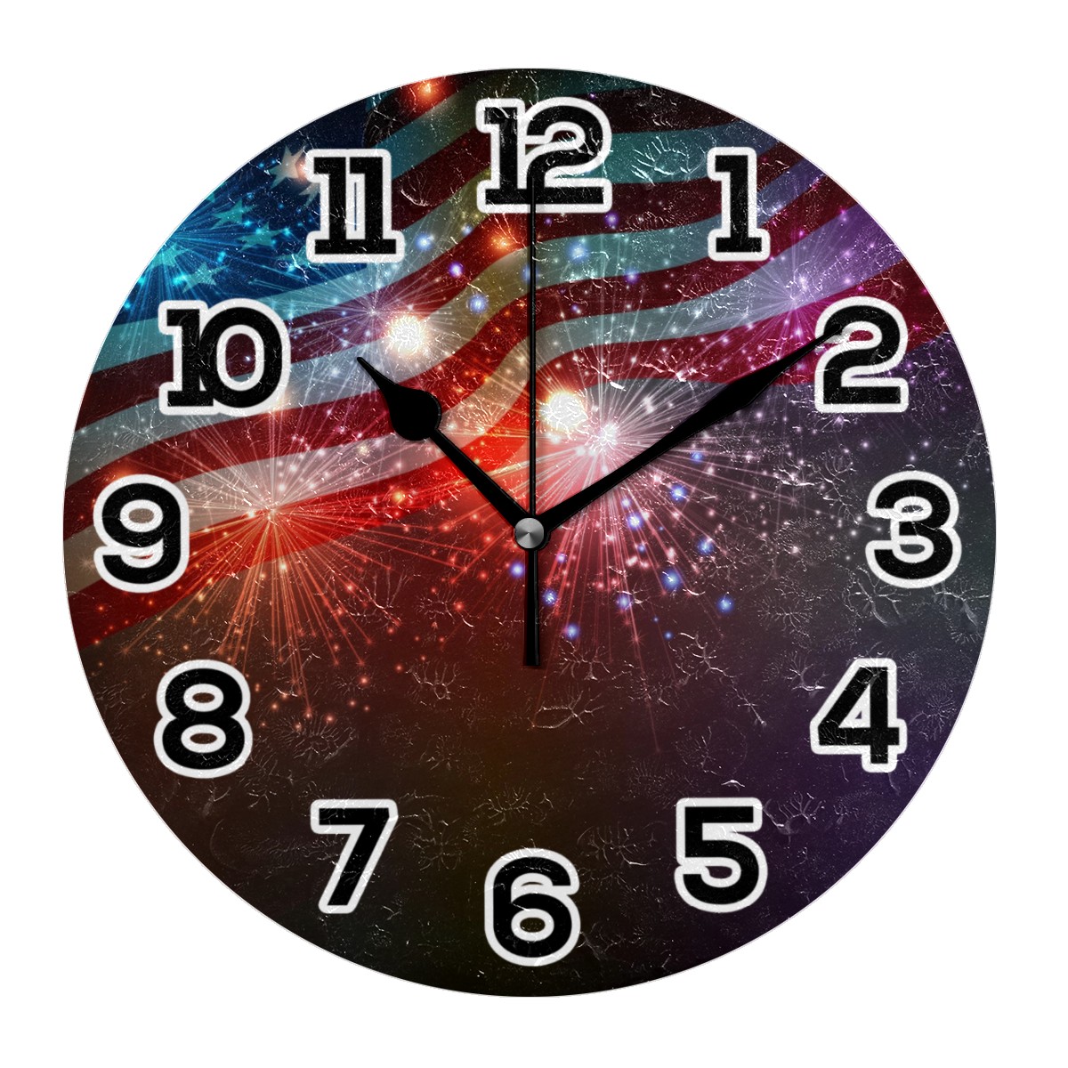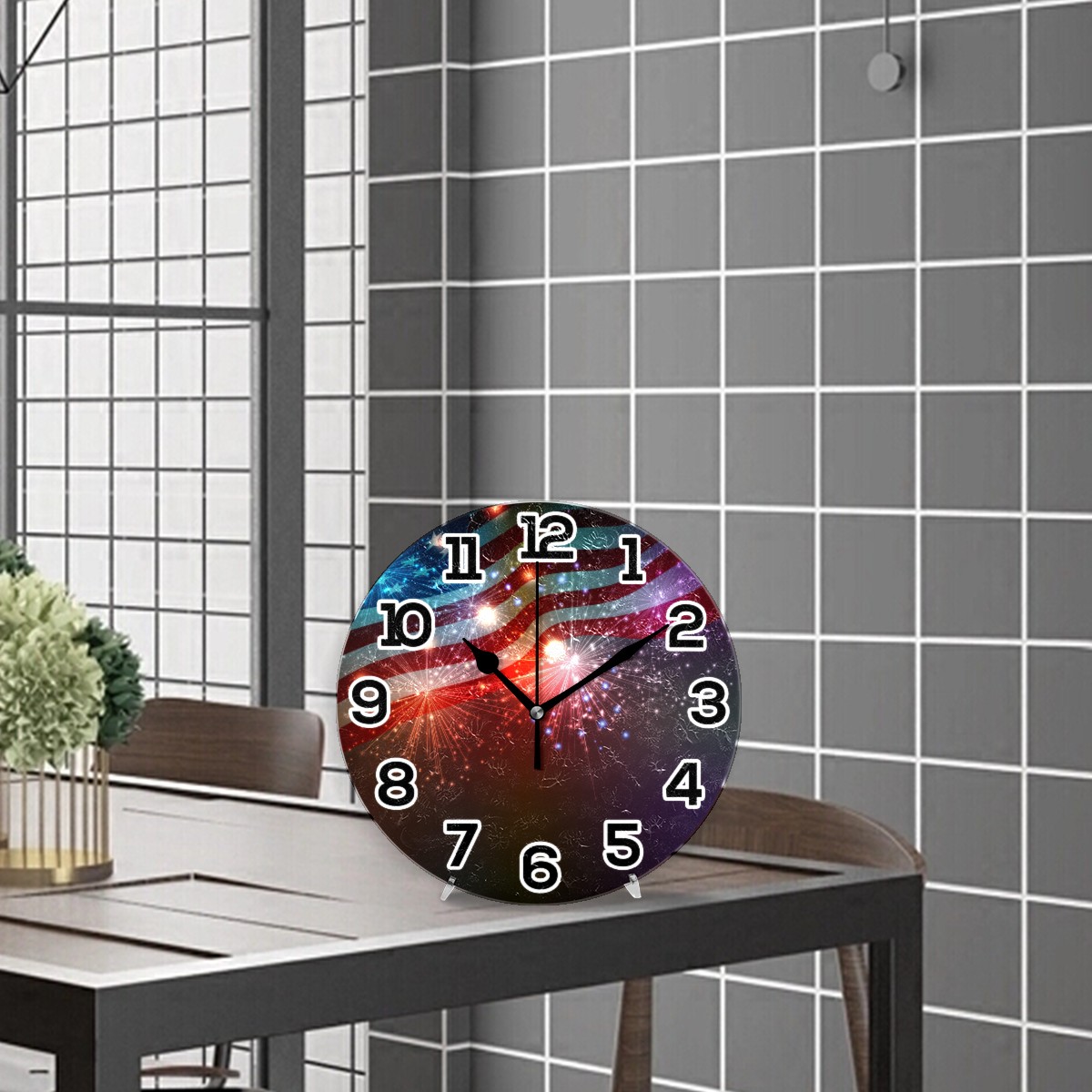 American Flag Firework 4Th Of July Clock Wall Decor Acrylic Decorative Round Battery Operated Wall Clocks for Home Bedroom Living Room Decor Silent Non Ticking