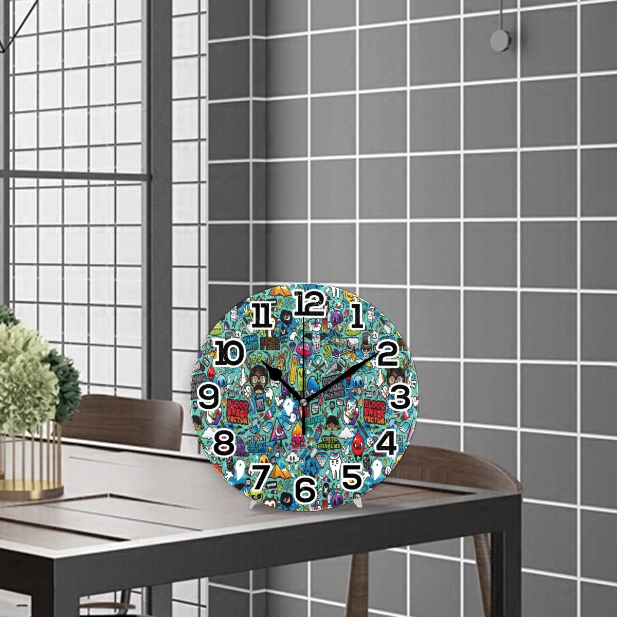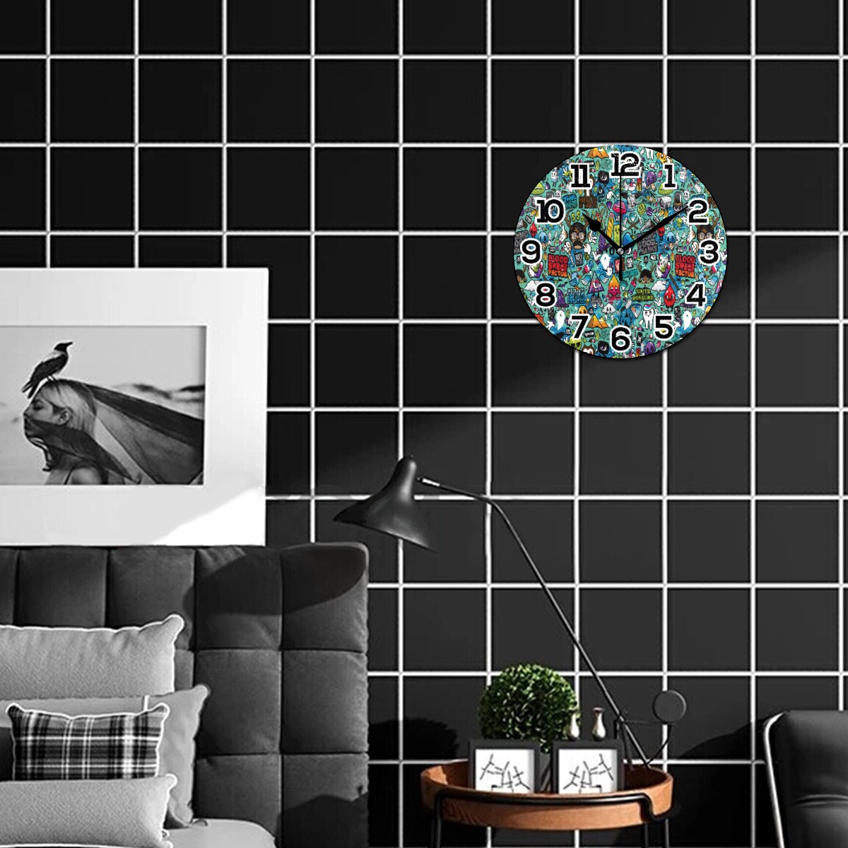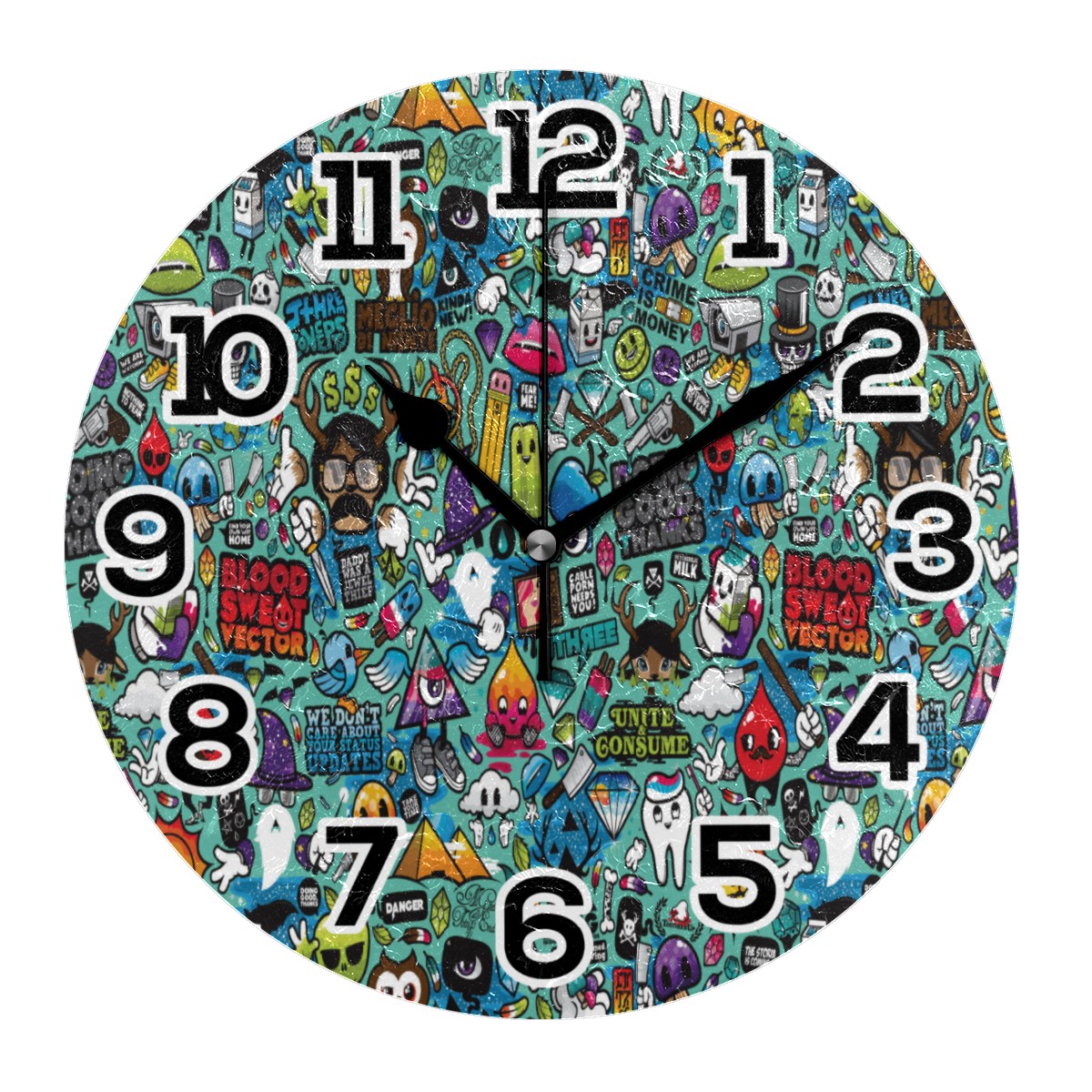 Halloween Funny Doodle Painting Clock Wall Decor Acrylic Decorative Round Battery Operated Wall Clocks for Home Bedroom Living Room Decor Silent Non Ticking