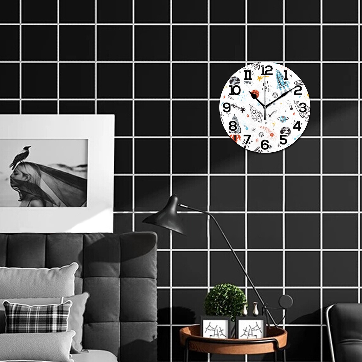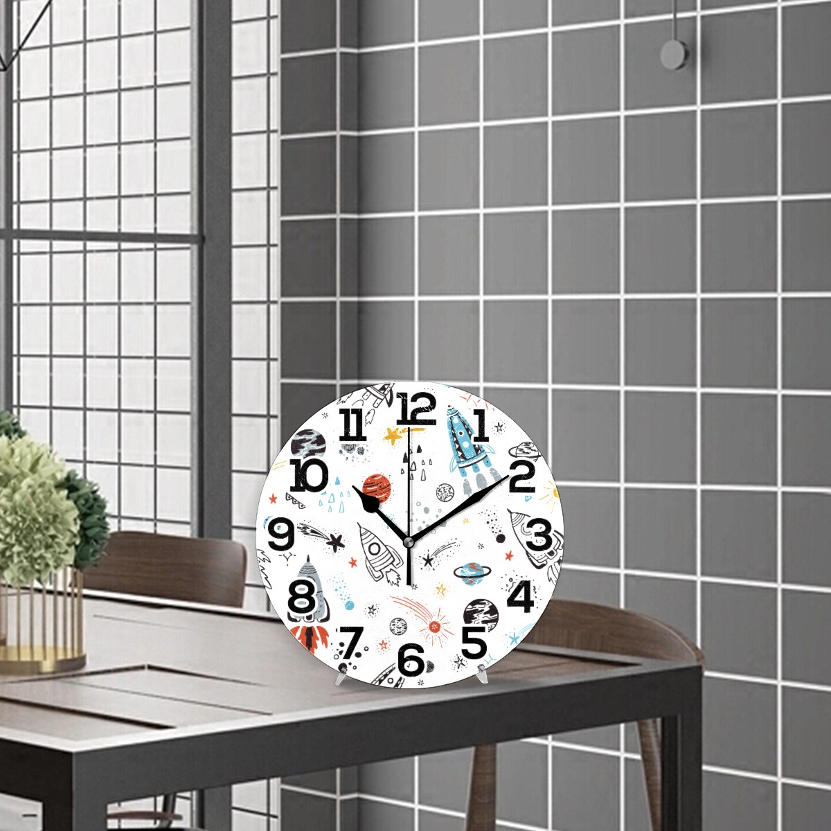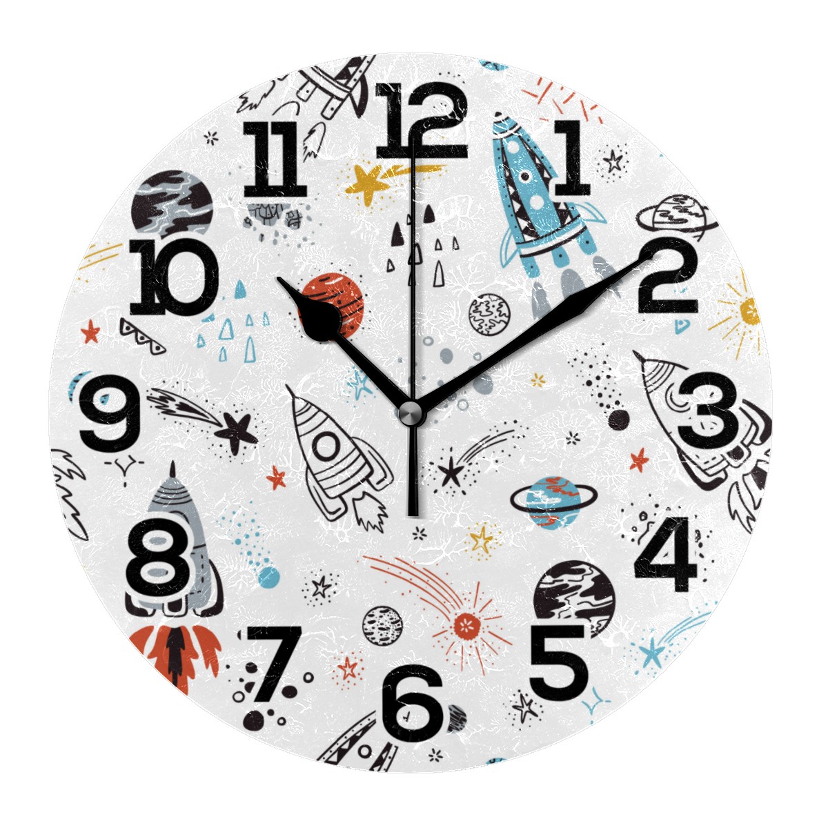 Outer Spaceship Rockets Planet Galaxy Clock Wall Decor Acrylic Decorative Round Battery Operated Wall Clocks for Home Bedroom Living Room Decor Silent Non Ticking