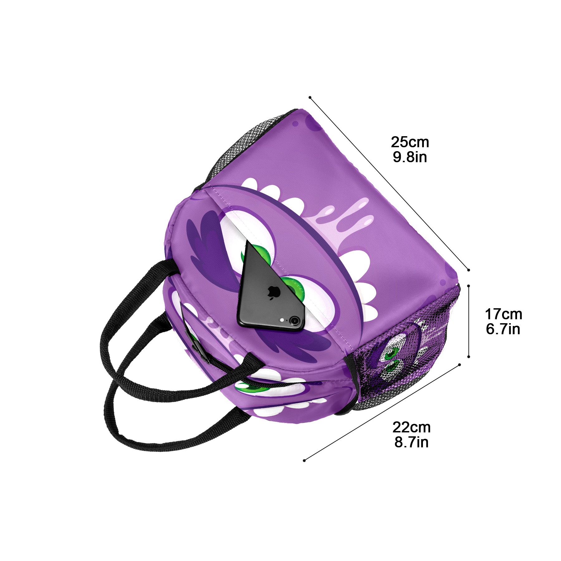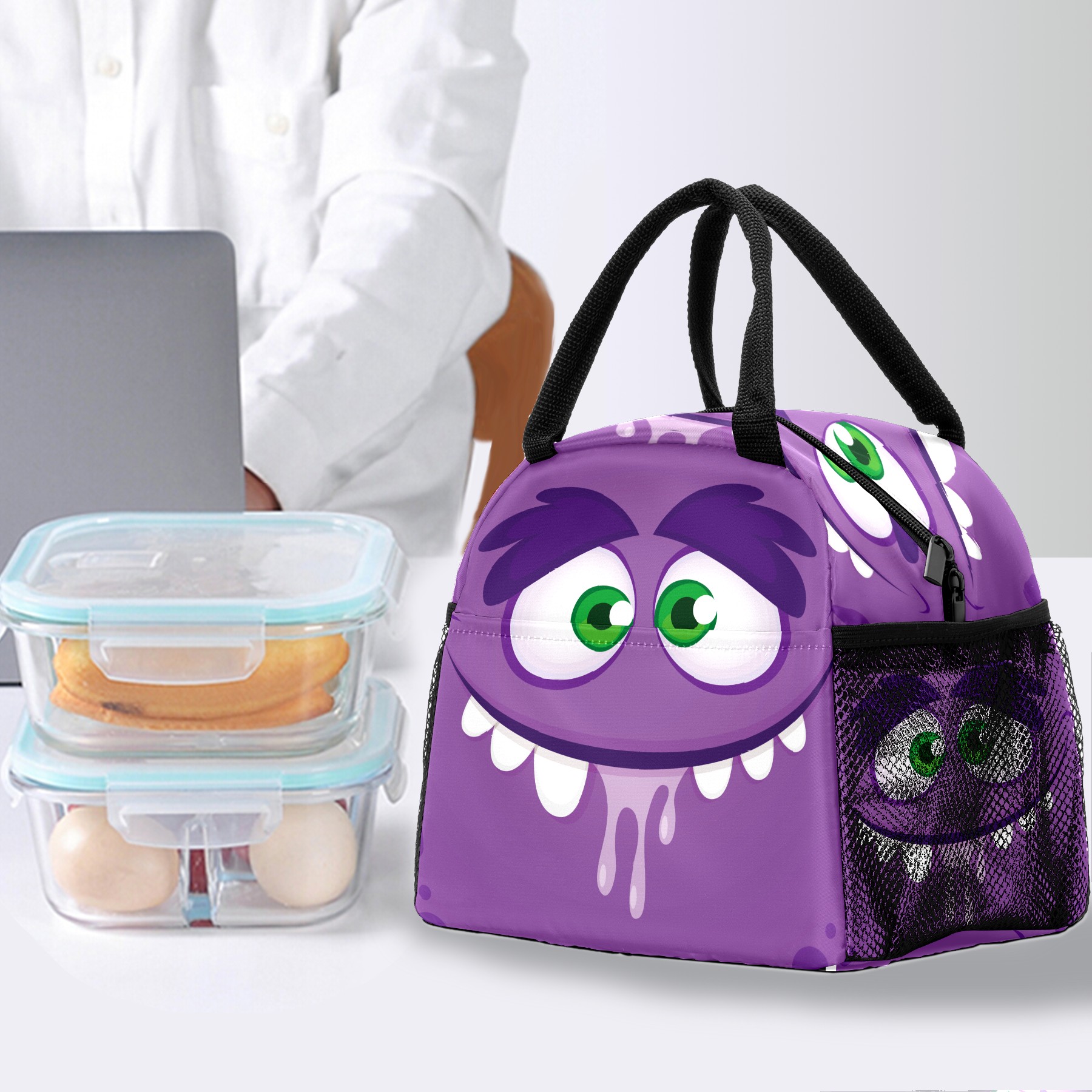 Lunch Bag for Women Men, Funny Cartoom Monster Purple Insulated Reusable Lunch Box Thermal Cooler Tote Bag for Work Picnic Hiking Travel Beach
