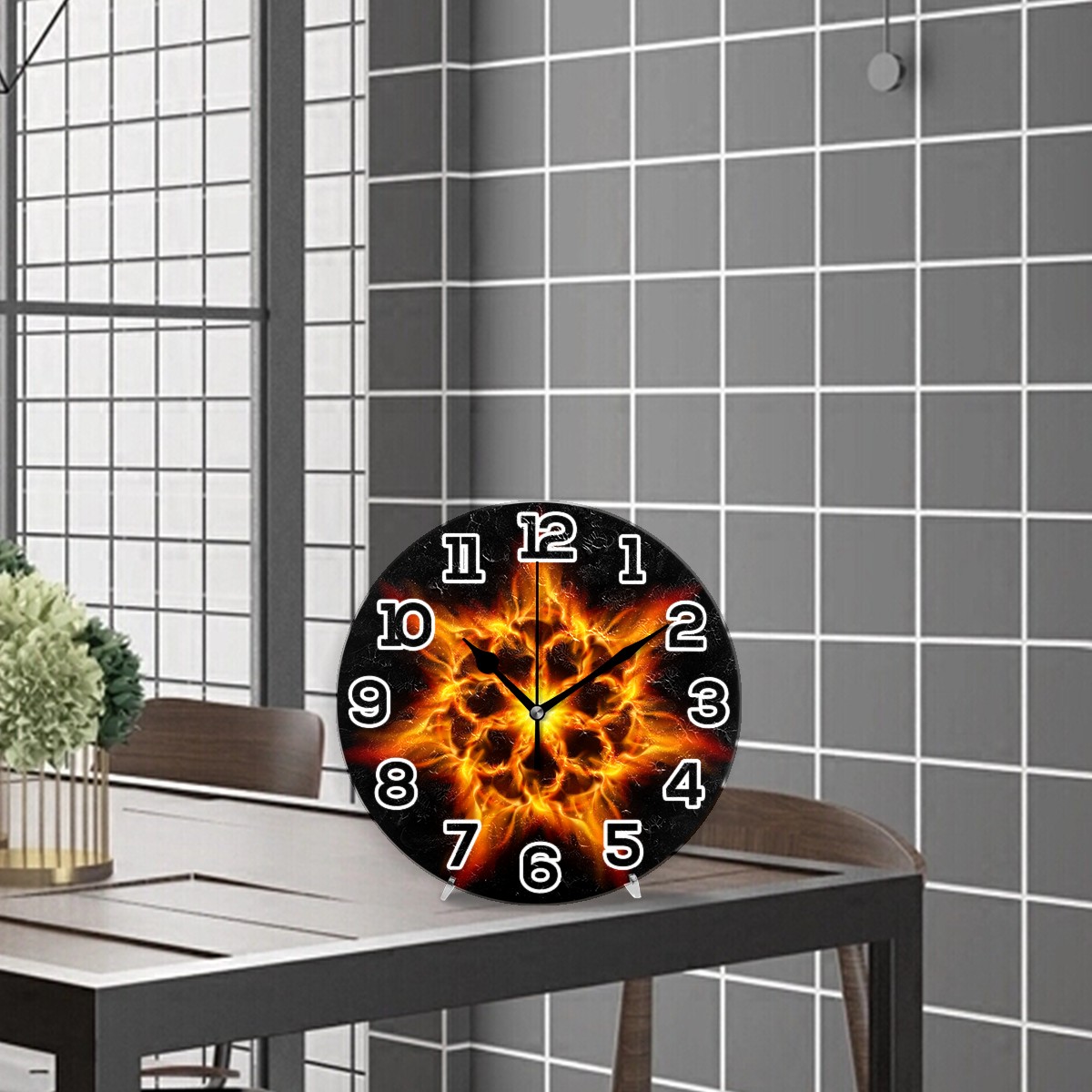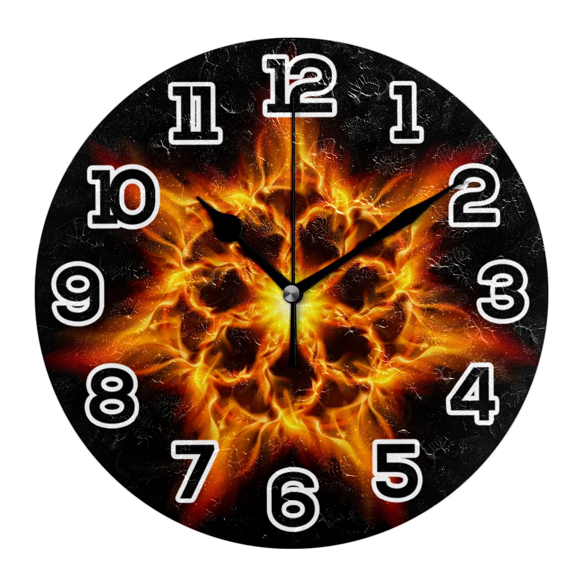 The Burning Hexagon Stars Clock Wall Decor Acrylic Decorative Round Battery Operated Wall Clocks for Home Bedroom Living Room Decor Silent Non Ticking