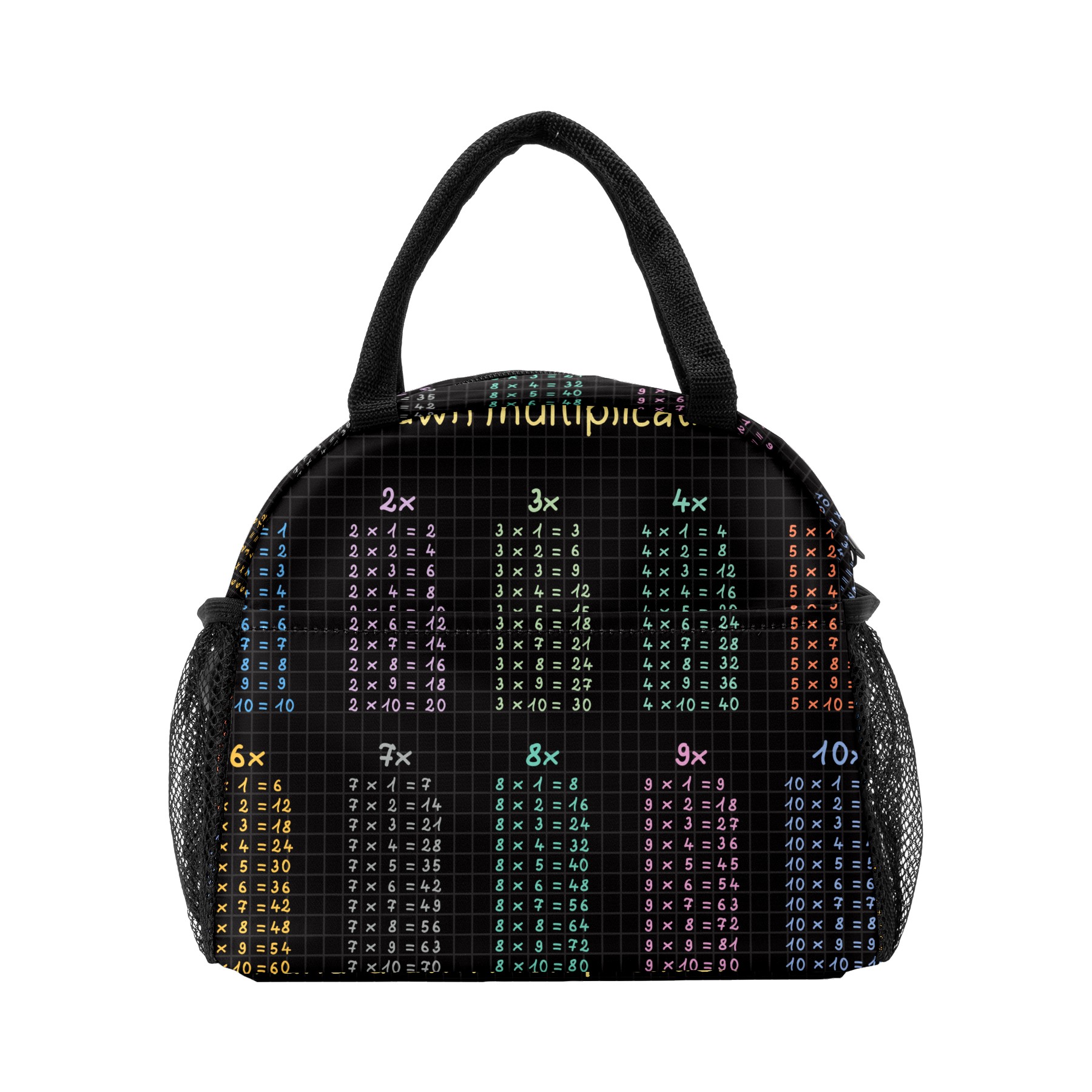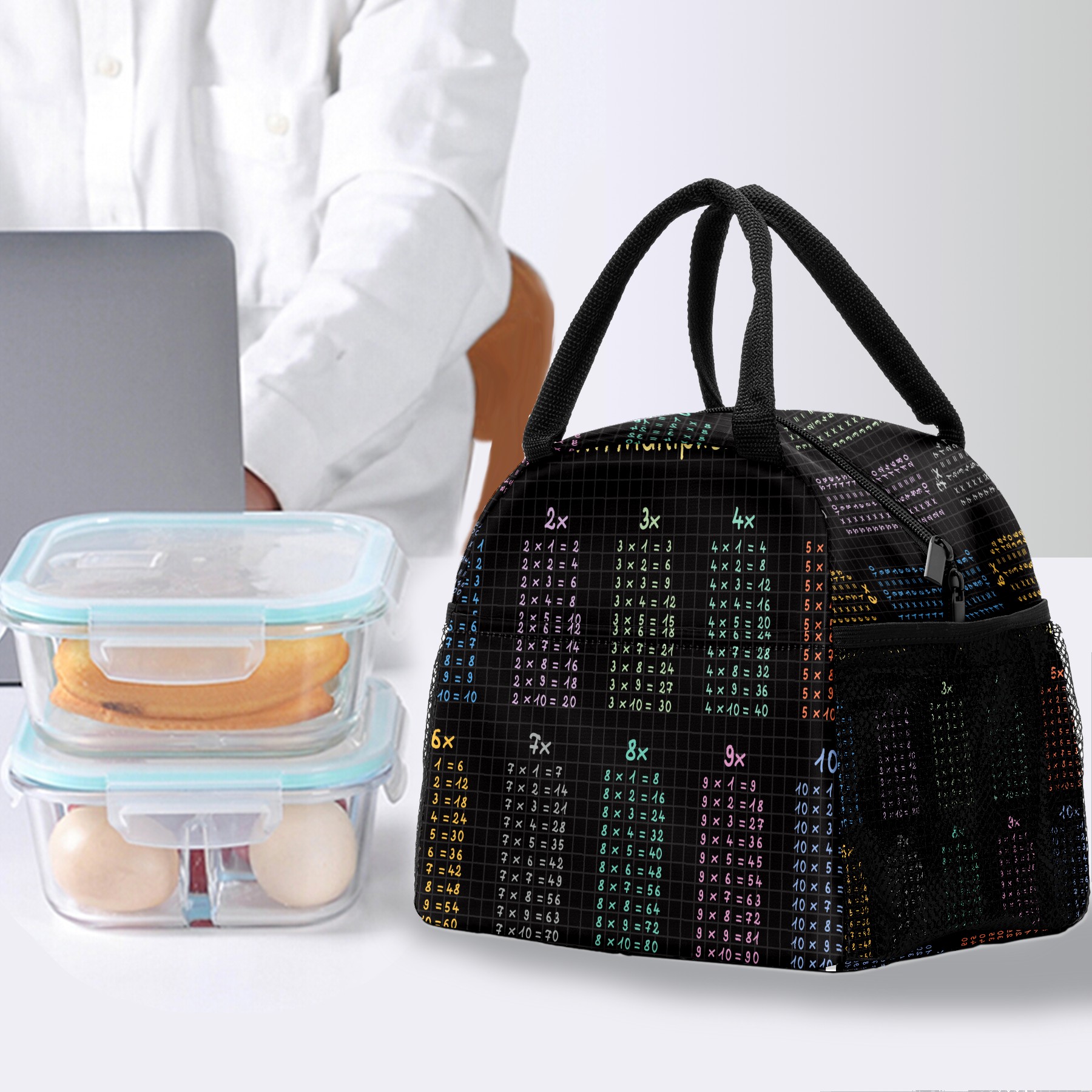 Lunch Bag for Women Men, Educational Hand Drawn Multiplication Table Insulated Reusable Lunch Box Thermal Cooler Tote Bag for Work Picnic Hiking Travel Beach