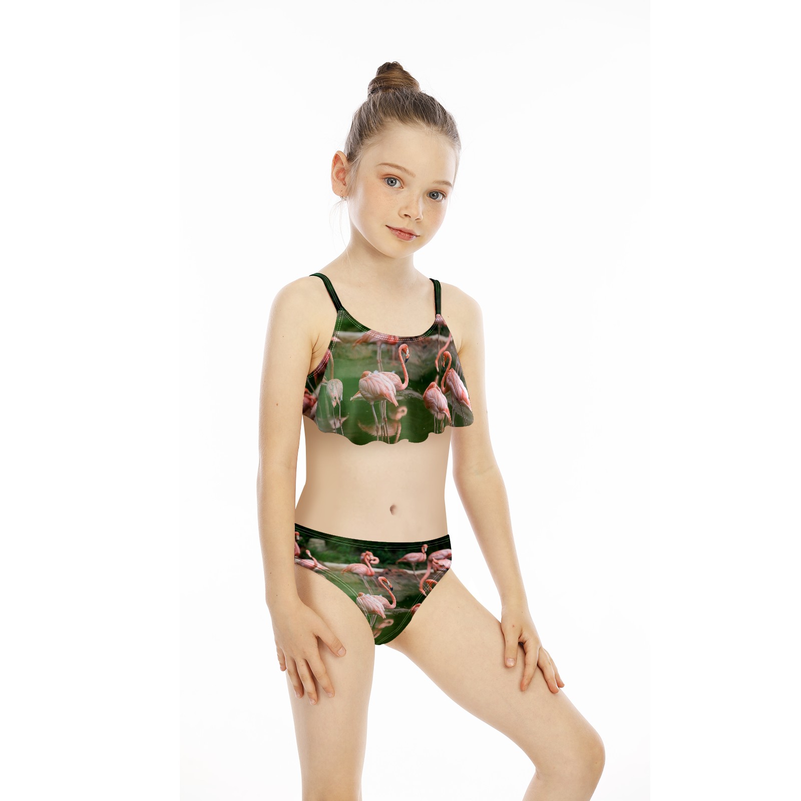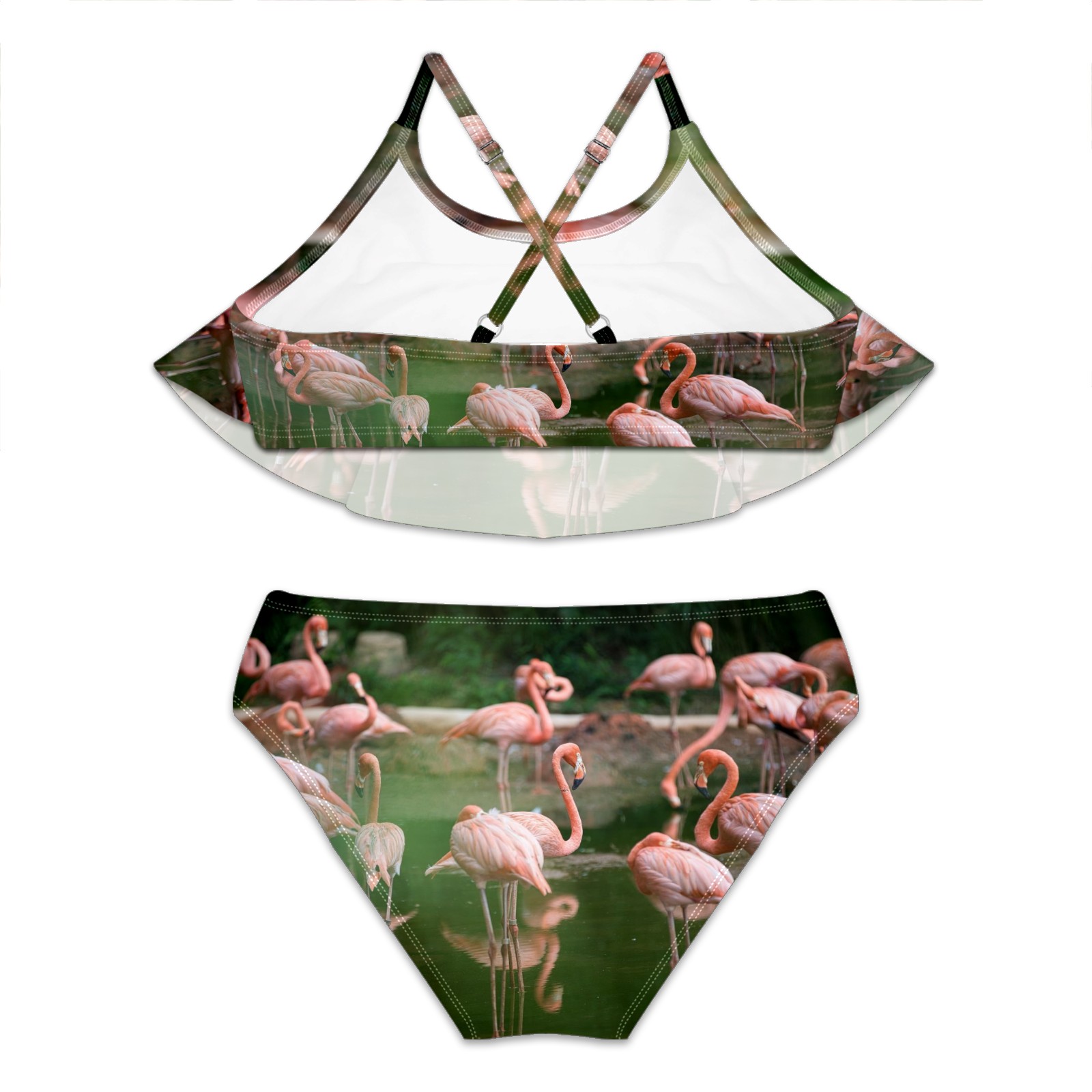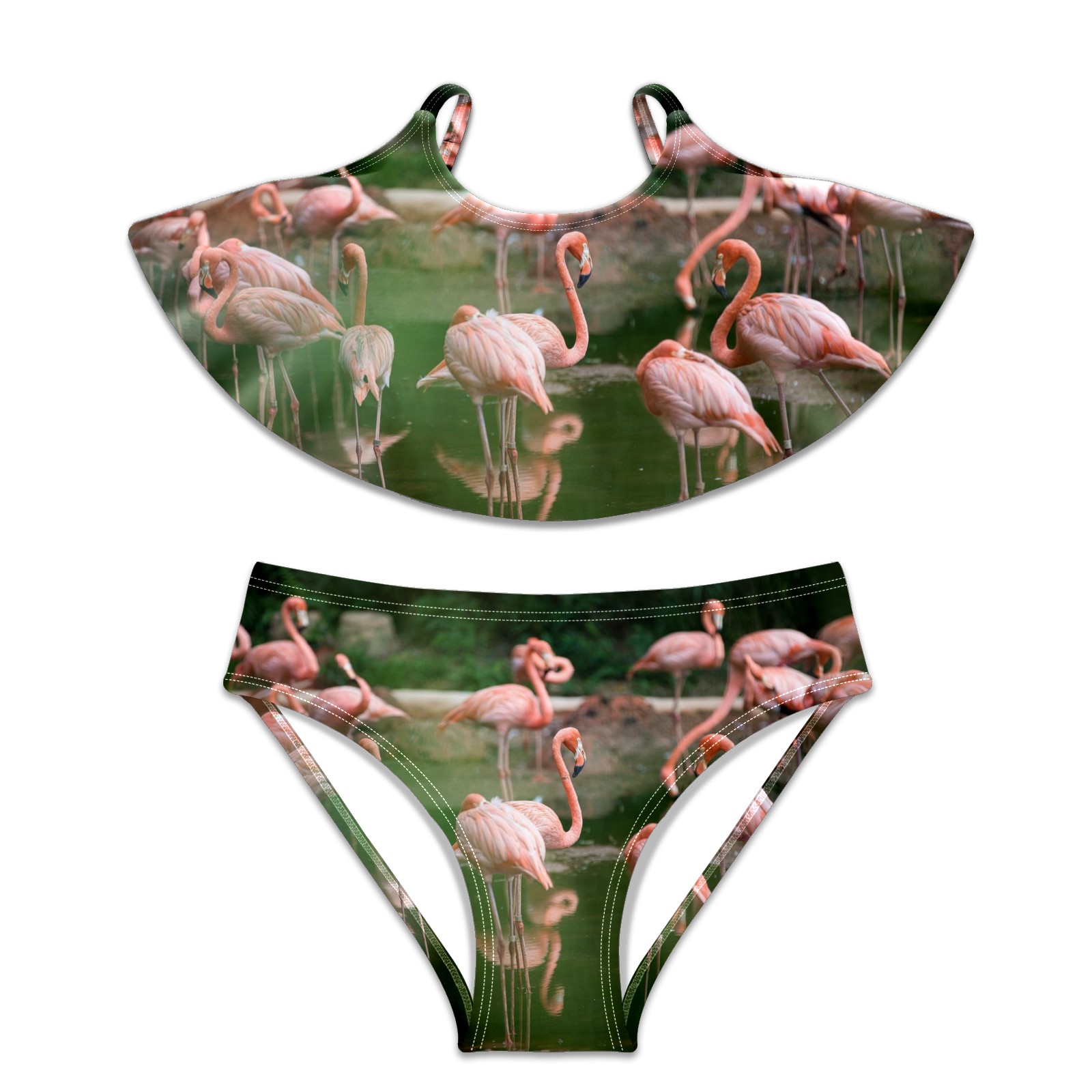 Swimsuits for Girls Two Pieces Bathing Suit Quick Dry Swimwear Tropical Flamingos Bird S