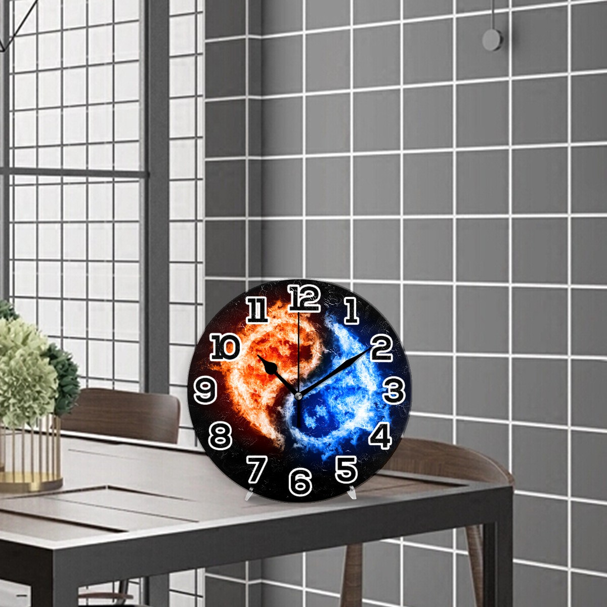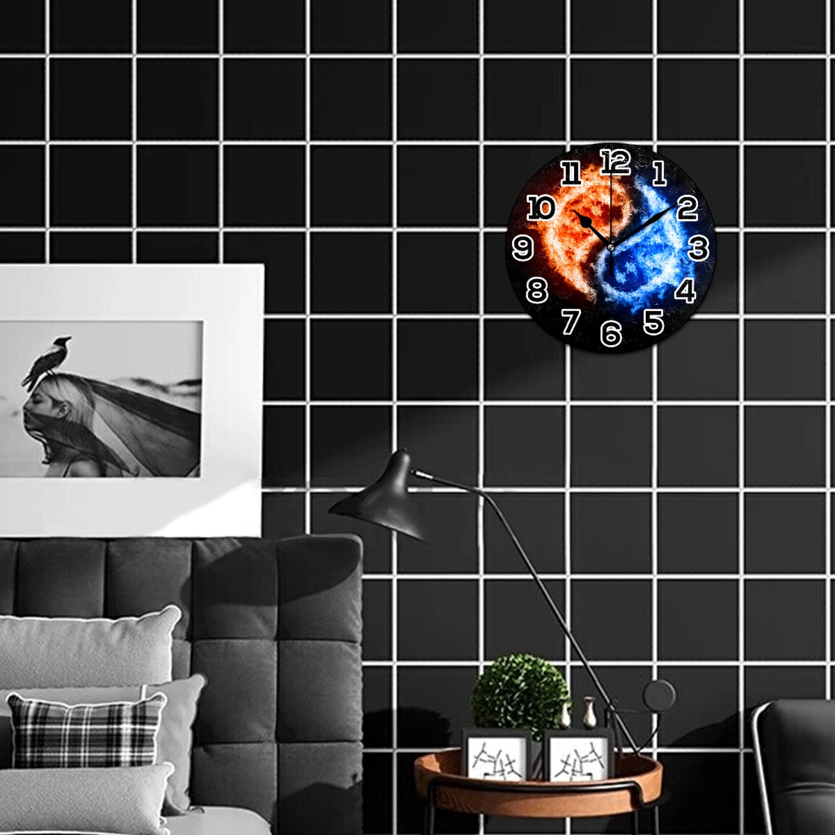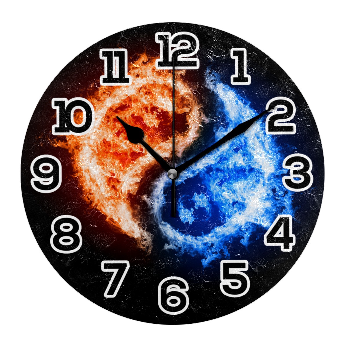 Retro Fire Water Chinese Yin Yang Clock Wall Decor Acrylic Decorative Round Battery Operated Wall Clocks for Home Bedroom Living Room Decor Silent Non Ticking