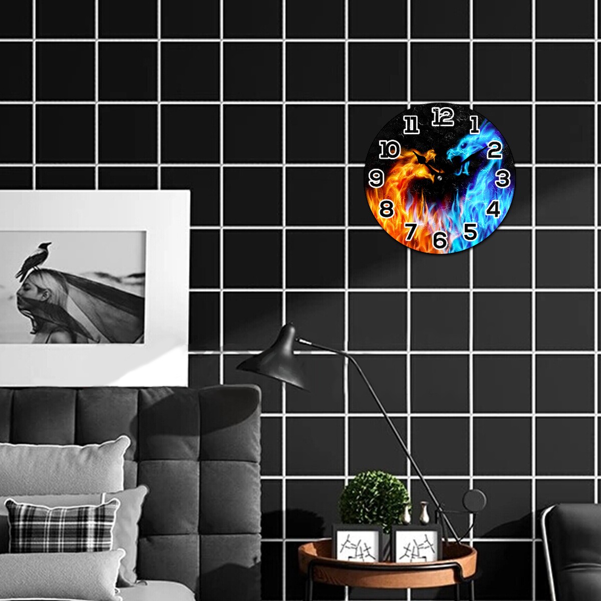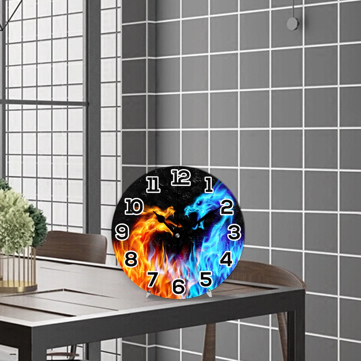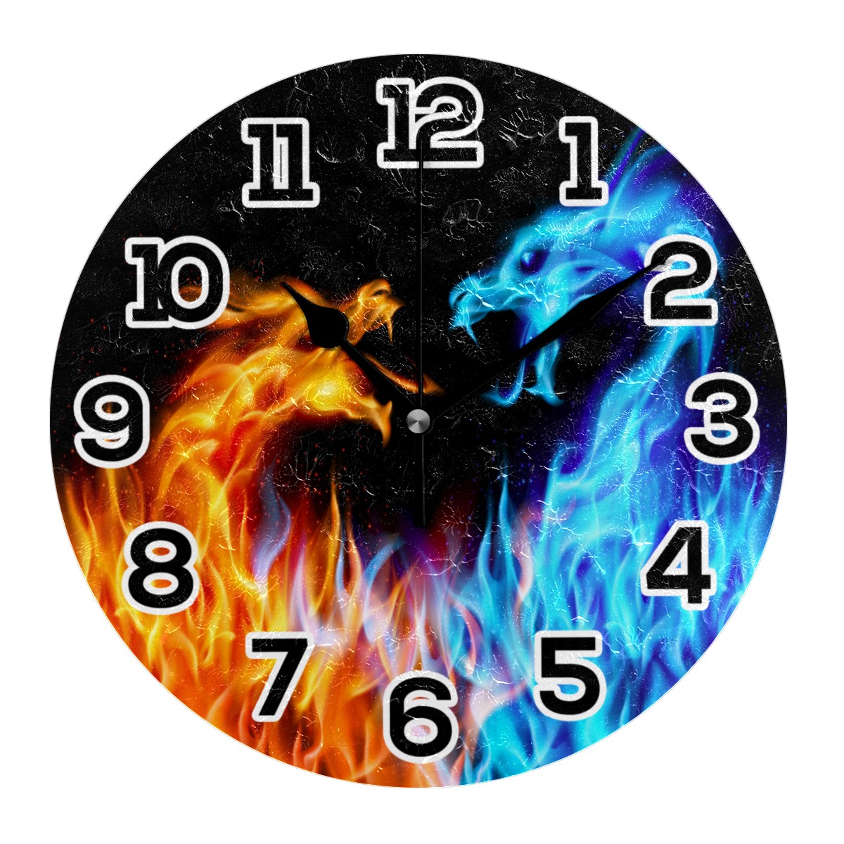 Red Blue Fire Dragon Clock Wall Decor Acrylic Decorative Round Battery Operated Wall Clocks for Home Bedroom Living Room Decor Silent Non Ticking